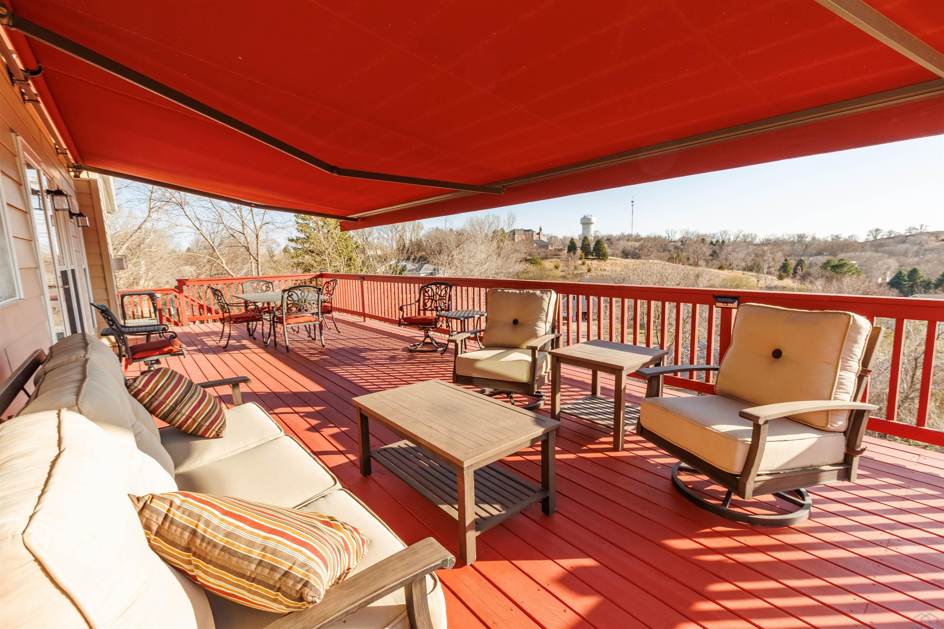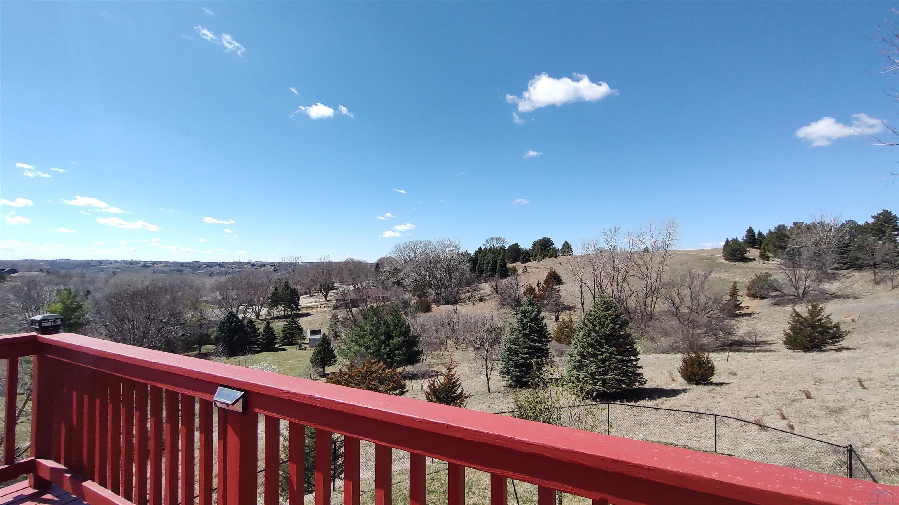 Discover exceptional living in this stunning one-and-a-half story home offering over 4,600 square feet of beautifully finished living space. Perfectly positioned to capture breathtaking views of the western Siouxland hills, this property is surrounded by mature trees and abundant wildlife, creating a peaceful, private retreat. Step outside onto the expansive deck, complete with an electric awning that effortlessly extends your living space—ideal for relaxing or entertaining while enjoying the picturesque landscape. Inside, you’ll find a thoughtfully designed floor plan featuring 4 bedrooms and 4 bathrooms, enhanced by gorgeous décor, warm color palettes, and striking architectural ceilings throughout. The main living area showcases rich hardwood floors, a cozy gas fireplace, and an inviting atmosphere that feels like home the moment you walk in. The kitchen is equipped with new appliances and flows seamlessly into the dining area, highlighted by a beautiful chandelier—perfect for gatherings both large and small. A stunning front entryway welcomes guests with style and elegance. The main-floor primary suite offers a luxurious retreat with a spacious bathroom and a large walk-in closet. Upstairs continues the home’s charm, while the fully finished walkout lower level provides incredible versatility—featuring a second living room, den, bedroom, bathroom, sitting area, and even a brand-new kitchen, making it ideal for multi-generational living or guest quarters. Additional features include a large garage, new roof, durable poured foundation, radon mitigation system, and low-maintenance vinyl plank flooring in the lower level. Offered at 579,000, this exceptional property combines space, style, and scenery—truly a place you’ll be proud to call home.