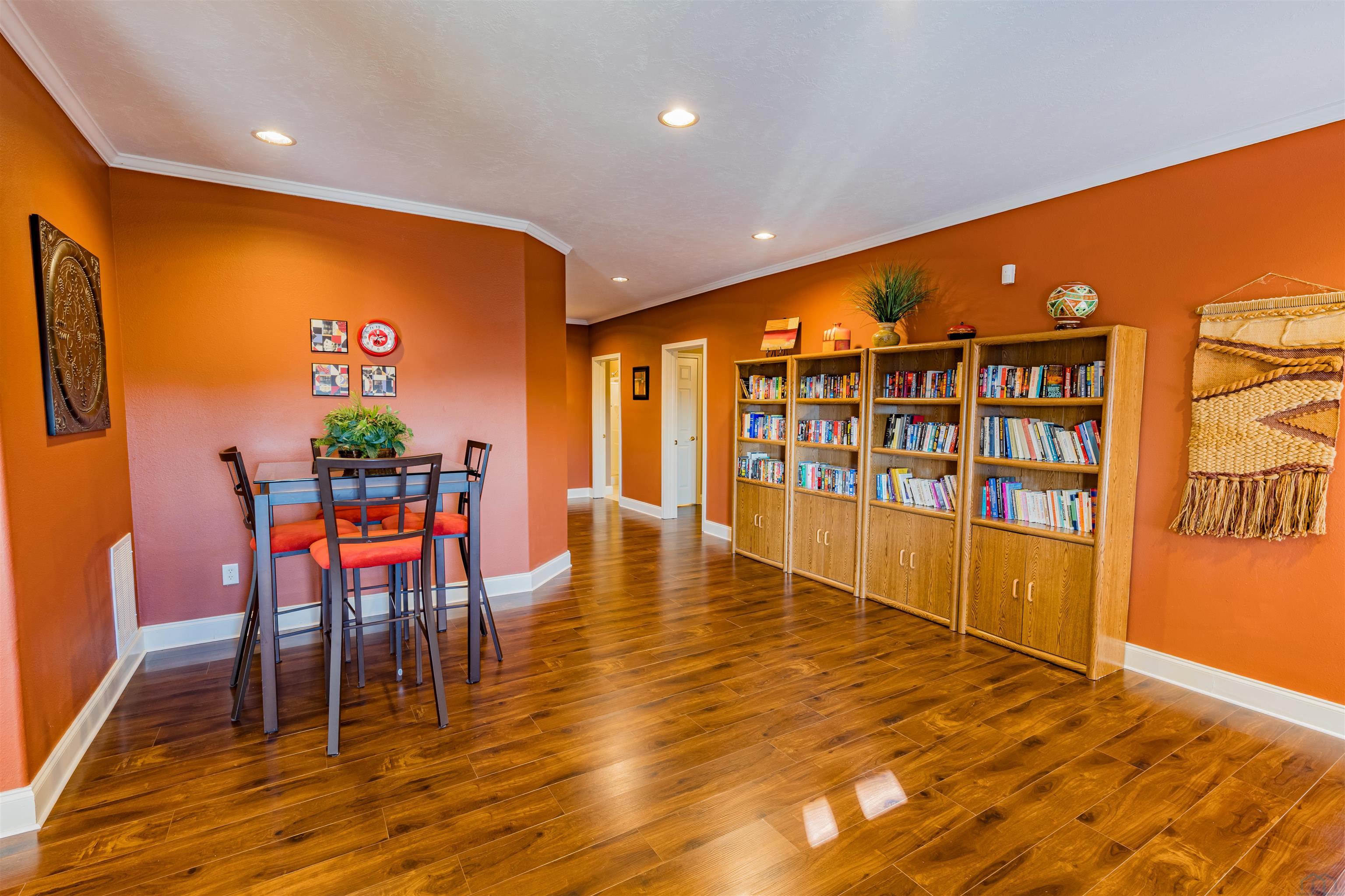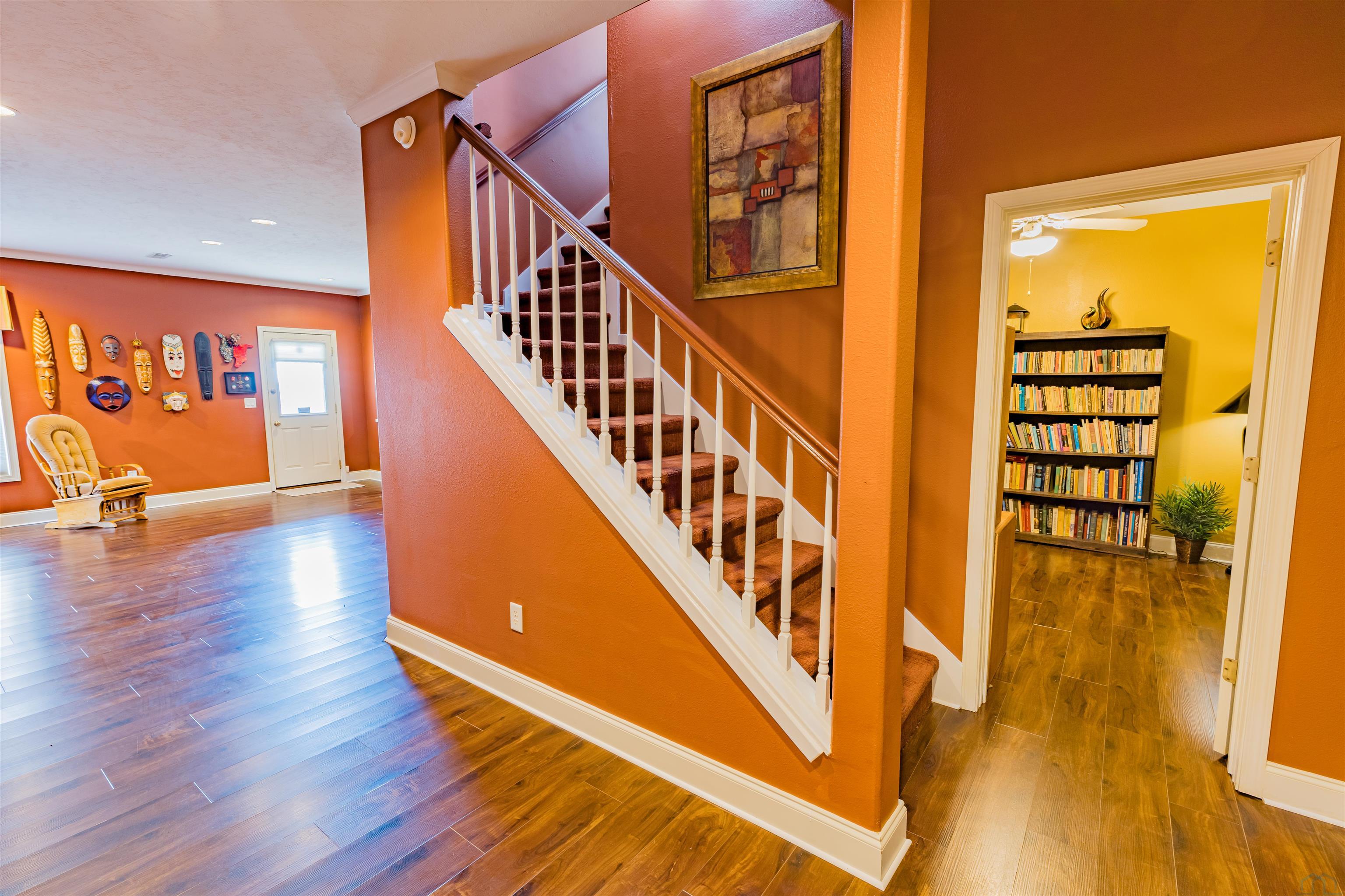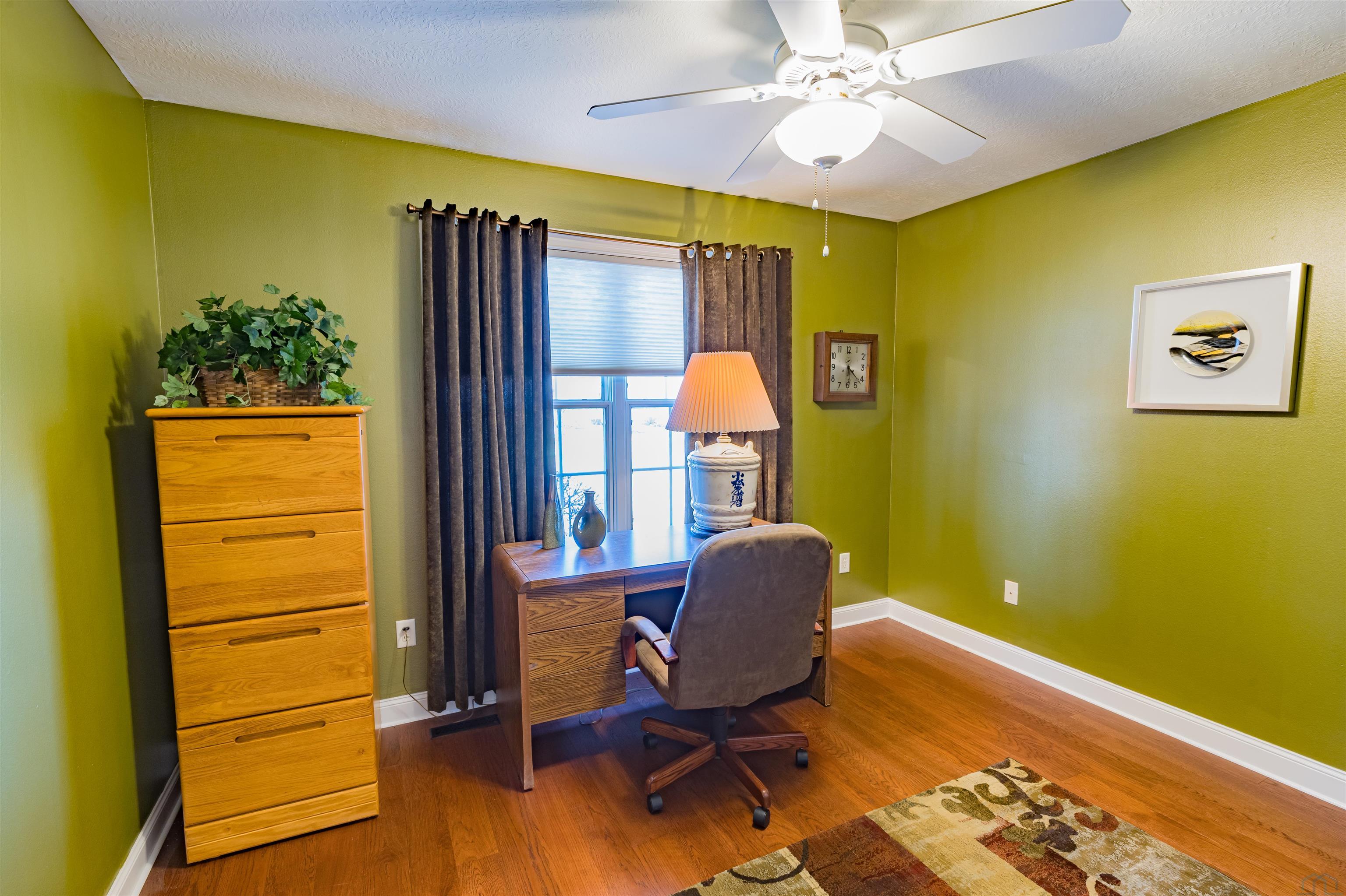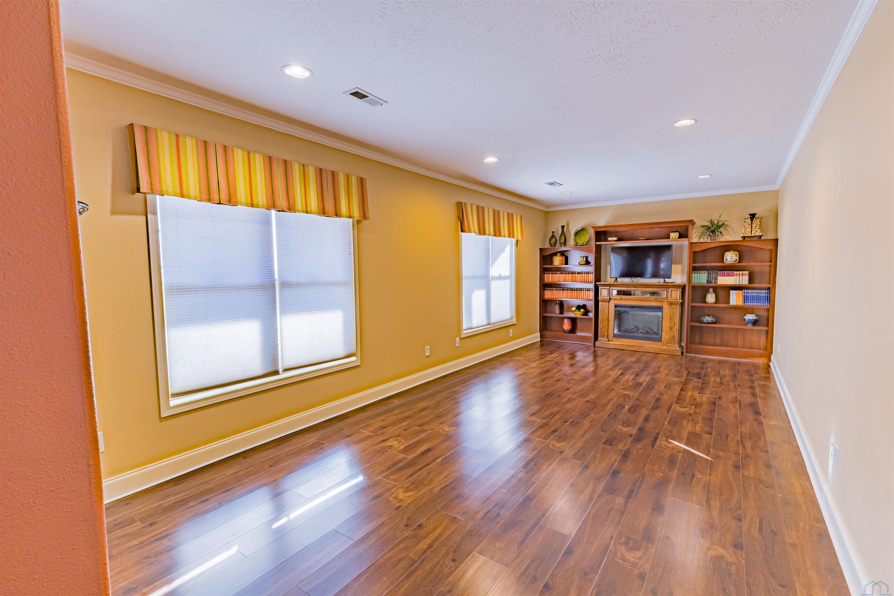 VERY MOTIVATED SELLERSESTATE SALE Private home on 4.27 acres. 4 bedrooms, 2.5 baths. Large family room with hardwood floors, lots of windows overlooking level land. Formal living or dining room. 2 bonus room, storm shelter area. Den with gal log fireplace and cabinets and sink. Lower area has its own entrance. Laundry room with lots of counter space and cabinets.