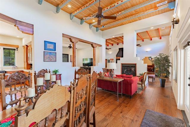Welcome to a private hillside estate in Jamul set on approximately 5 acres, featuring a single-story custom Spanish-style home with 4 bedrooms, 4 bathrooms, and approx. 3,263 sq. ft. Originally built in 1992 and renovated in 2017, the home offers quality craftsmanship, timeless character, and unique artistic details throughout. High ceilings, abundant natural light, and a functional open layout create an inviting atmosphere ideal for both everyday living and entertaining. The well-appointed kitchen includes high-end appliances, while spacious living areas and multiple dining spaces enhance comfort and versatility. The primary suite features a two-way fireplace, adding to the home's relaxing ambiance. The expansive property offers privacy, scenic surroundings, and room for outdoor enjoyment, with patios and open space ideal for entertaining or quiet retreat. A detached garage/art studio with a bathroom provides additional flexibility. Solar, well water, and septic support a more self-sufficient lifestyle. Conveniently located near Rancho San Diego shopping, dining, schools, freeway access, and approximately 23 miles from downtown San Diego. A rare opportunity to enjoy private estate-style living with accessibility to city amenities.