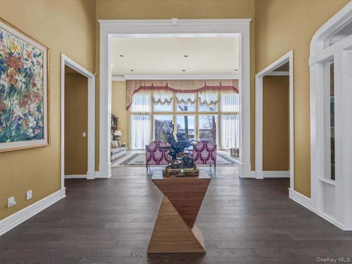 Welcome to Swans Cove, a masterpiece of waterfront luxury perched along Lloyd Harbors Gold Coast in Lloyd Neck. This estate spans a magnificent 10,500 square feet across three levels of breathtaking living space, meticulously designed to capture panoramic views of the Long Island Sound and Oyster Bay from every angle.