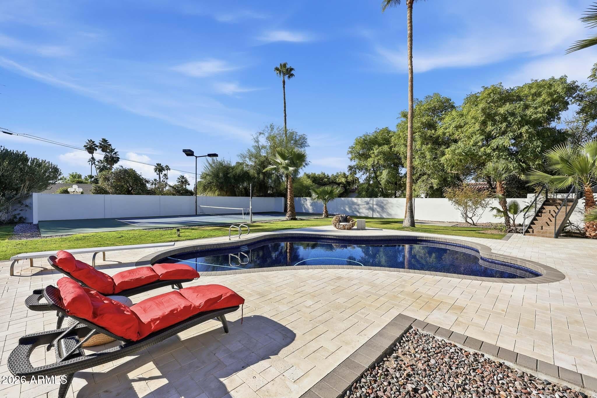 NOW THE BEST PRICED ESTATE IN ARCADIA under 5M -7,418 sqft on 0.7 acre lot with unobstructed Camelback Mountain Views, Guest Wing, and Private Pickleball Court. Set on an expansive Arcadia lot, this contemporary estate delivers exceptional scale, privacy, and true separation. Open, light-filled living spaces center around a chefs kitchen with Wolf and Sub-Zero appliances, dual dishwashers, and an oversized marble island built for entertaining. Seamless indoor-outdoor flow connects the home to resort-style grounds featuring a full pickleball court, expansive pool, and natural grass lawn. A fully independent guest residence complete with its own kitchen, living, and dining areas offers rare flexibility for multigenerational living, extended stays, executive workspace, or live-in support Recently refreshed and pre-inspected, including new AC systems, full interior repaint, refinished hardwood floors, new shutters, epoxy garage floor, and inspection items addressed. This home was voted BEST HOME ON TOUR and you will see why when you come to visit! Homes with this combination of size, land, and amenities are rare at this level. Seller plans to review offers on Monday April 20 but reserves the right to accept a strong offer prior.