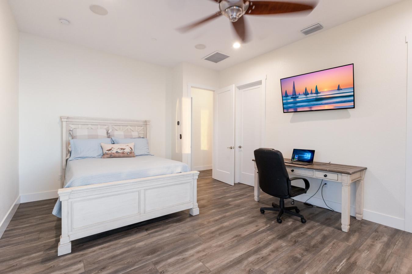 Newer construction in Plantation Acres Estates, an exclusive gated community of just 5 custom homes on builders acres, designed by renowned architect Randall Stofft. This modern estate features 5 bedrooms plus an oversized club room and private office, 5 full and 2 half baths, and 2 wall-mounted fireplaces in the formal living and family rooms. Highlights include a 3-car garage, 3 A/C zones, impact windows, Silestone countertops, and large-format porcelain floors. The luxurious primary suite offers a private terrace and spacious dual closets, with a spa-like bath. Gourmet kitchen with top-tier appliances, gas cooktop, and sleek cabinetry. Resort-style backyard with infinity pool, spa, summer kitchen, covered patio, cabana bath, and lush landscaping.