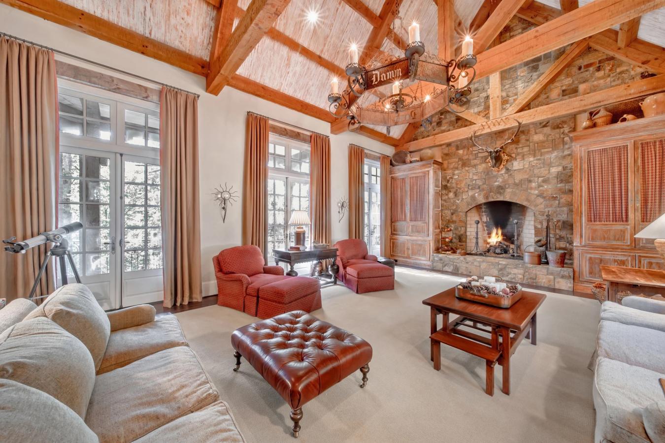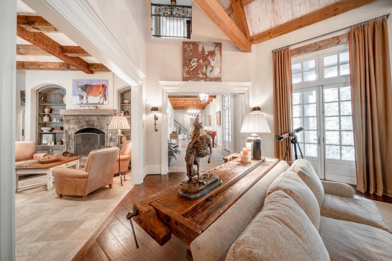 Welcome to Corbett Manor, a breathtaking 360-acre estate where luxury meets nature in perfect balance. Just five minutes from downtown Clarkesville, this stunning property offers a sophisticated lifestyle amid rolling fields, lush hardwood forests, and meticulously maintained grounds. The grand exterior showcases exceptional craftsmanship, featuring a timeless blend of stone, brick, and hard-coat stucco, crowned with a slate roof and copper gutters. Enter through the stately mahogany doors to a foyer graced by Italian limestone floors and grand 13 ceiling heights, setting an elegant tone. The limestone tile and rich heart pine floors carried throughout the main floor provide warmth & refinement, while floor-to-ceiling custom windows bathe each room in natural light. To further enhance the ambiance of this elegant estate, a Lutron lighting system is used for ease and convenience. At the heart of the home lies a chefs kitchen. Outfitted with commercial-grade appliances, including two Sub-Zero freezers and refrigerators, custom heart pine cabinetry, a DACOR dual-fuel range with double ovens, a stainless-steel hood vent, & a Gaggenau pizza oven. The granite & butcher block countertops, oversized island with prep sink, two dishwashers, & large farm-style sink give the kitchen both style & practicality. Enjoy the cozy sitting area fully equipped with a fireplace & wet bar, creating an inviting space for gatherings & after-dinner conversation. The stunning kitchen & dining area (for seating up to 10) overlooks the secret garden, a manicured courtyard with a fountain, potting room, and built-in grill. Setting the perfect scene for family get-togethers, parties, or events. The primary suite serves as a luxurious private retreat, with a comfy sitting area around the fireplace adorned with an imported French marble mantle, a spa-inspired bath with heated floors, a Jacuzzi tub, a steam shower, a custom dual-sided walk-in closet & your own private, screened-in area of the balcony. Just off the master suite youll find the homes library with wormy chestnut paneling and a cozy fireplace. On the second level youll find four spacious bedrooms, each featuring their own en-suite bath & walk-in closets. The middle bedroom includes a Juliet balcony that overlooks the magnificent Great Room, complete with custom wood beams & soaring 26-foot vaulted ceilings. This level also houses a craft room and a unique fourth bedroom with extra bonus space and its own access above the three-car garage, creating an ideal location for a live-in nanny or guests preferring added privacy. The terrace level is an entertainers dream, complete with a game room including billiards, a dry bar, a fireplace, a home theater, a fitness room, and a full bath. This level also features a massively oversized laundry room with dual washer and dryer hookups and plenty of room to install a second commercial-sized kitchen, along with a mudroom and direct access to a dog run-perfect for your canine companions. The outdoor spaces provide a seamless blend of relaxation and entertainment, from the screened porch with bluestone tile and expansive back balcony to the built-in cooking area near the courtyard, which offers the perfect setting for alfresco dining. Imported antique French iron railings lend old-world charm to the porches and stairway. Corbett Manor offers every modern convenience, including a large walk-in pantry, dual laundry rooms, antique light fixtures, custom cabinetry, an upgraded security system, a separate in-law suite, and ample storage. The beautiful gated entry provides additional privacy and functionality. Beyond the main residence, the estate includes two barns, a massive workshop with a grease pit, and a preCivil War era home thats ready to be restored as a second home or rental space. Corbett Manor is not just a home; its a sanctuary of elegance, comfort, and timeless beauty, inviting you to experience an unmatched level of luxury in a truly remarkable setting.