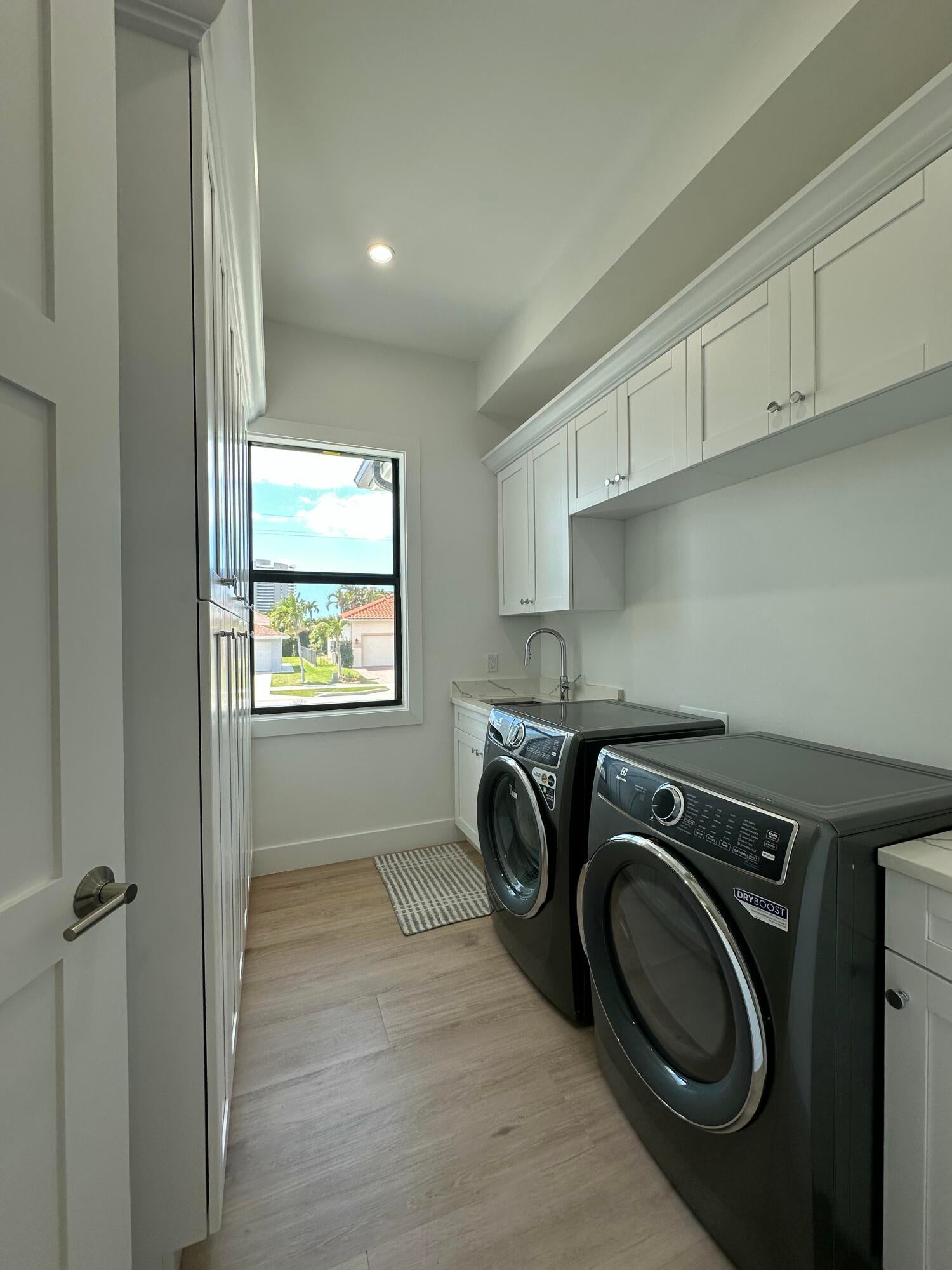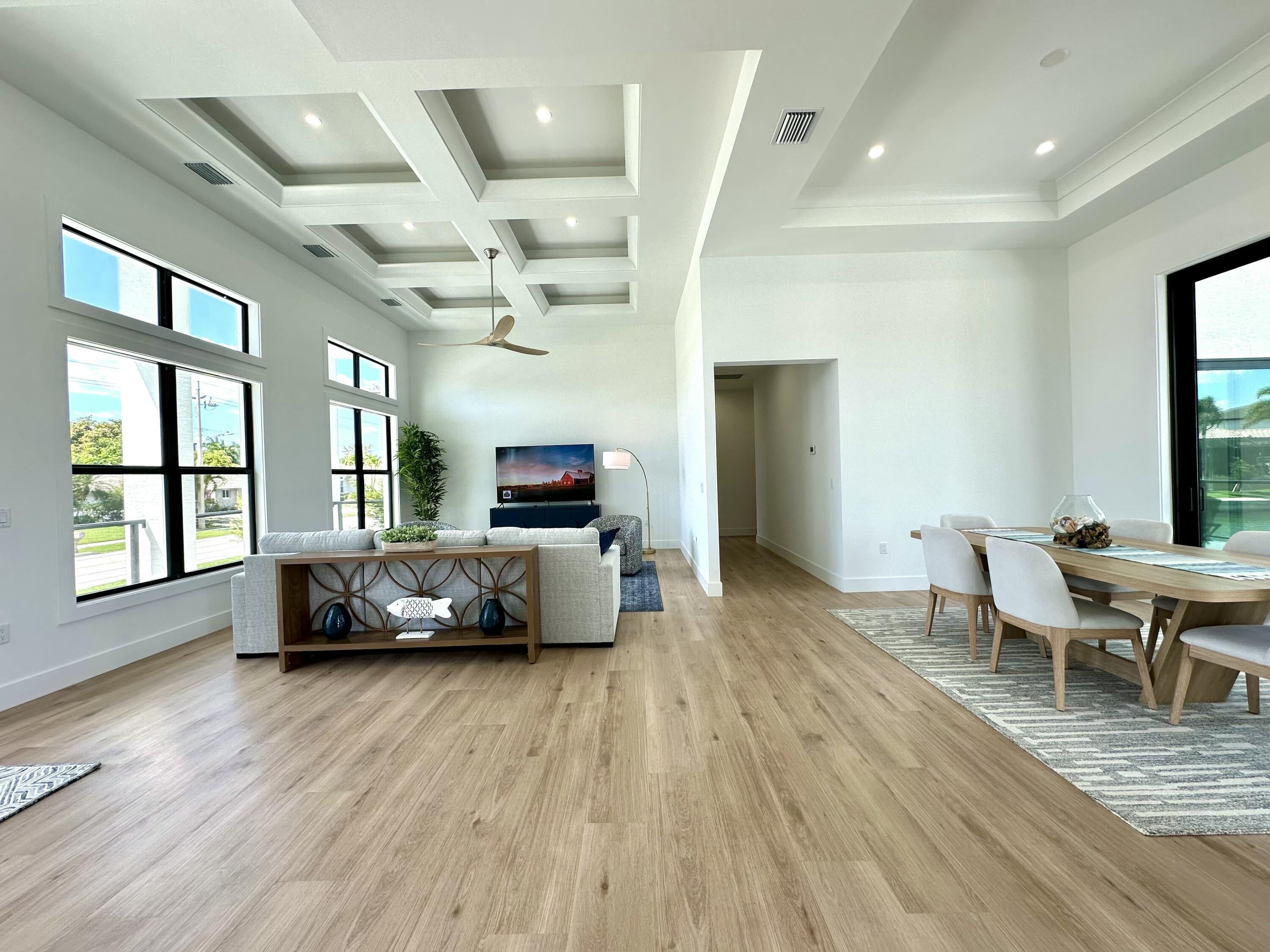 Welcome home to luxury! Step inside of 3,254 square feet of professional interior design and elegant features. Offering tile and luxury Vinyl plank flooring and Quartz countertops in the kitchen/bathrooms. Master bathroom includes a walk through shower with many custom and water features. Moen fixtures in every bathroom. Exquisite Bertazzoni Stainless steel appliances in the kitchen elevate your cooking experience. Finger print resistant oven makes cleaning a cake walk including a triple aluminum mesh hood. Convenient microwave drawer, French door refrigerator, walk in pantry and concealed hinge refrigerator under kitchen counter! Electrolux washer and dryer. Impact windows/doors. Pocket your living room sliders into a picture perfect view! Grill and chill with your outdoor kitchen on a spacious patio with a large pool/spa. Three car garage (2 Full garage spaces and 1 golf cart garage space). Two blocks to the beach
