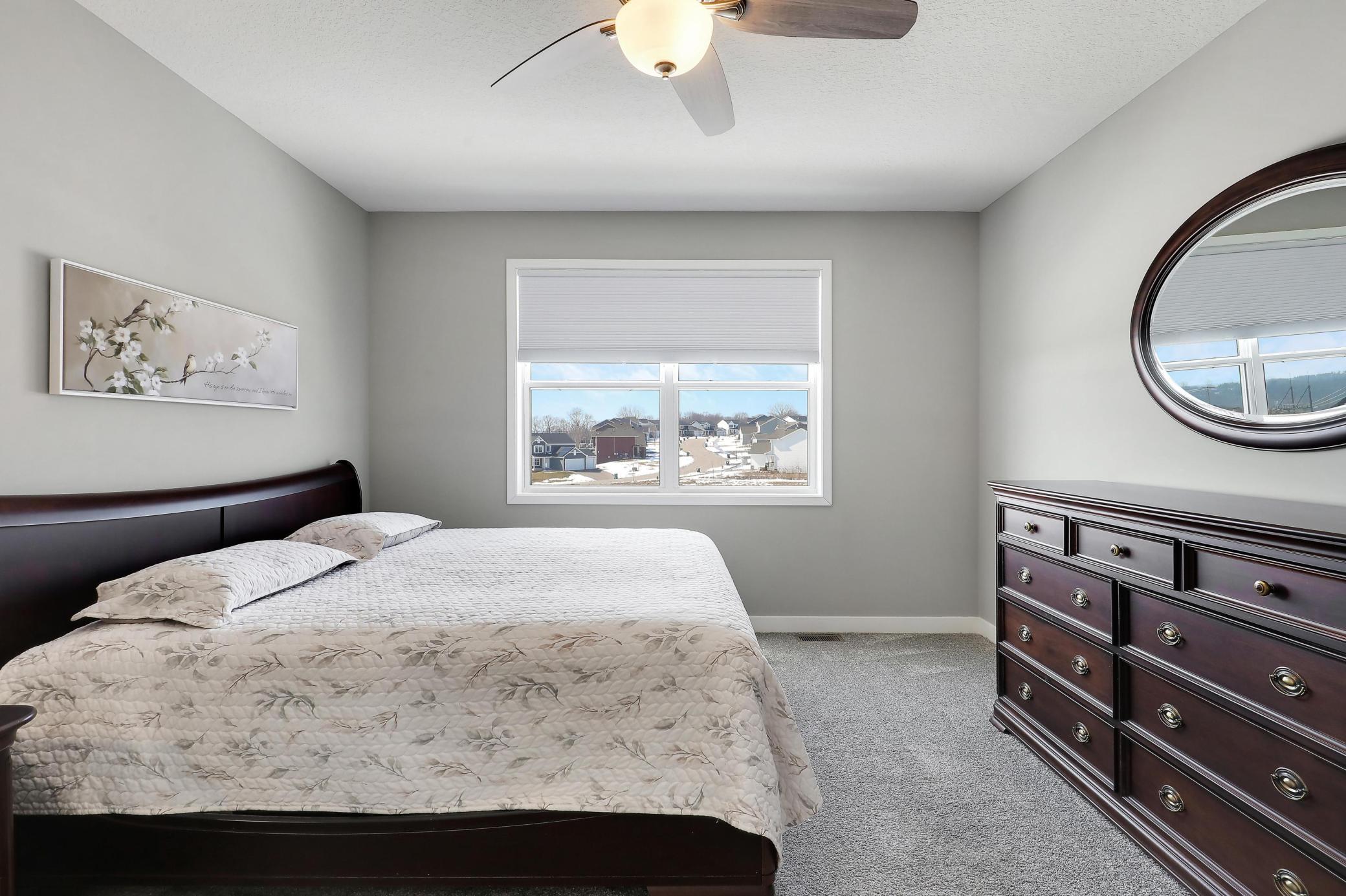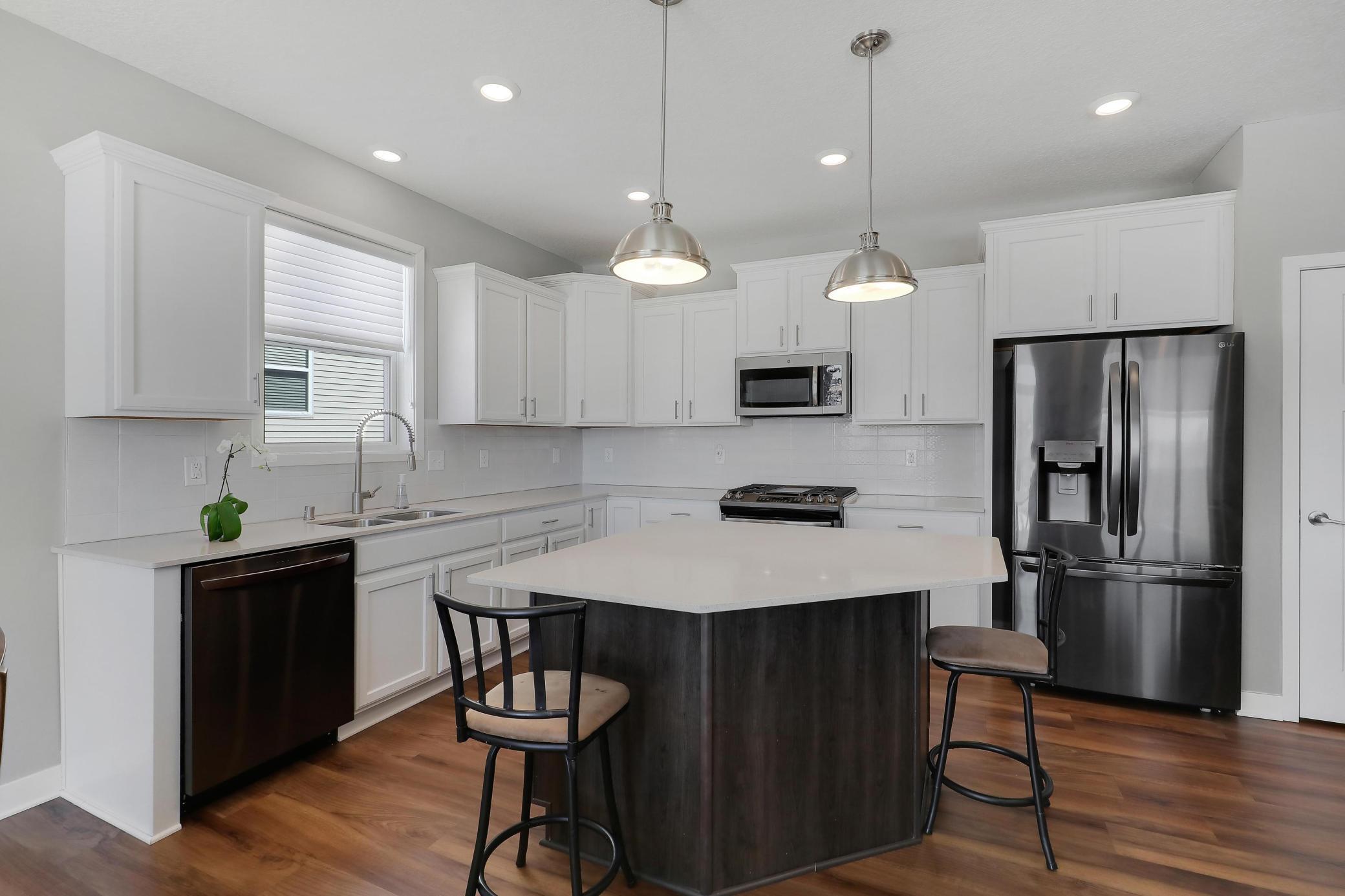Hard-to-find one-level living with a walkout lower level, ideally situated on a quiet cul-de-sac. This home offers the convenience of an association that handles snow removal, lawn care, and irrigation for low-maintenance living. The interior features quartz countertops, a walk-in pantry, an upgraded stainless steel appliance package, and an enhanced primary bathroom. Additional owner improvements include a newer deck, water softener, window treatments, and blackout shades in the main-level bedrooms.