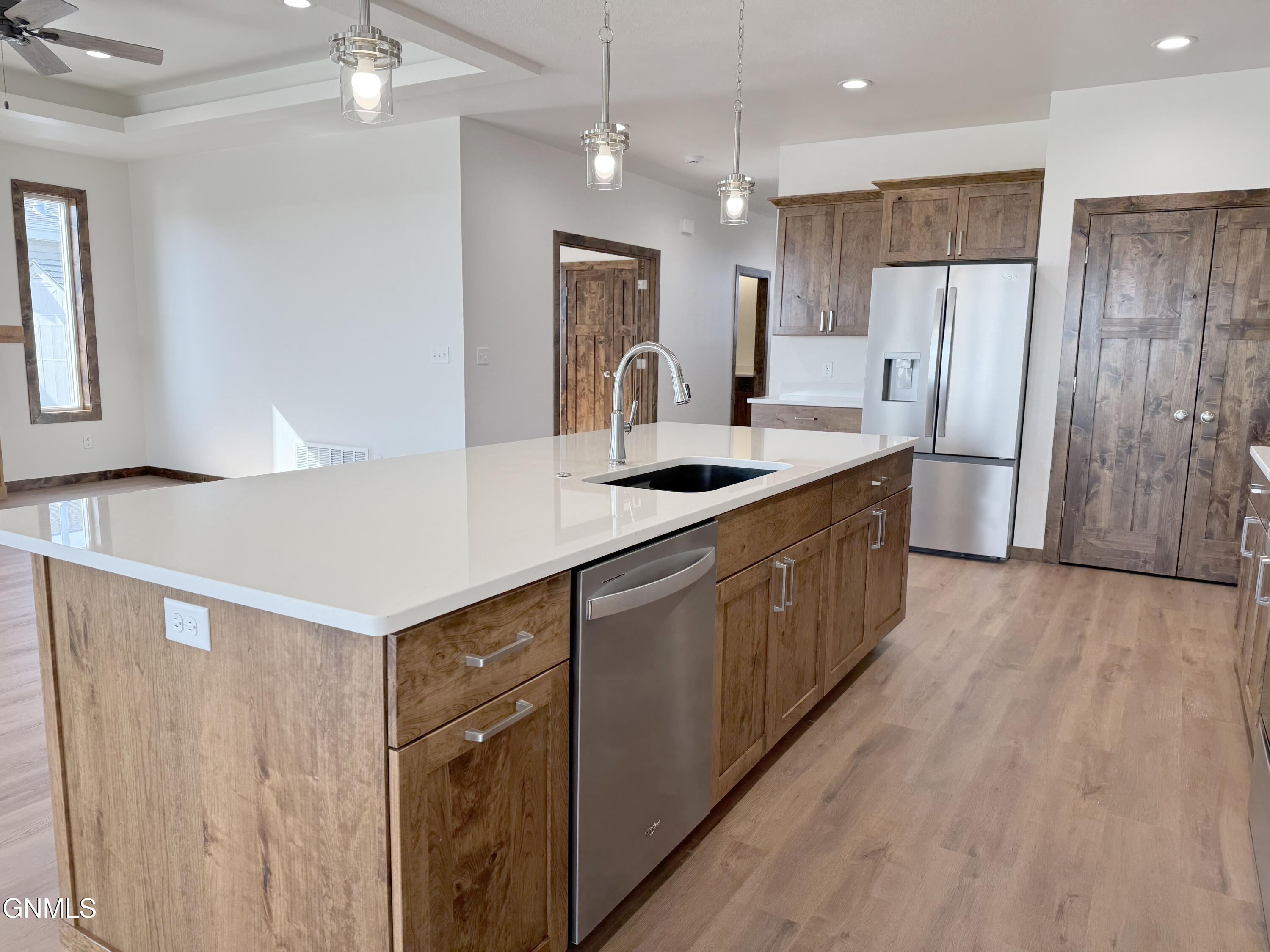 New construction NO STEPS PATIO HOME by Sattler Homes! This quality built, spacious home has 3 bedrooms & 2 baths. The laundry/mudroom has a bench system & storage/multi use room. You'll love the GORGEOUS, CUSTOM RUSTIC CHERRY CABINETS WITH SOFT CLOSE DRAWERS & DOORS & QUARTZ COUNTERTOPS throughout. The kitchen has a LARGE ISLAND, PANTRY & UPGRADED APPLIANCES. The dining room is huge & has sliding doors leading to the spacious covered patio. The living has a 10 ft high tray ceiling & tastefully detailed fireplace. The 3 stall garage is fully finished with hot & cold water, utility sink, floor drain & heat. The furnace & water heater are high efficiency & includes an Air Bear air cleaner system.