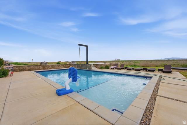 Great Salt Lake & Antelope Island views 1.21-acre estate Pool, spa, and theater room. Luxury 5 bed, 3.5 bath home with industrial-modern design, large windows, exposed beams, brick accents, floating stairs, and metal railings. Open-concept layout with incredible natural light oriented toward lake and sunset views. Primary suite features Euro glass shower, rain shower, freestanding tub, and custom closet. Fully finished basement includes 2 bedrooms, 1 bath, family room, and dedicated theater room. Resort-style backyard with pool, waterfall, hot tub, and rope swing. 3-car garage with extra-deep third bay. 1.21-acre lot offers space for horses, barn, shop, or additional garage. Close to Station Park, Lagoon, Farmington Pond trails, and I-15. Video tour included.