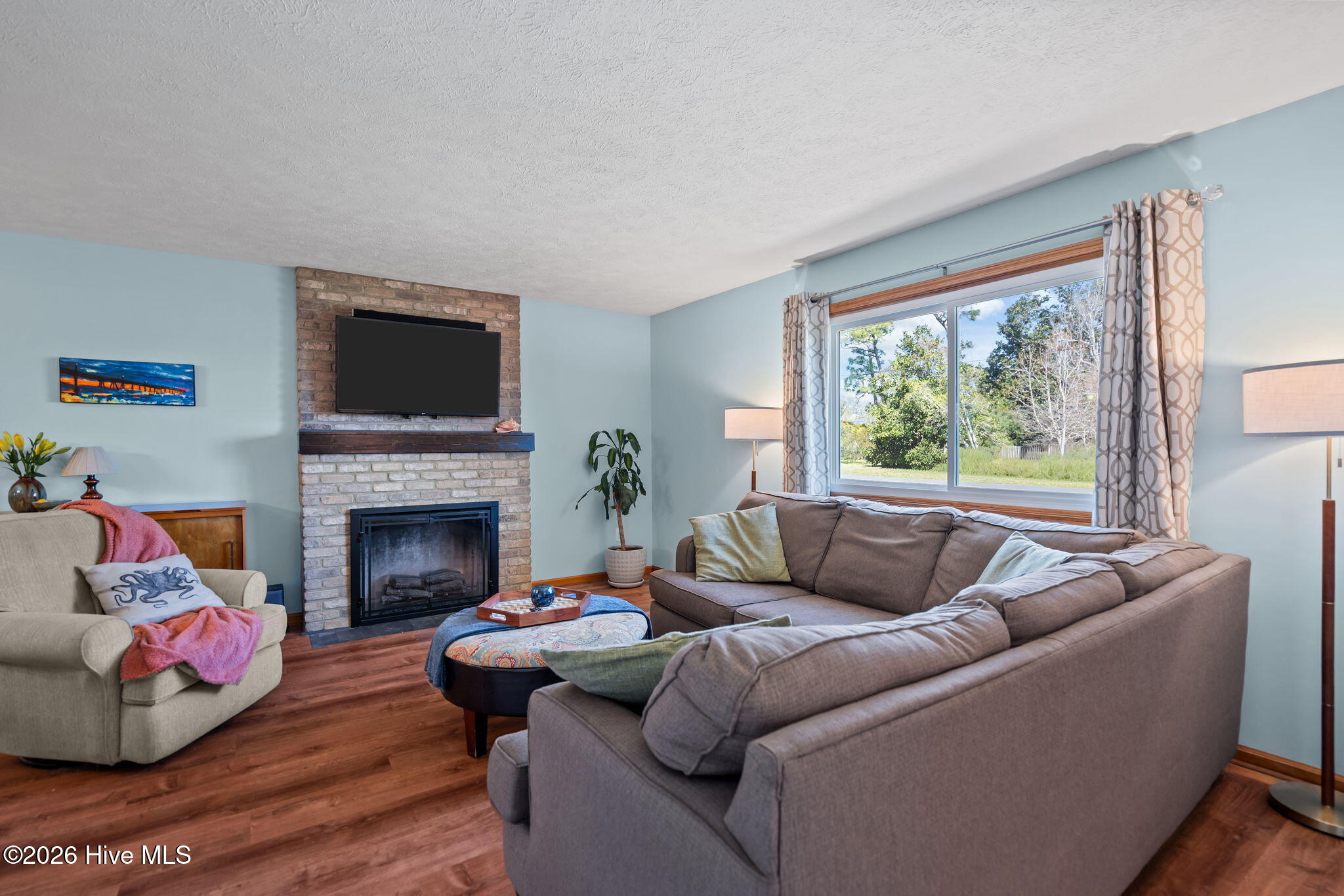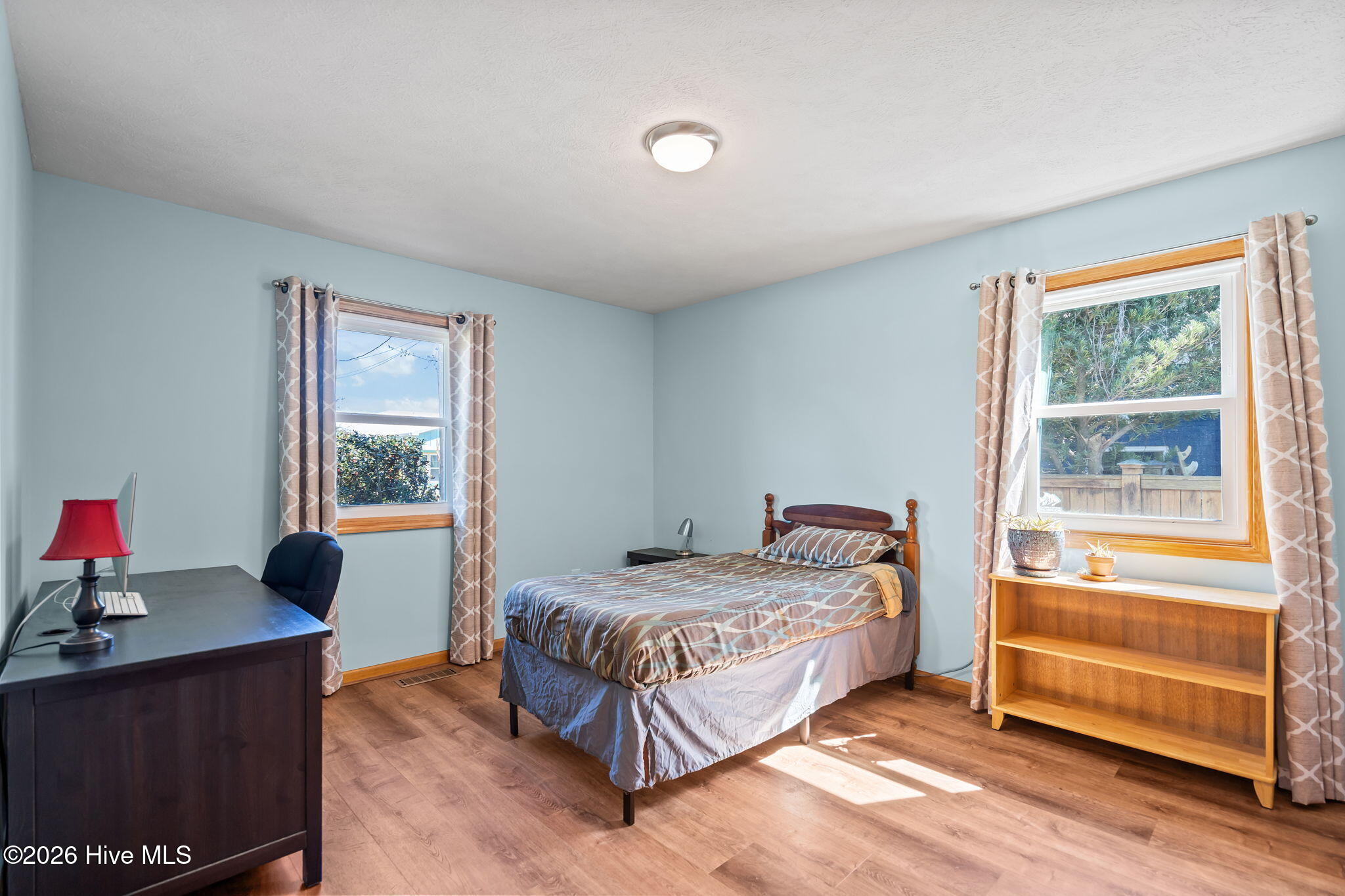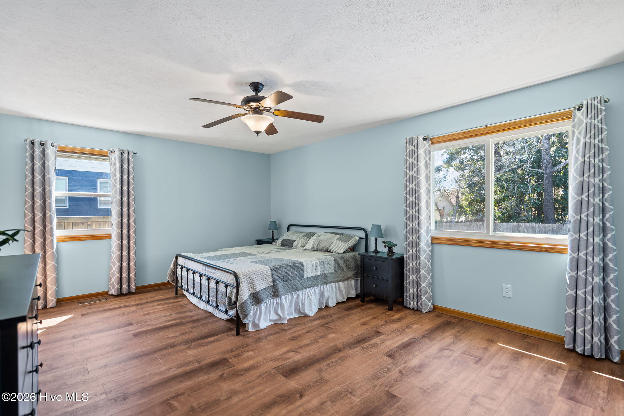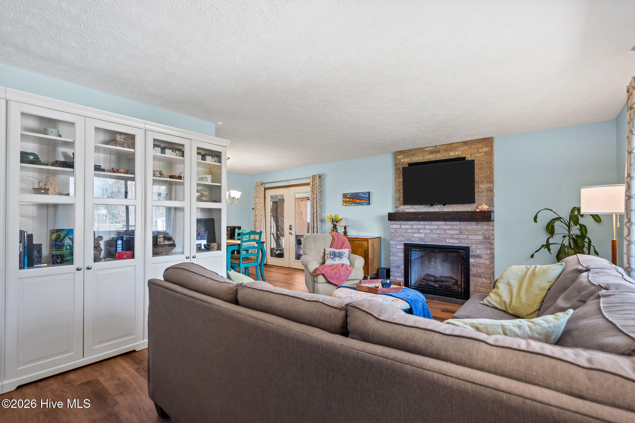 Excellent opportunity to own a spacious brick beach home in the heart of Carolina Beach. Situated on a rare .29 acre homesite-one of the largest on the island-this 4 bedroom, 3 full bath home offers 2,104 sq ft of coastal living with numerous updates throughout. Recent improvements include renovated bathrooms (guest 2020, family 2021, primary 2025), newer luxury vinyl plank flooring (2024-2025), and updated windows (2023). A covered front porch welcomes you into a bright living room centered around an electric fireplace with a classic brick surround. The kitchen features craftsman-style cabinetry with stacked uppers, stainless steel appliances, a newer refrigerator (2025), and a sunny breakfast nook. The primary suite includes a second electric fireplace and a well-appointed en suite bath with dual vanities, a tiled walk-in shower, and spacious walk-in closet. A secondary bedroom with en suite bath connects to a flexible living area with a sink and private porch access-ideal for a home office, playroom, guest suite, or multigenerational living. Two additional bedrooms and a generous laundry room complete the interior. Outdoor living truly sets this property apart. The expansive fenced backyard offers space to spread out, complete with a firepit overlooking the pond, an above-ground pool for warm coastal days, and a 6x8 shed for storage. The screened porch provides a shaded retreat and can open to function as a covered carport. Additional features include a newer water heater (2025), heat pump (2018), a fortified roof (2025), and the added benefit of not being located in a flood zone. Located just 4.5 blocks from Hamlet Public Beach Access, 0.6 miles to the iconic Carolina Beach Boardwalk, and even closer to numerous dining, shopping, and entertainment options. Whether youre searching for a primary residence, beach getaway, or investment opportunity, this property offers the space, updates, and location to make it happen.
