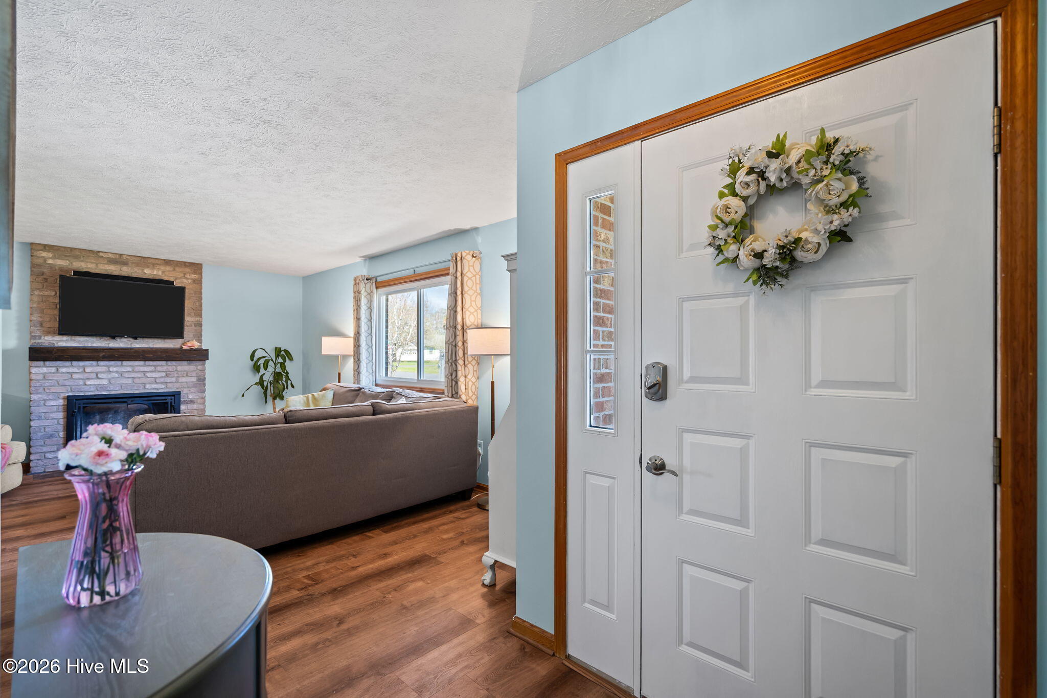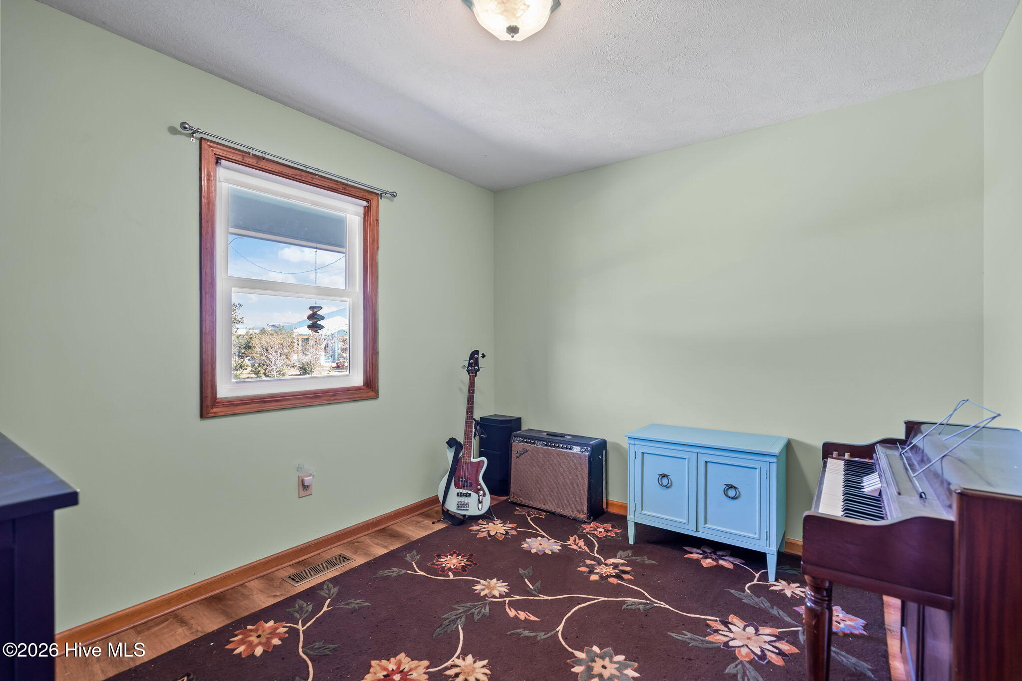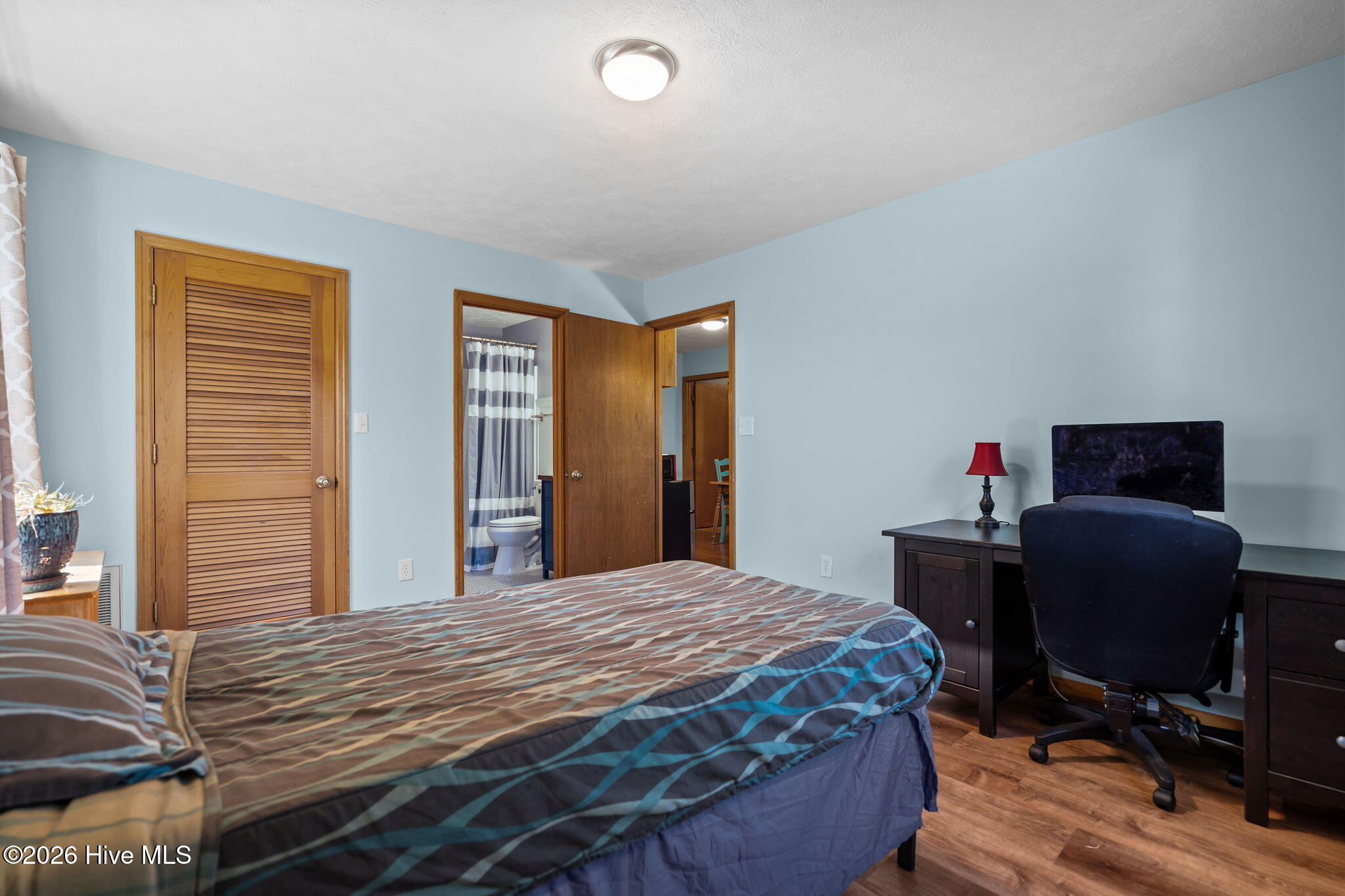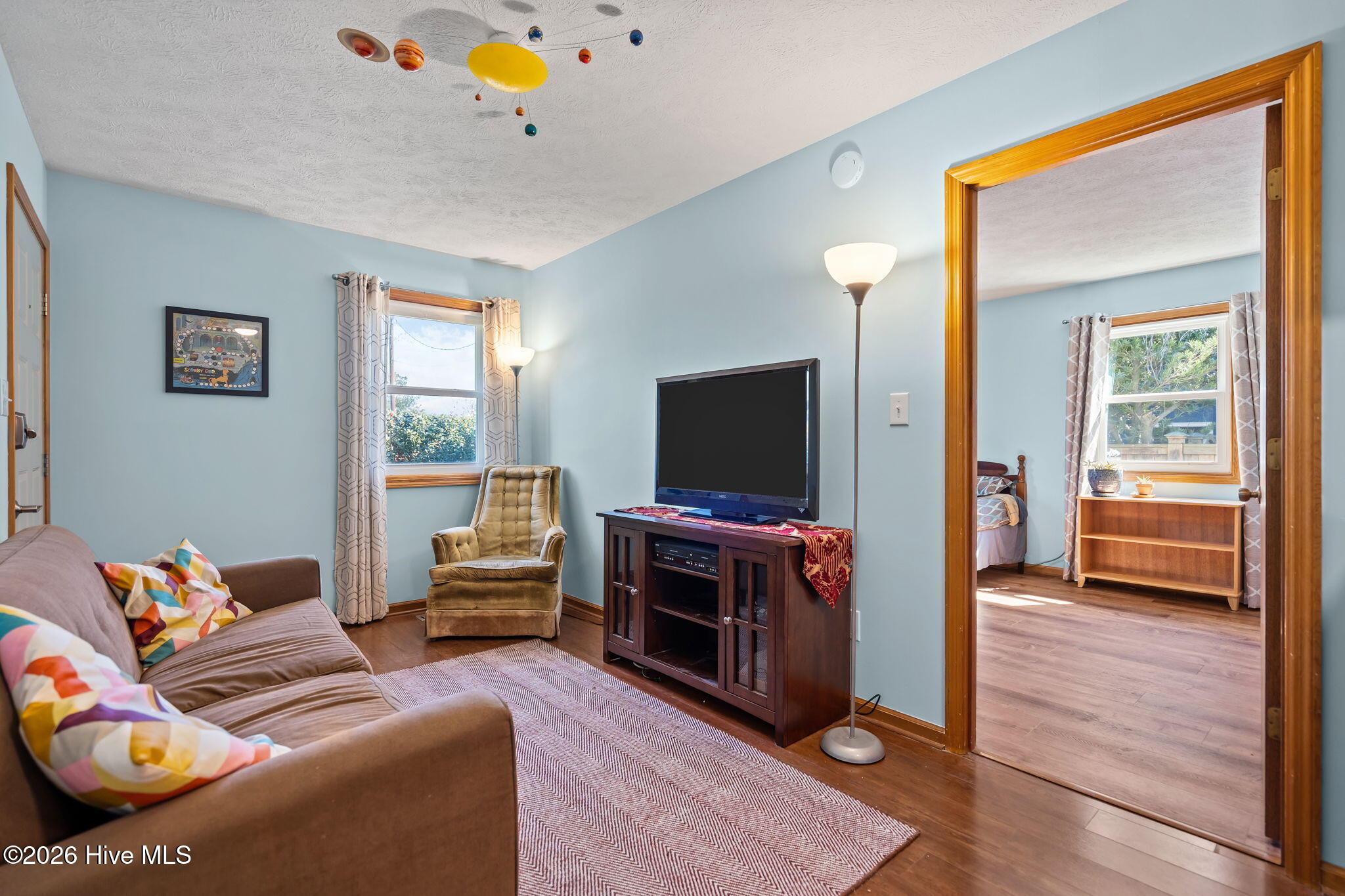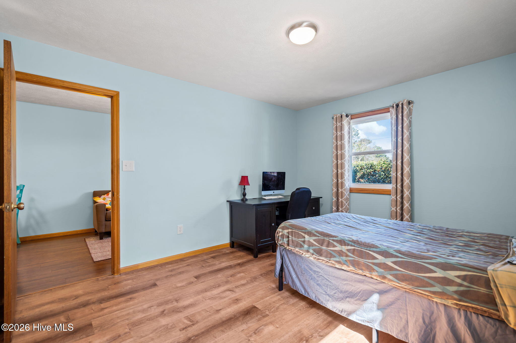 Excellent opportunity to own a spacious brick beach home in the heart of Carolina Beach. Situated on a rare .29 acre homesite-one of the largest on the island-this 4 bedroom, 3 full bath home offers 2,104 sq ft of coastal living with numerous updates throughout. Recent improvements include renovated bathrooms (guest 2020, family 2021, primary 2025), newer luxury vinyl plank flooring (2024-2025), and updated windows (2023). A covered front porch welcomes you into a bright living room centered around an electric fireplace with a classic brick surround. The kitchen features craftsman-style cabinetry with stacked uppers, stainless steel appliances, a newer refrigerator (2025), and a sunny breakfast nook. The primary suite includes a second electric fireplace and a well-appointed en suite bath with dual vanities, a tiled walk-in shower, and spacious walk-in closet. A secondary bedroom with en suite bath connects to a flexible living area with a sink and private porch access-ideal for a home office, playroom, guest suite, or multigenerational living. Two additional bedrooms and a generous laundry room complete the interior. Outdoor living truly sets this property apart. The expansive fenced backyard offers space to spread out, complete with a firepit overlooking the pond, an above-ground pool for warm coastal days, and a 6x8 shed for storage. The screened porch provides a shaded retreat and can open to function as a covered carport. Additional features include a newer water heater (2025), heat pump (2018), a fortified roof (2025), and the added benefit of not being located in a flood zone. Located just 4.5 blocks from Hamlet Public Beach Access, 0.6 miles to the iconic Carolina Beach Boardwalk, and even closer to numerous dining, shopping, and entertainment options. Whether youre searching for a primary residence, beach getaway, or investment opportunity, this property offers the space, updates, and location to make it happen.