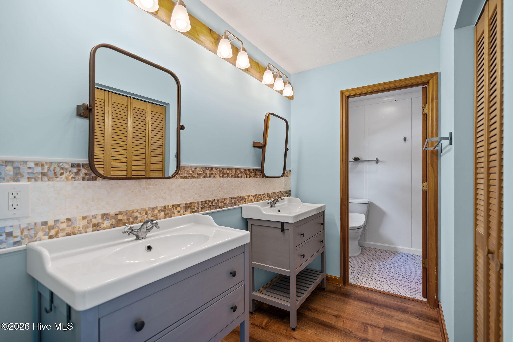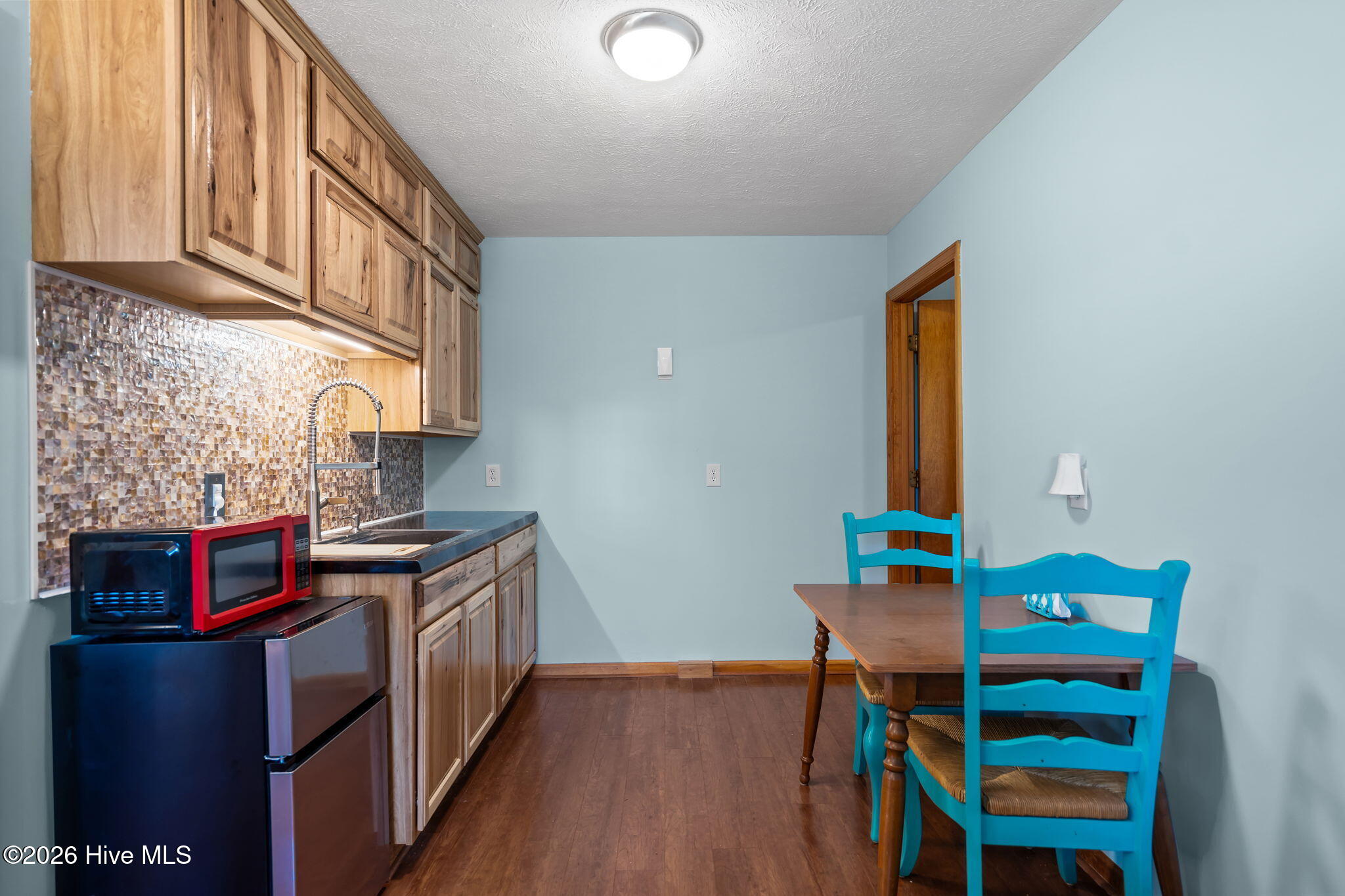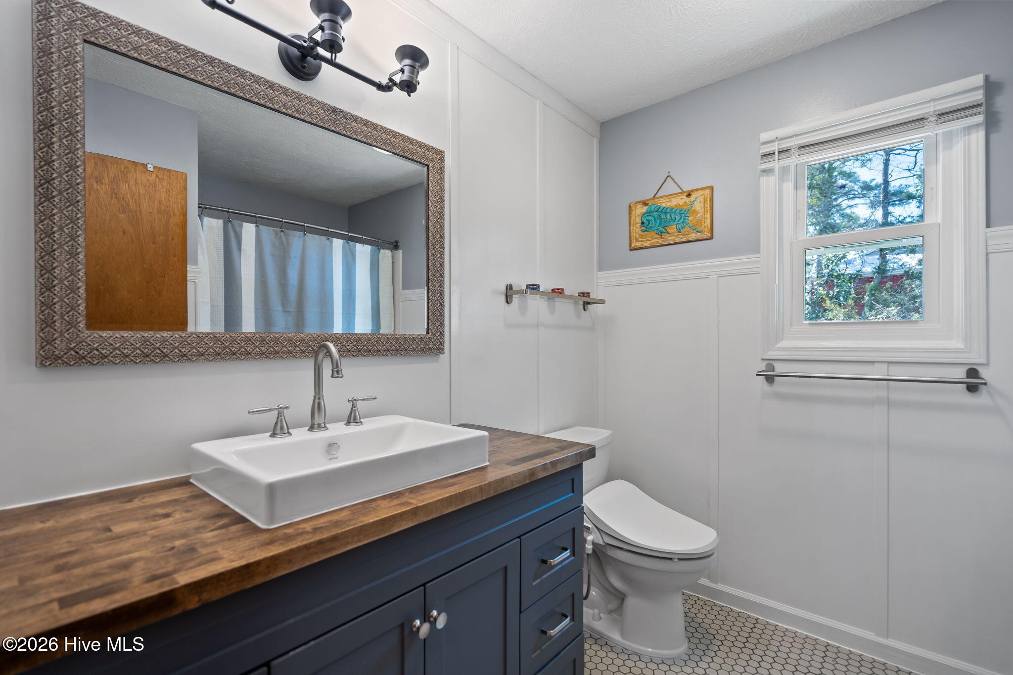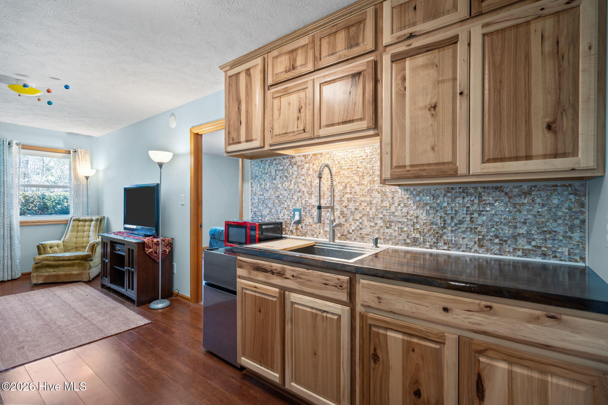 Excellent opportunity to own a spacious brick beach home in the heart of Carolina Beach. Situated on a rare .29 acre homesite-one of the largest on the island-this 4 bedroom, 3 full bath home offers 2,104 sq ft of coastal living with numerous updates throughout. Recent improvements include renovated bathrooms (guest 2020, family 2021, primary 2025), newer luxury vinyl plank flooring (2024-2025), and updated windows (2023). A covered front porch welcomes you into a bright living room centered around an electric fireplace with a classic brick surround. The kitchen features craftsman-style cabinetry with stacked uppers, stainless steel appliances, a newer refrigerator (2025), and a sunny breakfast nook. The primary suite includes a second electric fireplace and a well-appointed en suite bath with dual vanities, a tiled walk-in shower, and spacious walk-in closet. A secondary bedroom with en suite bath connects to a flexible living area with a sink and private porch access-ideal for a home office, playroom, guest suite, or multigenerational living. Two additional bedrooms and a generous laundry room complete the interior. Outdoor living truly sets this property apart. The expansive fenced backyard offers space to spread out, complete with a firepit overlooking the pond, an above-ground pool for warm coastal days, and a 6x8 shed for storage. The screened porch provides a shaded retreat and can open to function as a covered carport. Additional features include a newer water heater (2025), heat pump (2018), a fortified roof (2025), and the added benefit of not being located in a flood zone. Located just 4.5 blocks from Hamlet Public Beach Access, 0.6 miles to the iconic Carolina Beach Boardwalk, and even closer to numerous dining, shopping, and entertainment options. Whether youre searching for a primary residence, beach getaway, or investment opportunity, this property offers the space, updates, and location to make it happen.