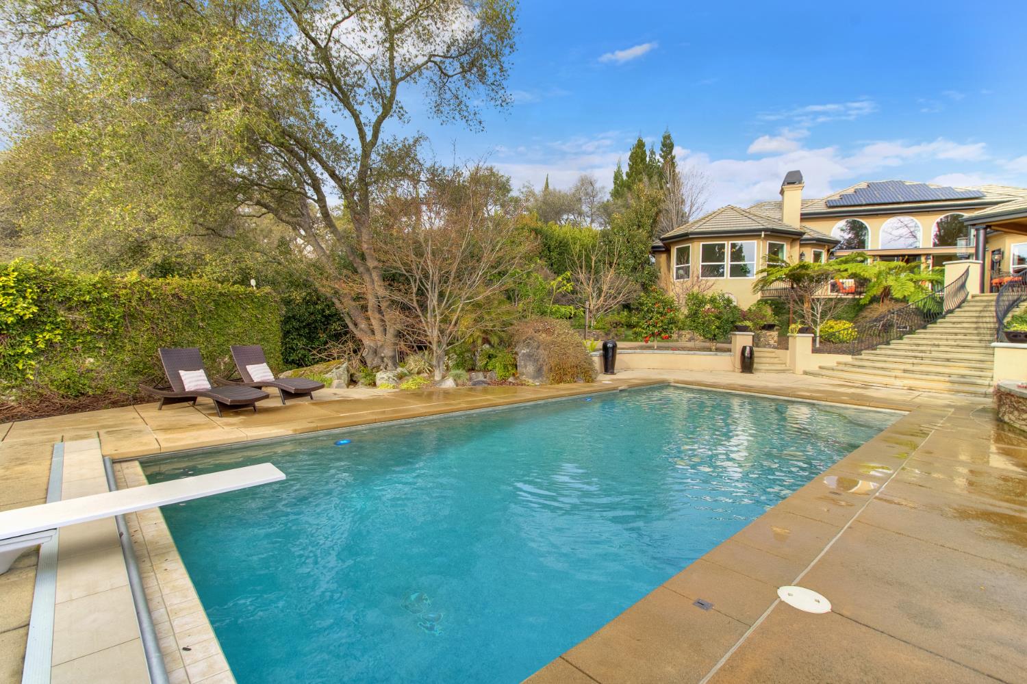 Set behind the prestigious guarded gates of Los Lagos, this exceptional residence offers refined luxury, privacy and resort-inspired living in one of Granite Bays most sought-after communities. A stunning courtyard entry creates an unforgettable first impression, welcoming guests with elegance and architectural charm. From the moment of arrival, the home reflects sophistication and thoughtful design. Four fireplaces add warmth and ambiance throughout, enhancing the atmosphere with both comfort and style. The chefs kitchen is beautifully designed with dual islands, offering expansive preparation space, generous seating, and effortless flow for entertaining on any scale. The outdoor setting is nothing short of extraordinary. A sparkling swimming pool with dramatic crossover waterfalls creates a breathtaking focal point, complemented by a serene koi pond and beautifully landscaped front and rear grounds. Multiple outdoor seating areas provide inviting spaces for conversation and relaxation, while the fully covered outdoor kitchen makes year-round entertaining effortless. A private putting greet adds yet another layer of luxury and recreation. An executive office with a temperature-controlled wine closet offers both function and sophistication, ideal for collectors and those who appreciate fine living. Enhancing both efficiency and long-term value, the home includes an owned solar system with 40 panels producing approximately 10kW - delivering sustainable energy and meaningful utility savings. A 22kW natural gas fired backup generator provides reliability and resilience during utility power outages. A rare offering within Los Lagos Estates, this residence embodies privacy, distinction and timeless elegance.