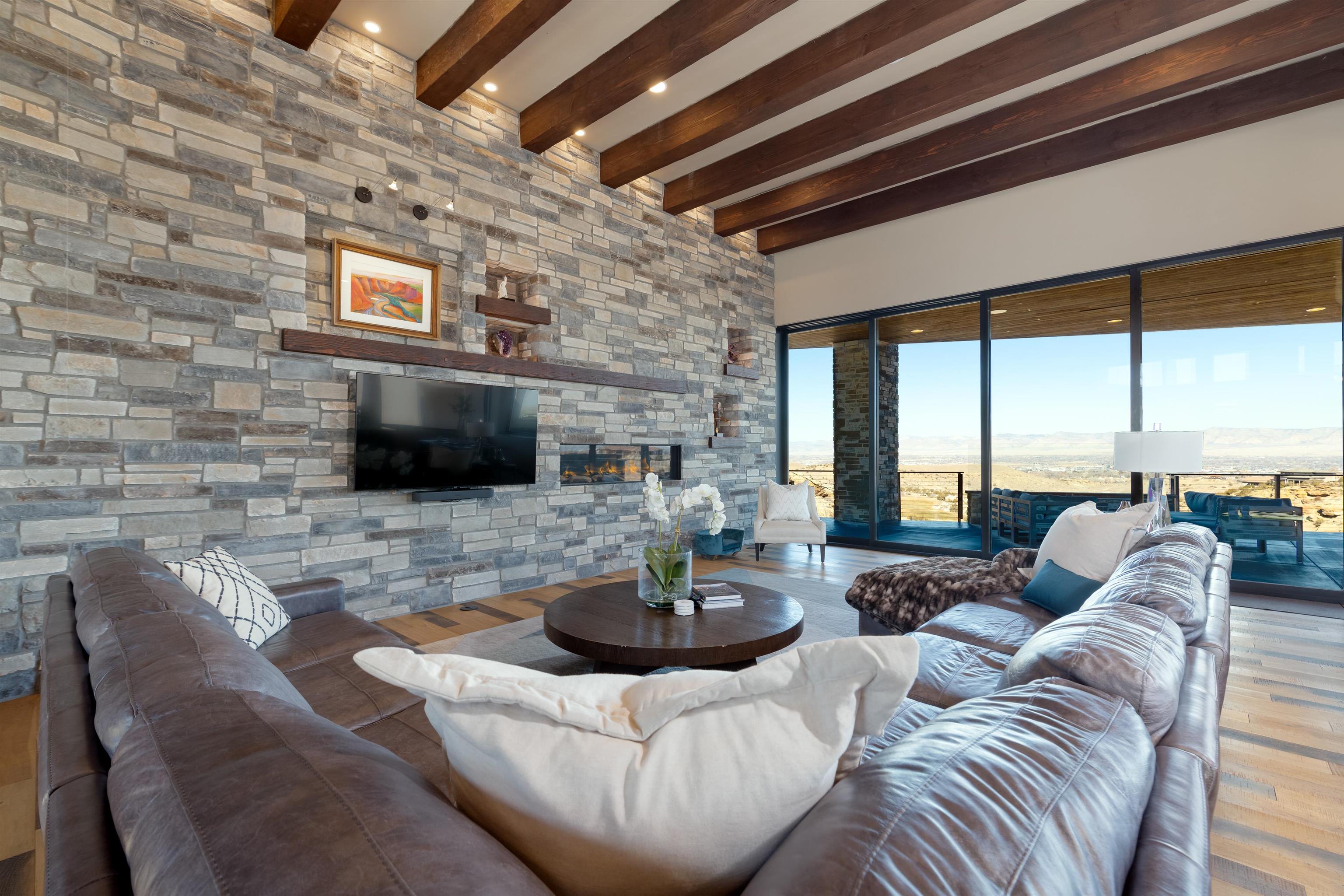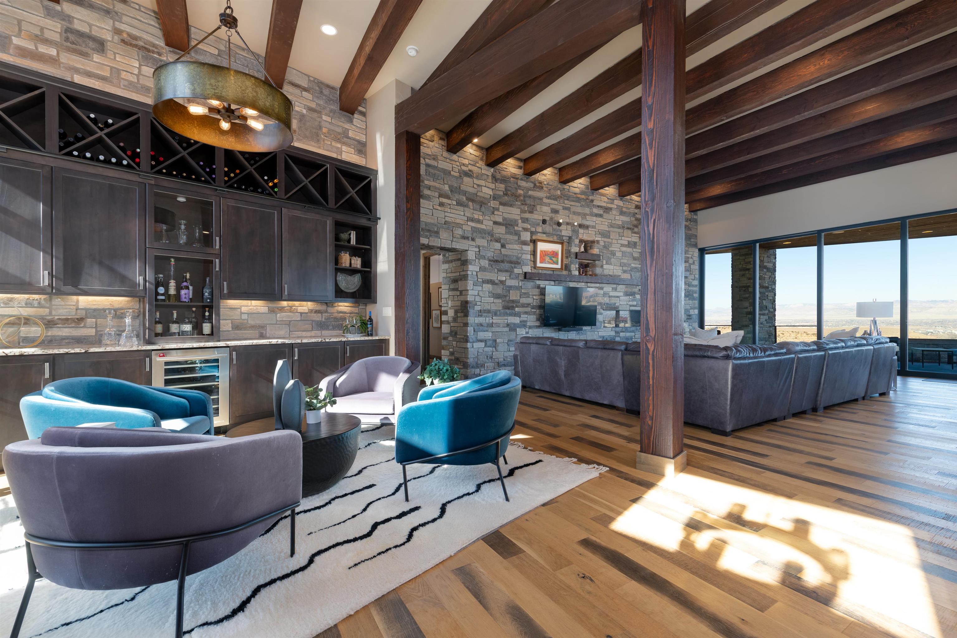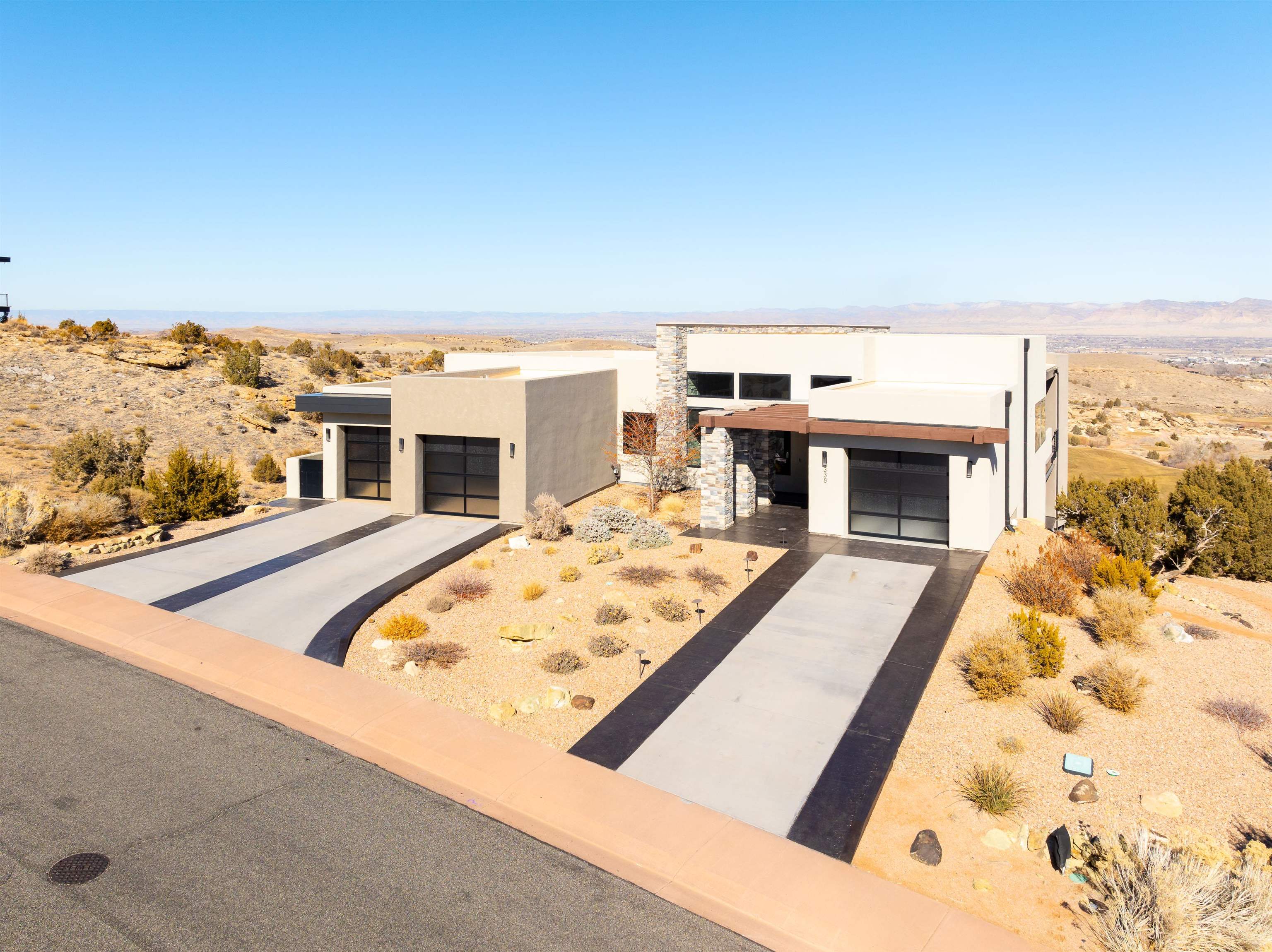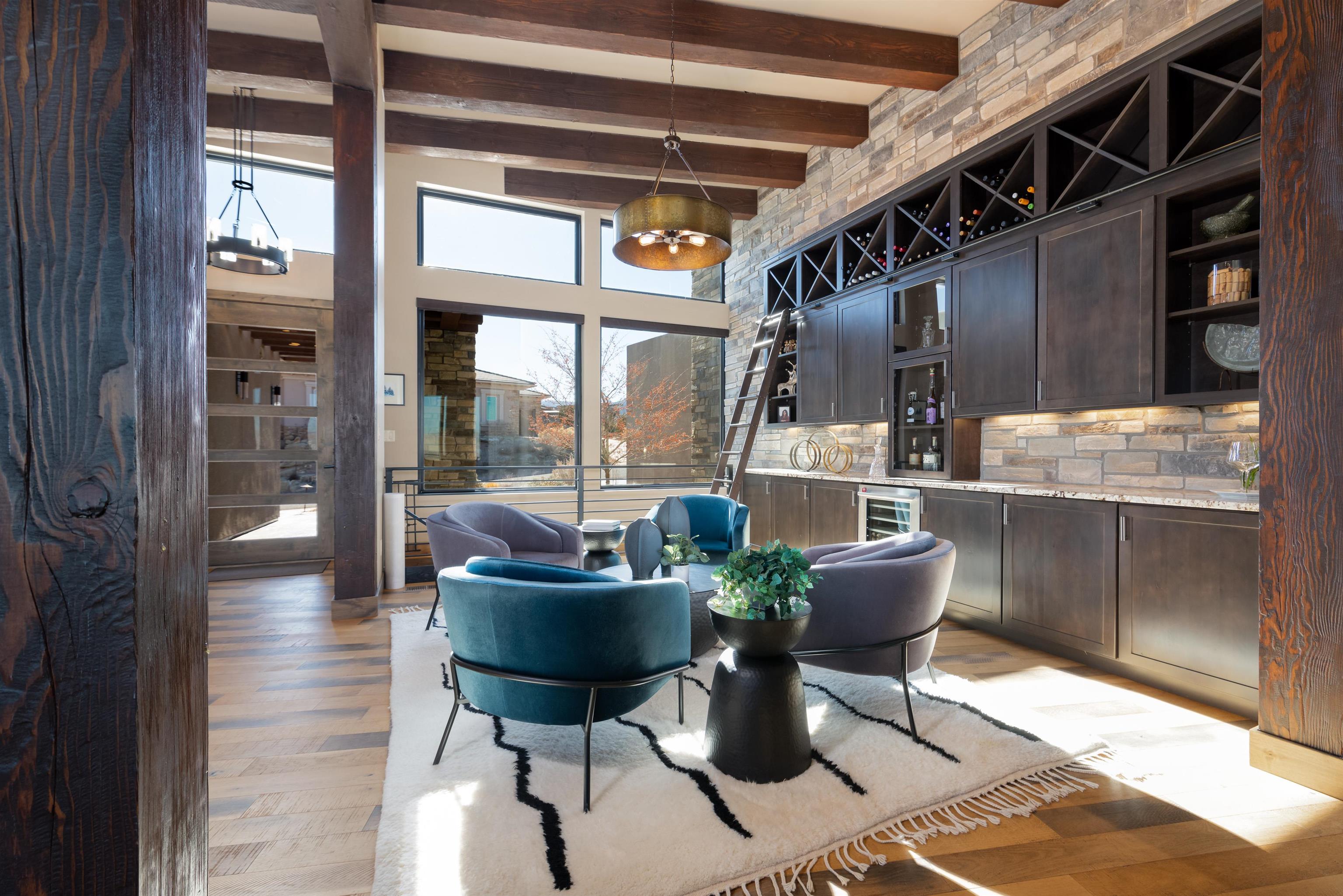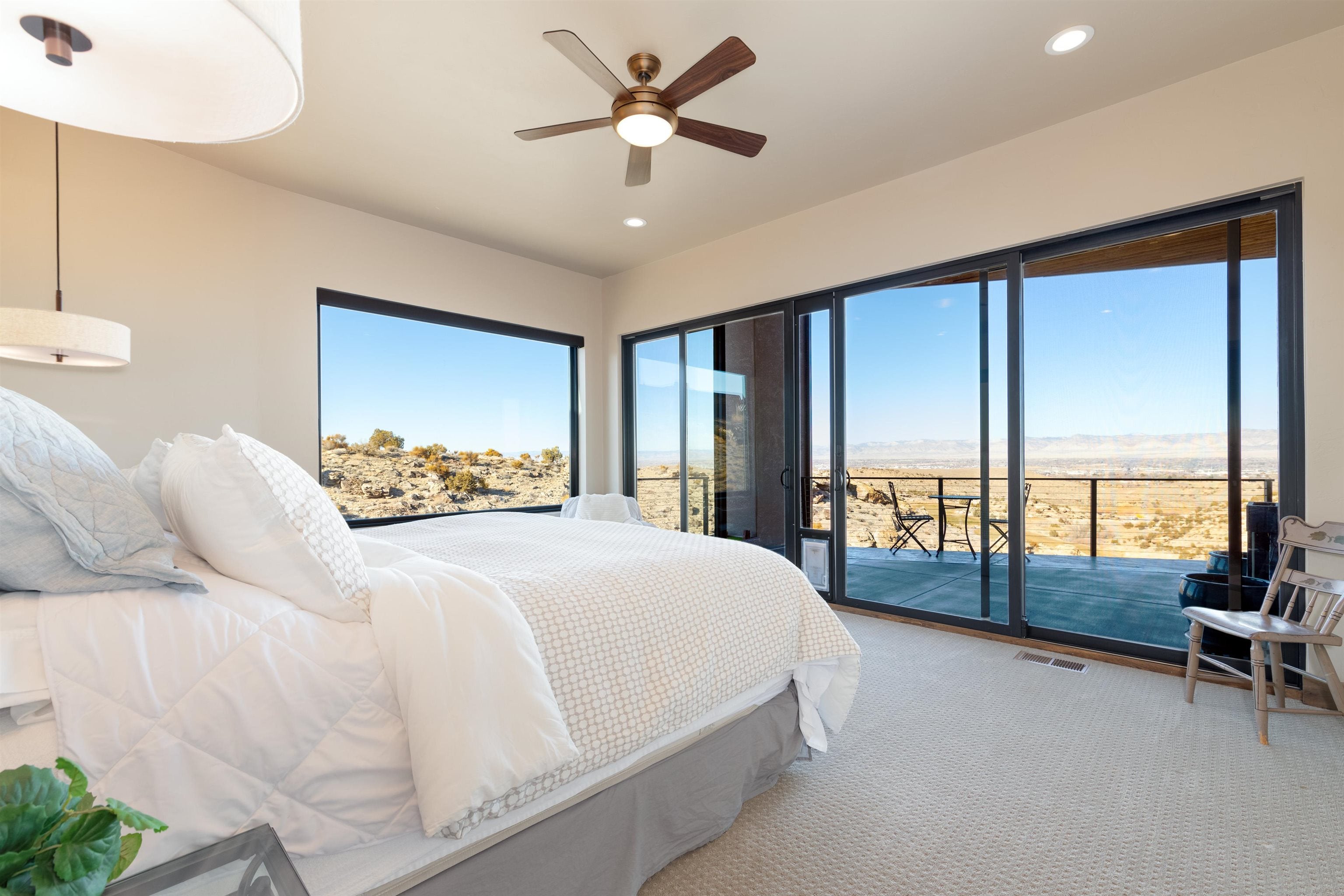 Set within the coveted Redlands Mesa community, this striking mountain modern residence offers a refined take on luxury livingwhere clean architectural lines, natural materials, and sweeping views come together with intention. The main level is designed for both elevated entertaining and everyday comfort. A dramatic living space is anchored by a stone feature wall and framed with coastal Douglas fir beams, while expansive windows draw in panoramic views of the city lights and the Bookcliffs. The kitchen is thoughtfully appointed with high-end finishes, a generous island, and a well-equipped butlers pantry that keeps everything seamlessly tucked away. The primary suite, privately positioned on the main level, feels more like a retreatcomplete with a custom-designed closet and an in-suite sauna for a true spa experience. An elevator provides easy access to the lower level, where the home opens into a relaxed yet sophisticated entertainment space. A full wet bar sets the tone for gatherings, while a discreet hidden room adds an unexpected layer of intrigue. This level also includes a junior suite, additional bedroom, dedicated office, and flexible bonus space to suit a variety of needs. Outdoor living is just as compelling, with expansive spaces designed to take full advantage of the surrounding landscape and uninterrupted views. Bold in design yet warm in feel, this is a home that delivers both presence and livability in one of the areas most sought-after settings.