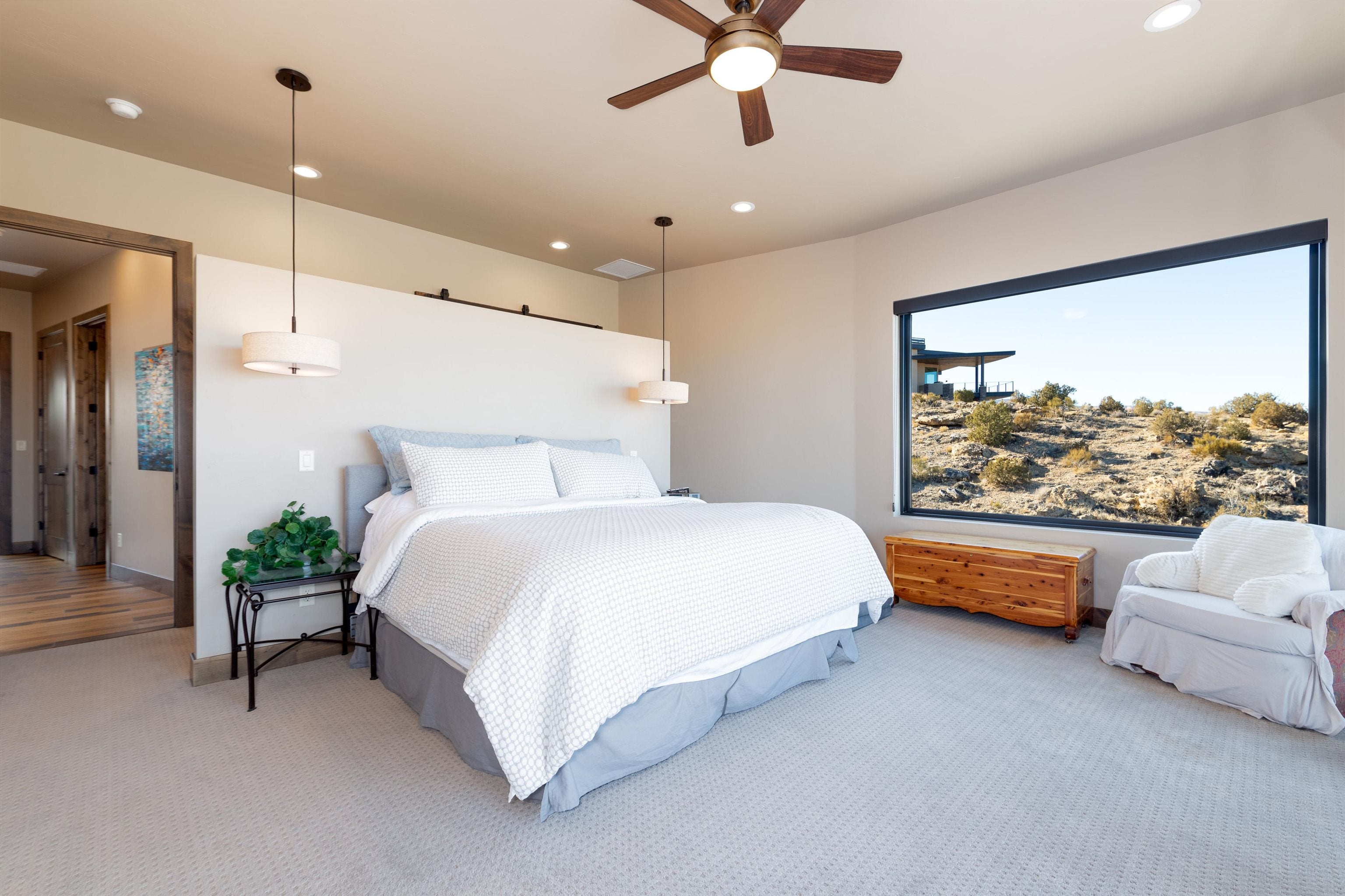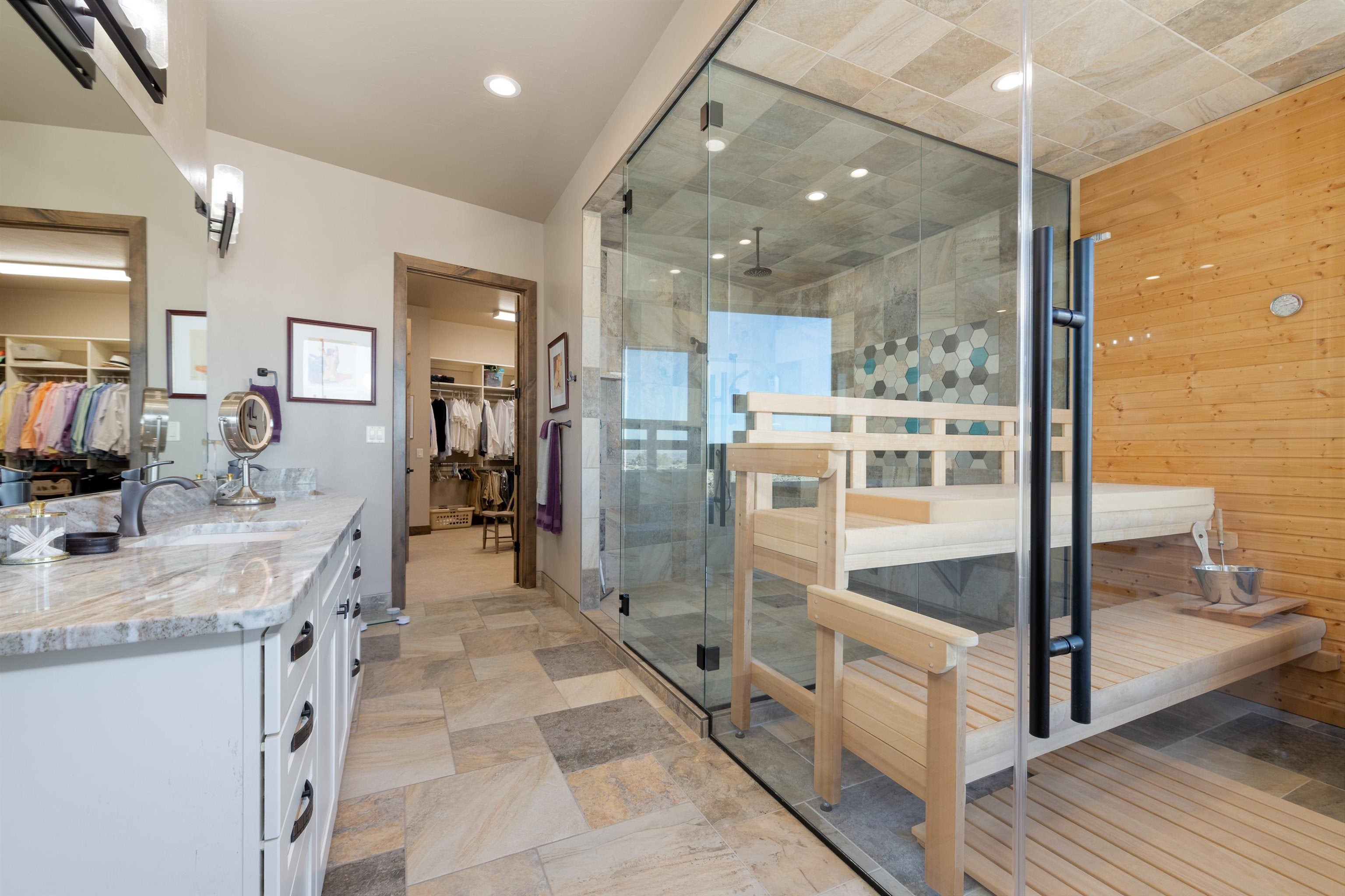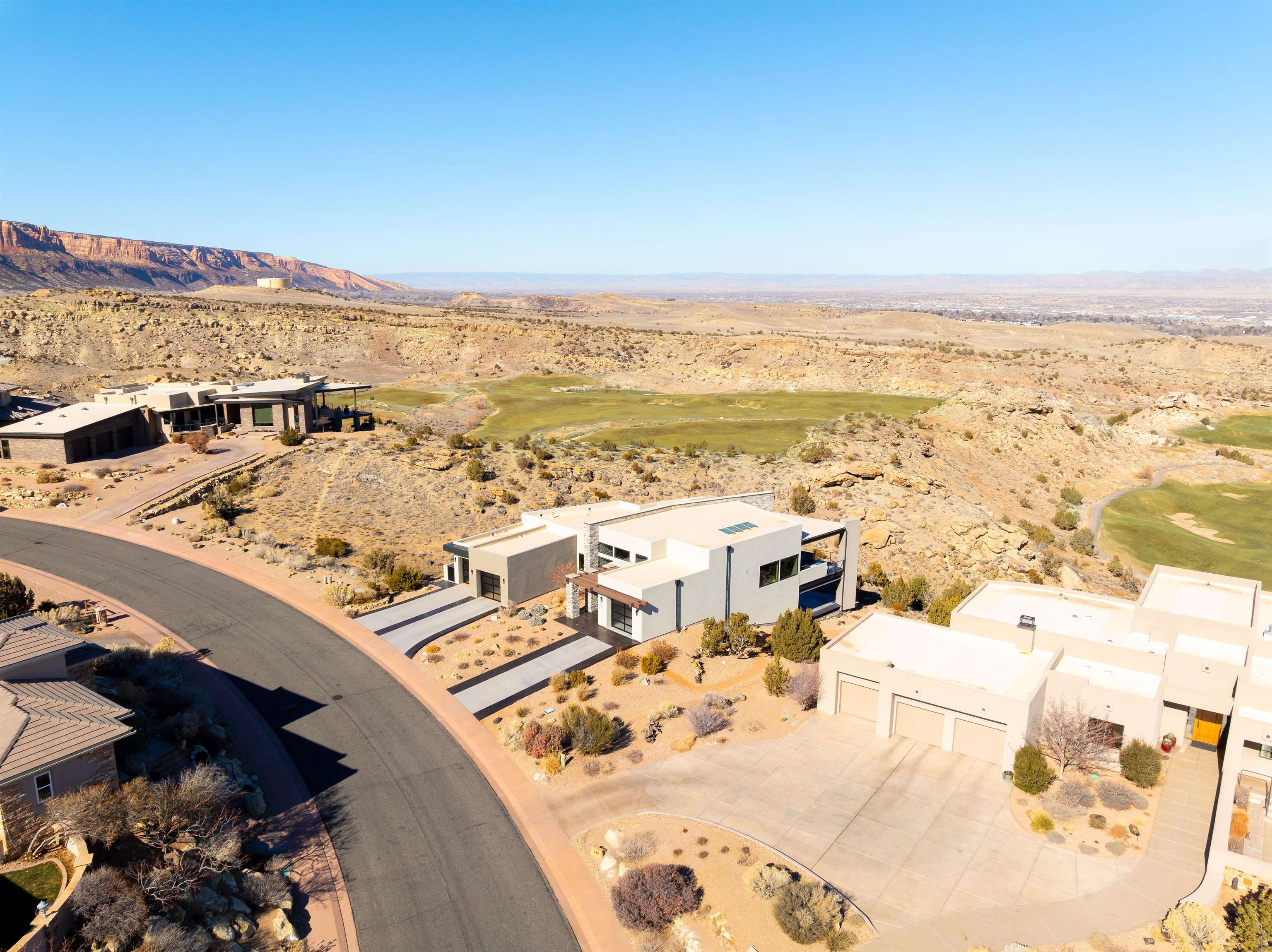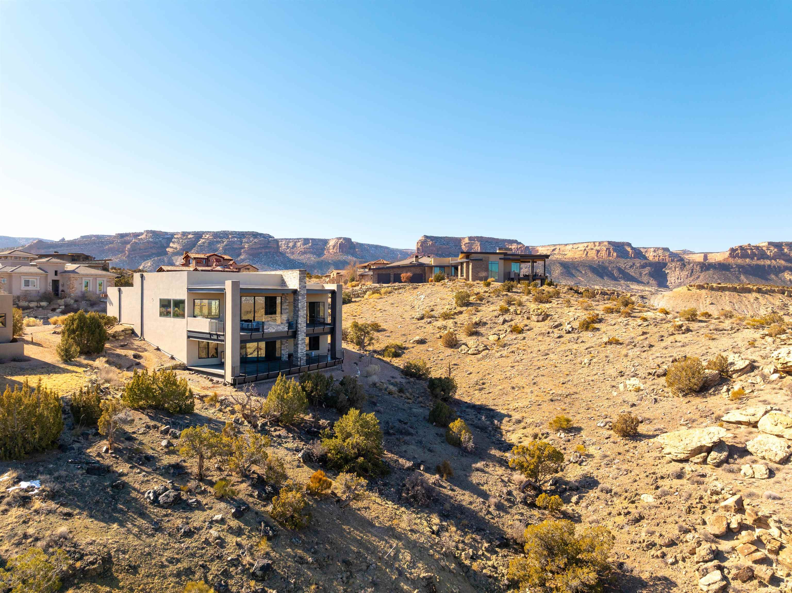 Set within the coveted Redlands Mesa community, this striking mountain modern residence offers a refined take on luxury livingwhere clean architectural lines, natural materials, and sweeping views come together with intention. The main level is designed for both elevated entertaining and everyday comfort. A dramatic living space is anchored by a stone feature wall and framed with coastal Douglas fir beams, while expansive windows draw in panoramic views of the city lights and the Bookcliffs. The kitchen is thoughtfully appointed with high-end finishes, a generous island, and a well-equipped butlers pantry that keeps everything seamlessly tucked away. The primary suite, privately positioned on the main level, feels more like a retreatcomplete with a custom-designed closet and an in-suite sauna for a true spa experience. An elevator provides easy access to the lower level, where the home opens into a relaxed yet sophisticated entertainment space. A full wet bar sets the tone for gatherings, while a discreet hidden room adds an unexpected layer of intrigue. This level also includes a junior suite, additional bedroom, dedicated office, and flexible bonus space to suit a variety of needs. Outdoor living is just as compelling, with expansive spaces designed to take full advantage of the surrounding landscape and uninterrupted views. Bold in design yet warm in feel, this is a home that delivers both presence and livability in one of the areas most sought-after settings.