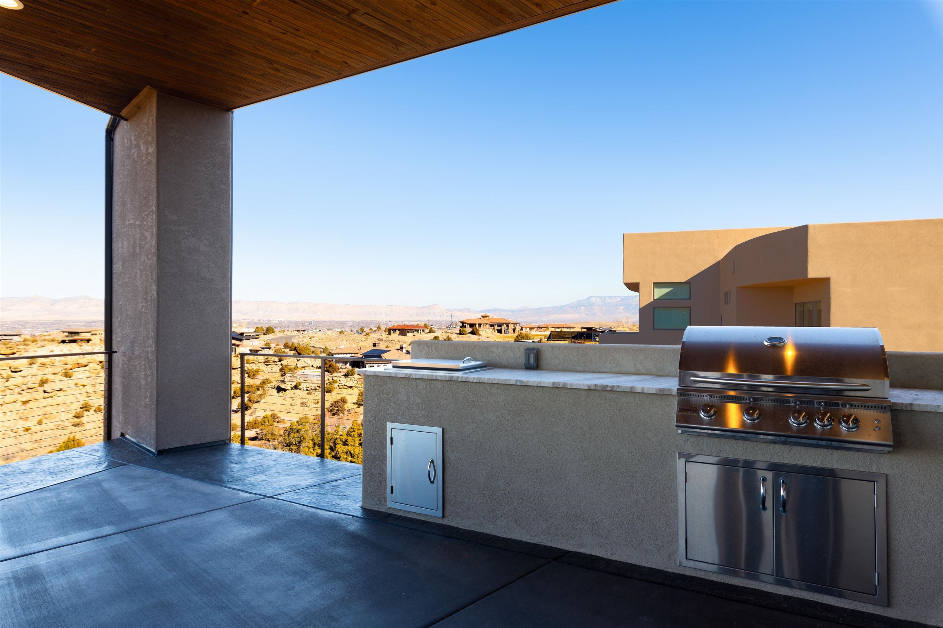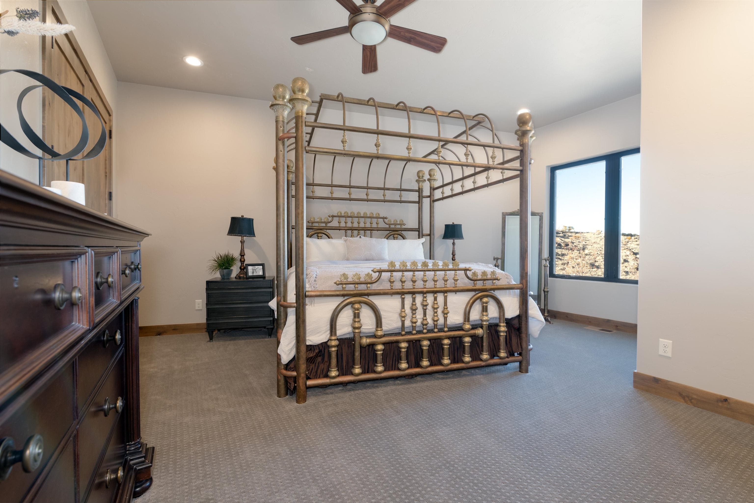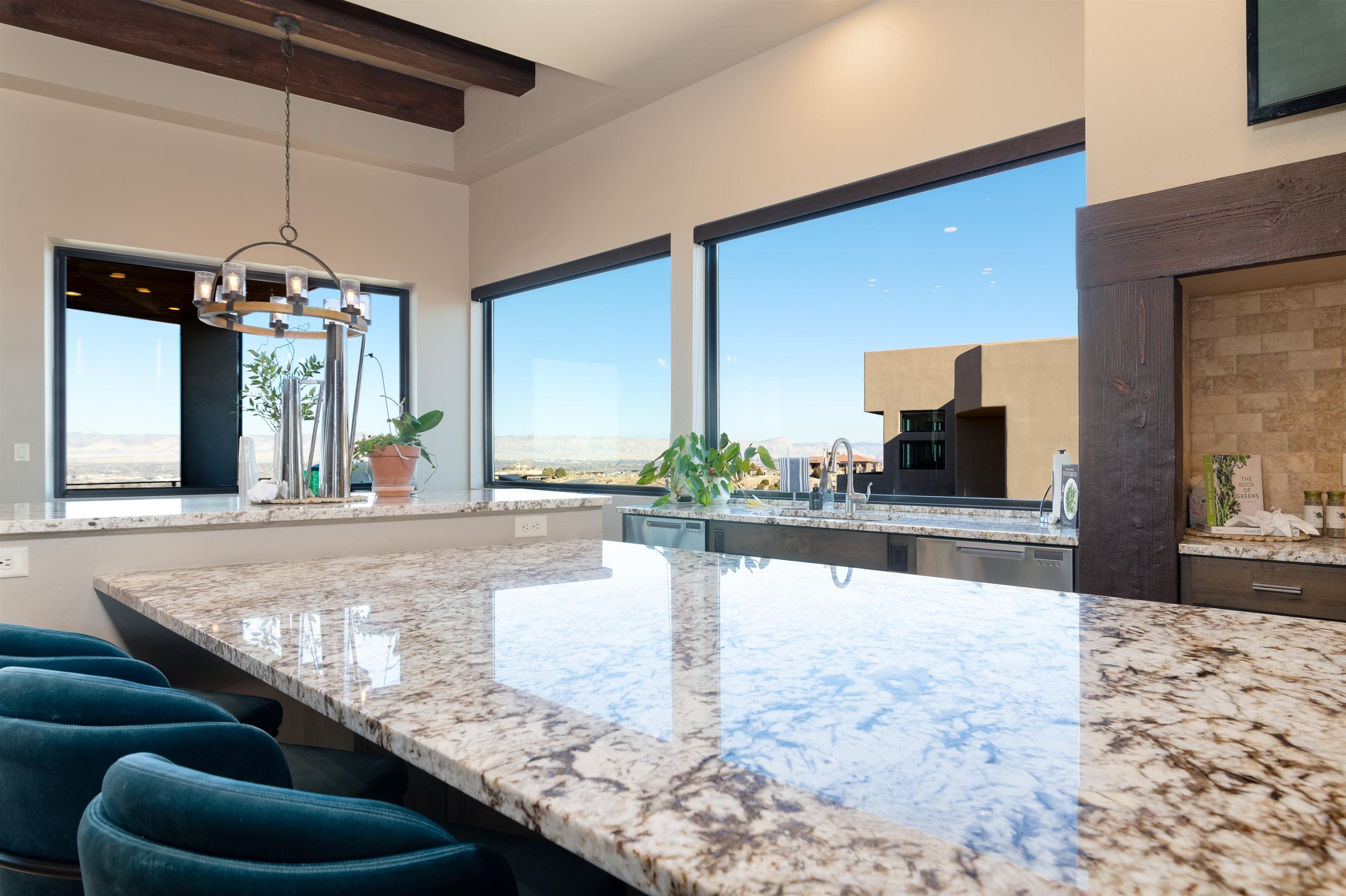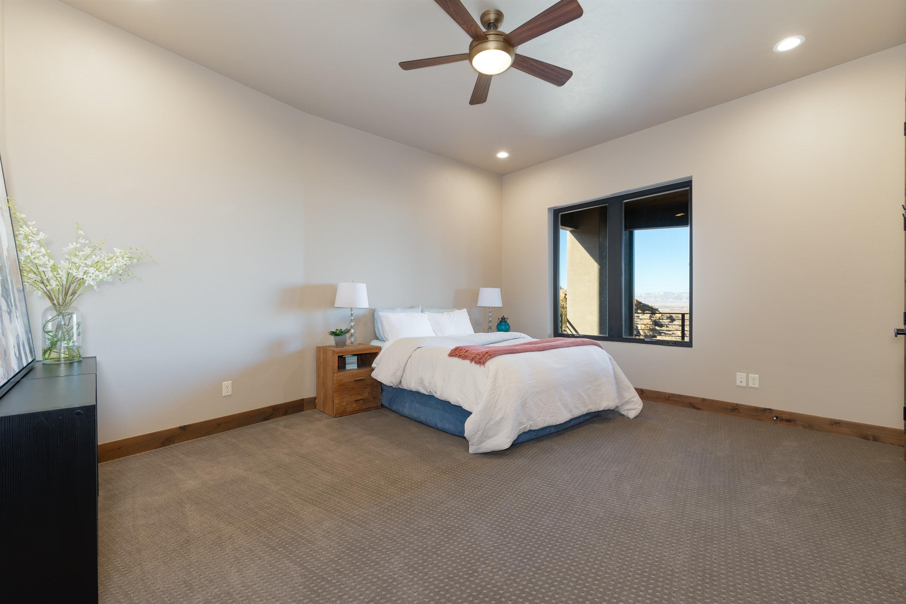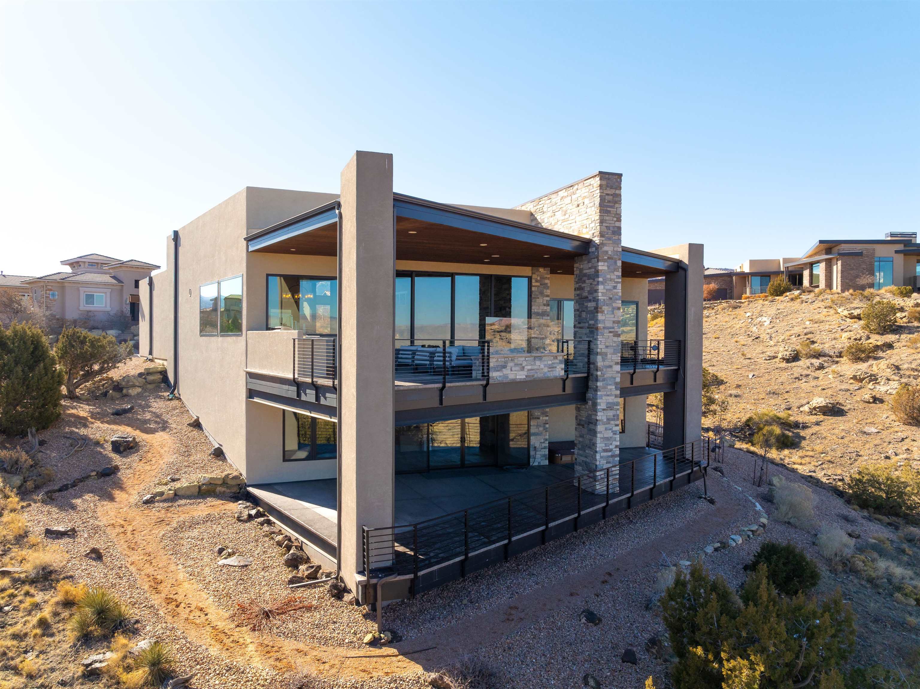 Set within the coveted Redlands Mesa community, this striking mountain modern residence offers a refined take on luxury livingwhere clean architectural lines, natural materials, and sweeping views come together with intention. The main level is designed for both elevated entertaining and everyday comfort. A dramatic living space is anchored by a stone feature wall and framed with coastal Douglas fir beams, while expansive windows draw in panoramic views of the city lights and the Bookcliffs. The kitchen is thoughtfully appointed with high-end finishes, a generous island, and a well-equipped butlers pantry that keeps everything seamlessly tucked away. The primary suite, privately positioned on the main level, feels more like a retreatcomplete with a custom-designed closet and an in-suite sauna for a true spa experience. An elevator provides easy access to the lower level, where the home opens into a relaxed yet sophisticated entertainment space. A full wet bar sets the tone for gatherings, while a discreet hidden room adds an unexpected layer of intrigue. This level also includes a junior suite, additional bedroom, dedicated office, and flexible bonus space to suit a variety of needs. Outdoor living is just as compelling, with expansive spaces designed to take full advantage of the surrounding landscape and uninterrupted views. Bold in design yet warm in feel, this is a home that delivers both presence and livability in one of the areas most sought-after settings.
