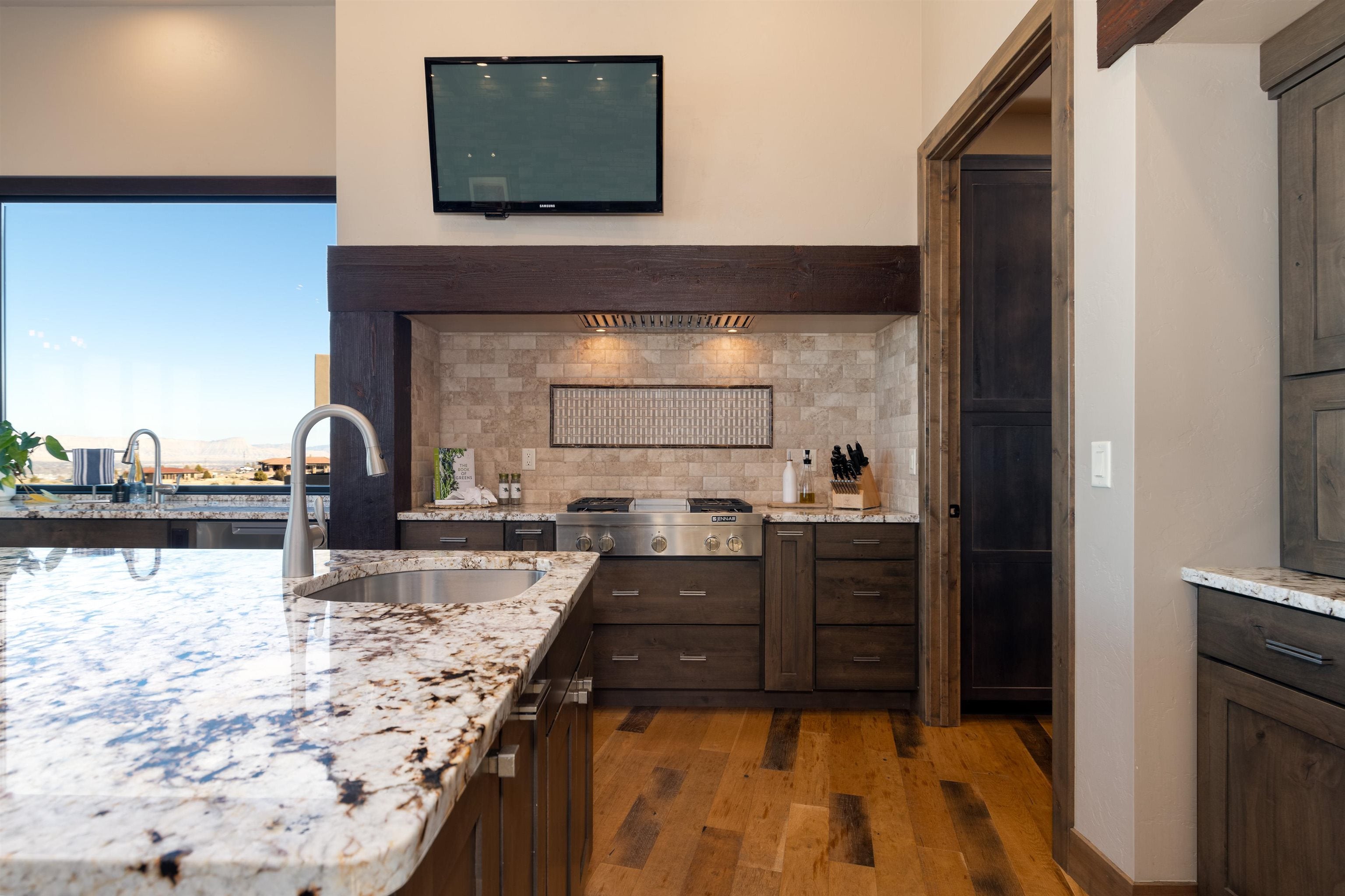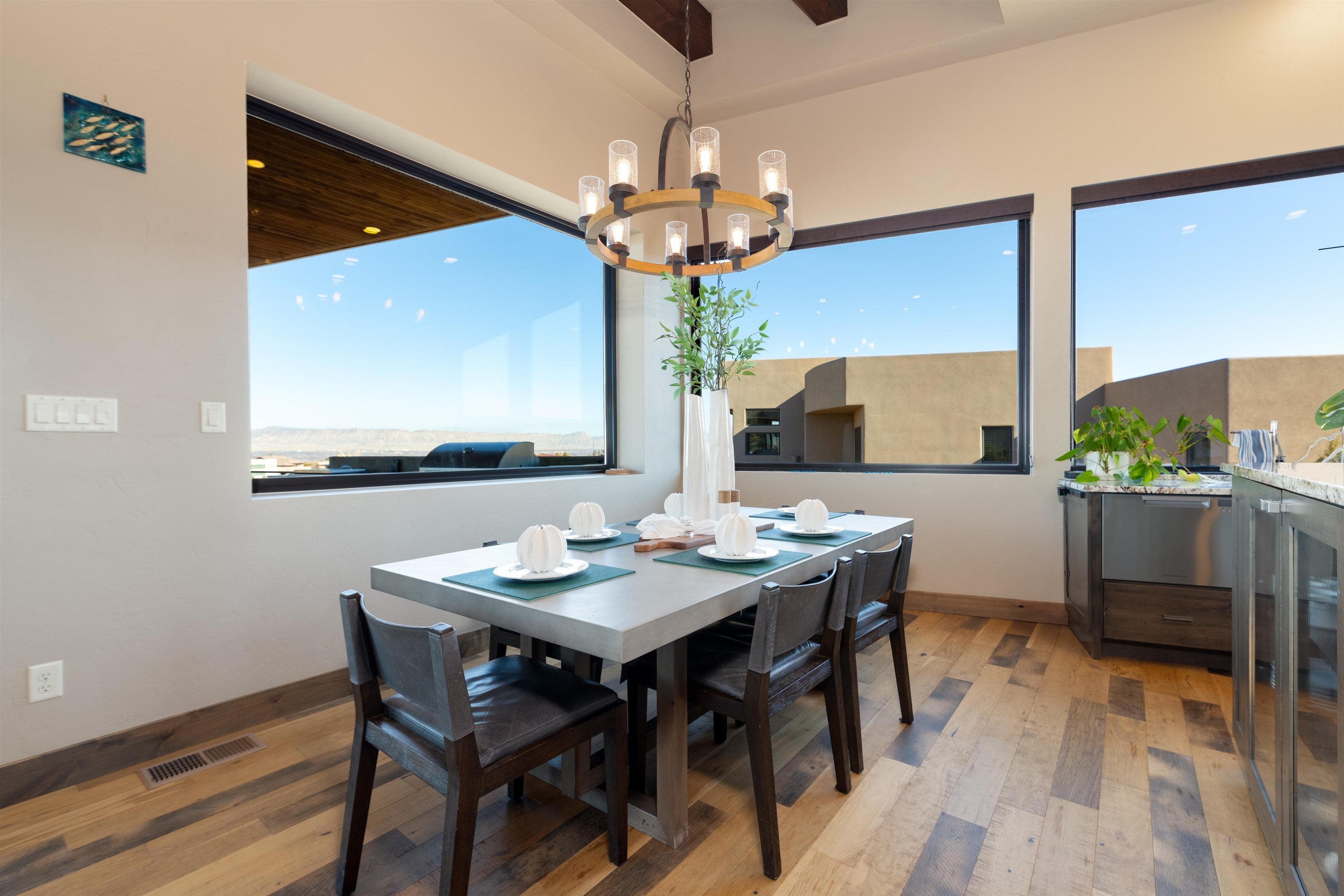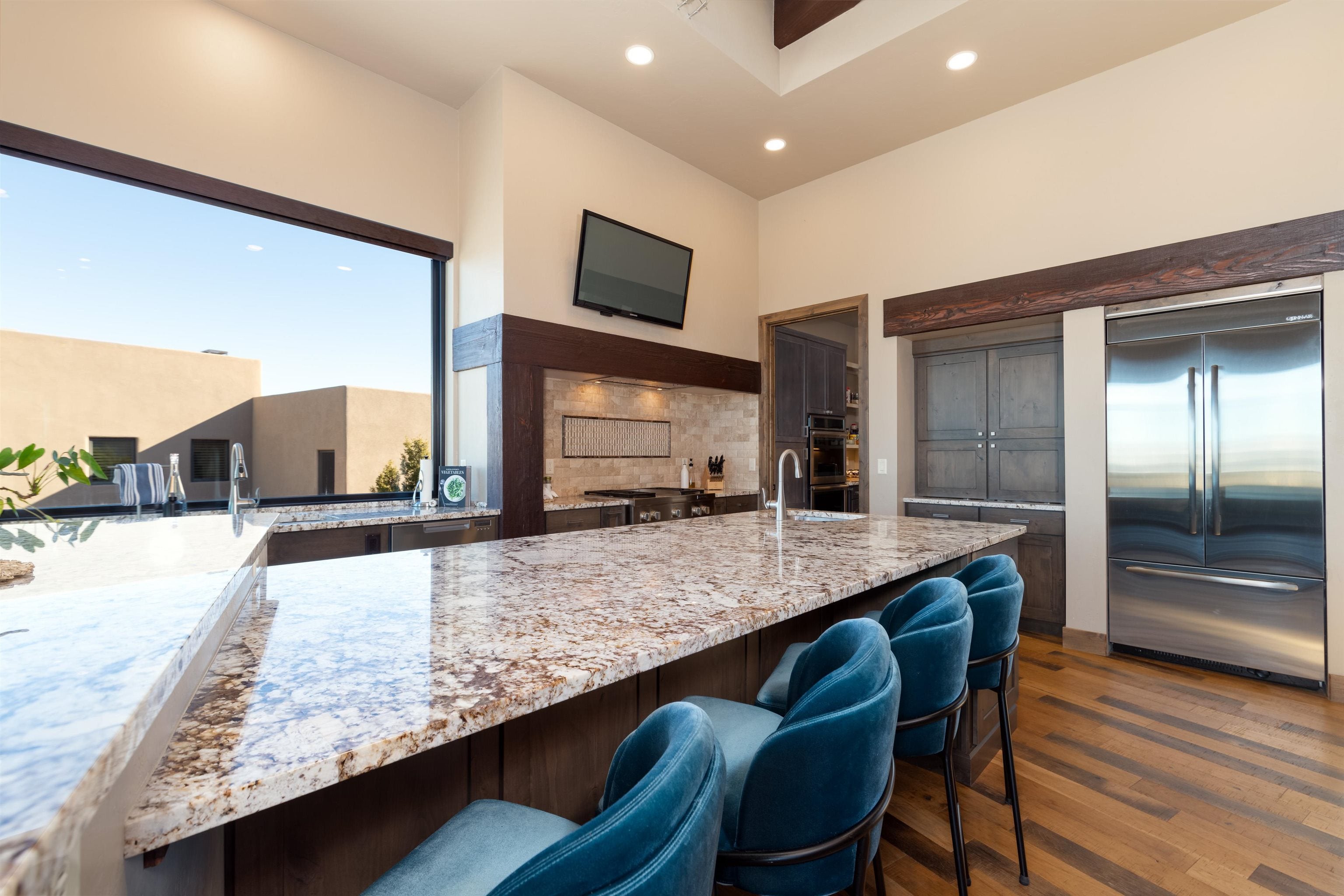 Dardini Designs presents a true showpiece in the prestigious, guard-gated community of Cimarron Hills in McDowell Mountain Ranch, and this extraordinary luxury remodel is a one-of-a-kind masterpiece. Every inch of the home has been thoughtfully transformed with elevated design and rare materials sourced from around the world. Over 100,000 in precious stone slabs sourced from around the world anchors the homes breathtaking aesthetic, highlighted by three dramatic floor-to-ceiling fireplaces that serve as stunning focal points throughout the property. Rich Alder doors and trim imported from New Zealand add warmth and sophistication to every space, while the backlit drop ceilings & custom switch glass front door set the tone for the remarkable craftsmanship within. Upon entry, the grand living room immediately captivates with a striking green quartzite fireplace sourced from Brazil, soaring ceilings, and a 22-foot triple-panel sliding glass wall that seamlessly connects the indoor living space to the backyard. A 160-bottle temperature-controlled wine display with custom iron doors adds both function and elegance. The designer kitchen is equally impressive, featuring Cristallo backlit waterfall island countertops and a Green Canyon backsplash, both sourced from Brazil. A Sub-Zero refrigerator and a bi-fold serving window create the perfect environment for entertaining while enjoying the Arizona desert breeze. The primary suite continues the homes statement design with a floor-to-ceiling Magblanc fireplace from Brazil. The spa-inspired primary bath is a true work of art featuring mosaic tile flooring, striking Panda slabs from China, a switch glass privacy window by the soaking tub, and a stunning 360-degree glass wardrobe closet that delivers a boutique luxury experience. Step outside to a beautifully redesigned backyard retreat featuring a heated pool and spa, brand new turf, and a custom outdoor kitchen with Green Canyon countertops that perfectly tie the exterior entertaining space to the homes signature stone design. This remarkable residence is more than a home. It is a statement piece and a rare opportunity to own what may be the most stunning property in all of McDowell Mountain Ranch. Welcome to The Emerald!