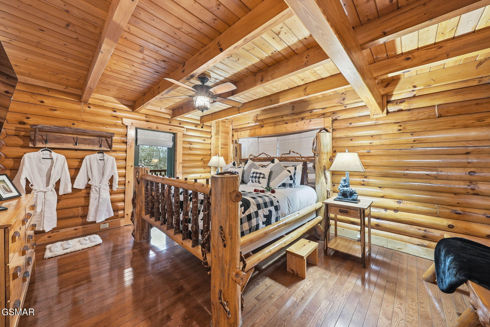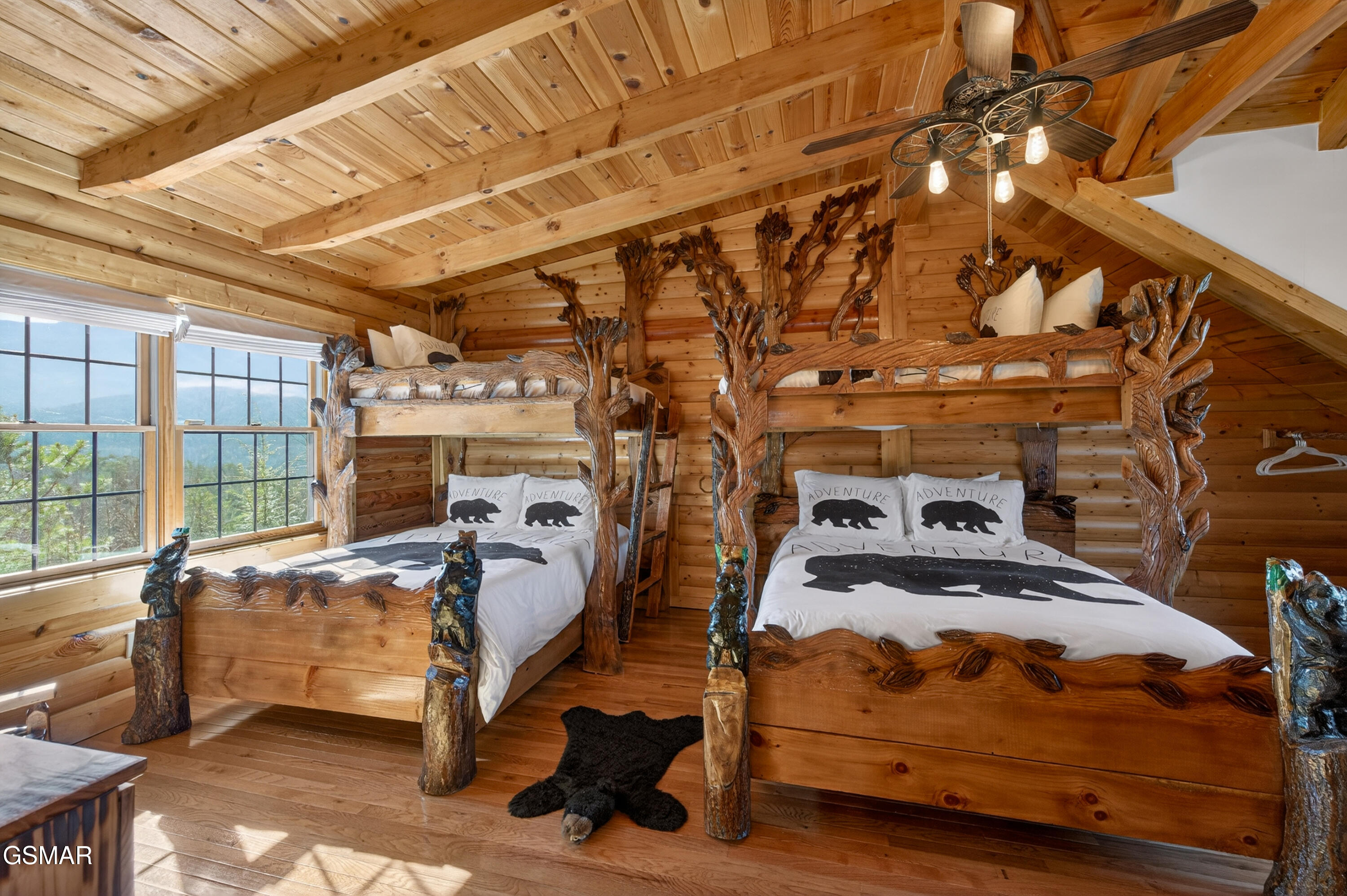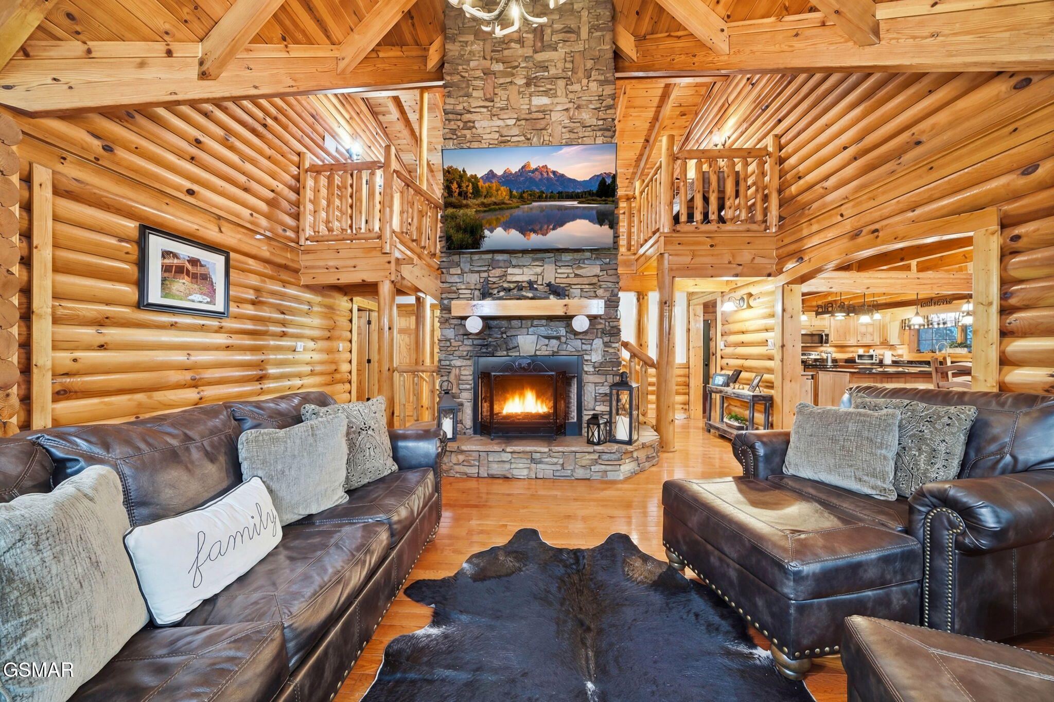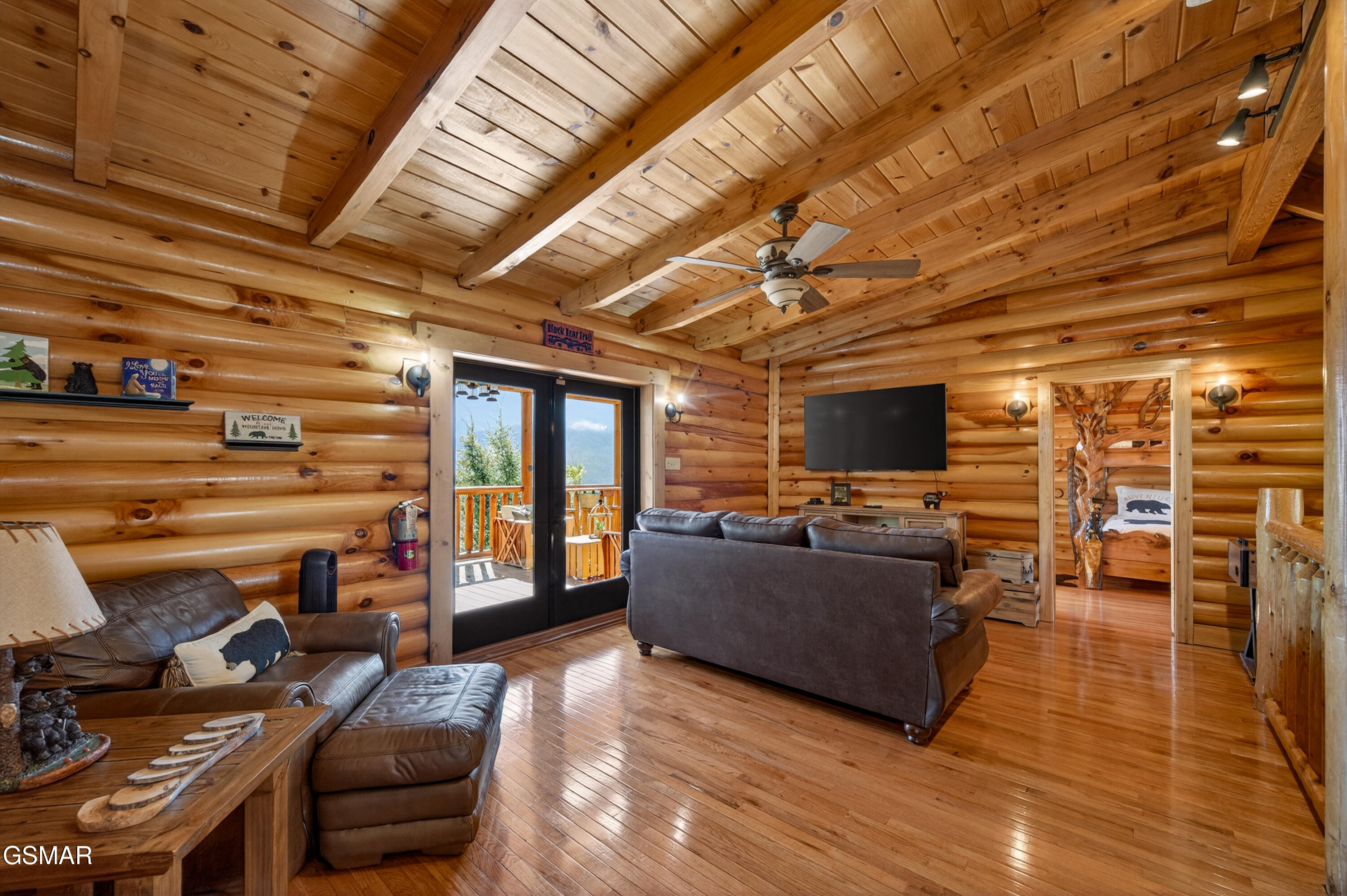 Tucked away in the sought-after Cobbly Nob community, this magnificent log cabin offers over 4,200 square feet of mountain luxury with jaw-dropping Smoky Mountain views and just minutes separating you from downtown Gatlinburg and the National Park. This cabin delivers on every front, with a private setting that guests and owners alike will fall in love with. The main level greets you with a generous living room anchored by a cozy fireplace, an open kitchen and dining combo, and a large primary suite with a private bath that features a unique mountain stone shower with a deep soaking tub. Head upstairs and youll find two additional spacious bedrooms, a full bath, and a large open loft-perfect for gathering or unwinding after a day on the trails. The lower level takes entertaining to another level entirely, featuring a massive recreation room, a dedicated media and theater room, a third full bath, a bonus room, and plenty of storage space. Three levels of deck and balcony space mean youre never far from those sweeping mountain views, whether youre sipping coffee on the wraparound main-level porch, unwinding on one of the upper loft balconies, or soaking in the hot tub. Cobbly Nobb fronts the beautiful and challenging Bent Creek Golf Course, features 24 house security, along with pools and tennis courts for owners and guests. Its super close to several trial heads in the park, and there is easy backdoor access to I40 in Newport, avoiding tourist traffic. Luxury, space, privacy, and location -- this cabin has it all. There are so many cool details, you have to see it for yourself. Dont let this one slip away!