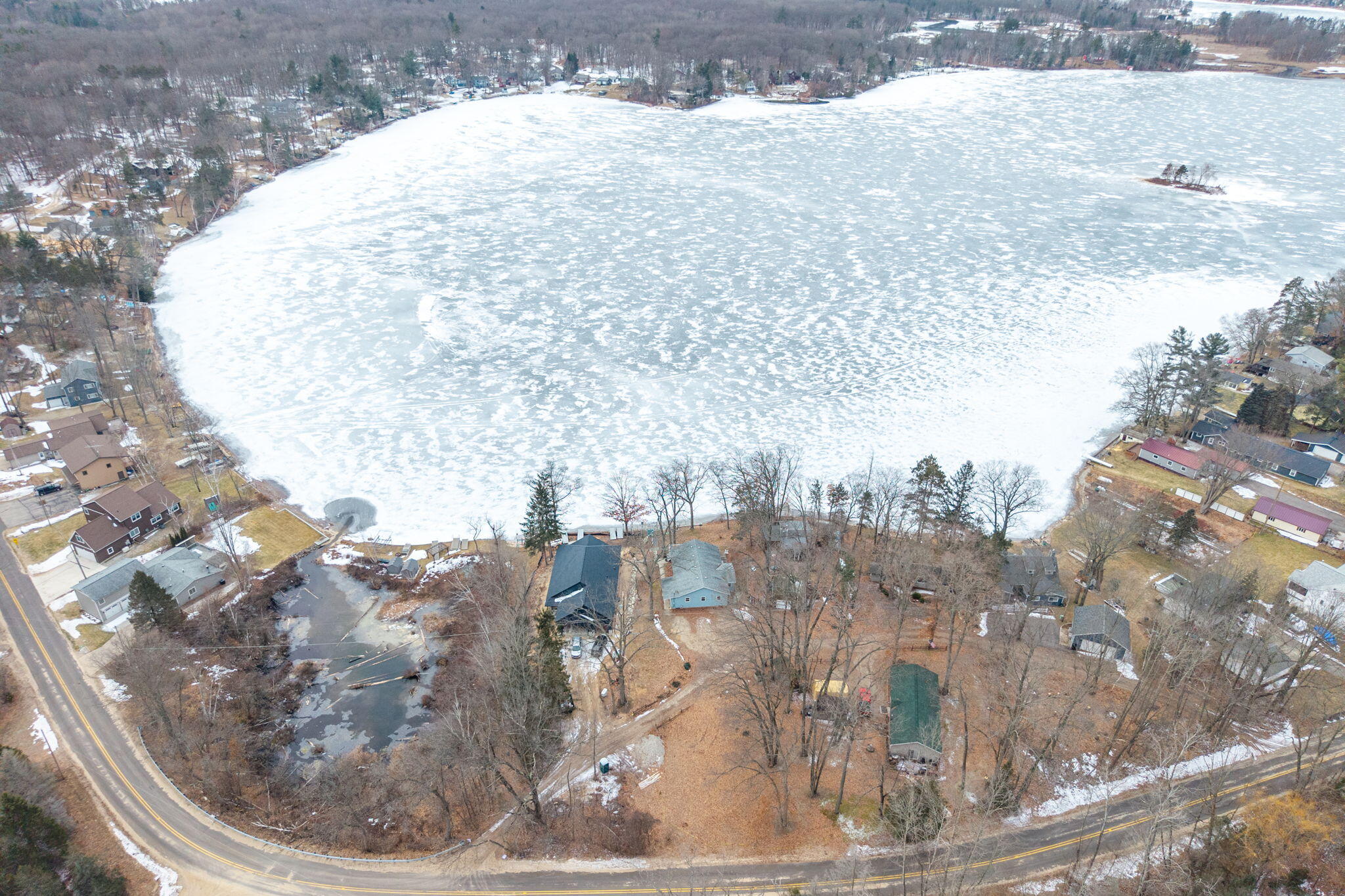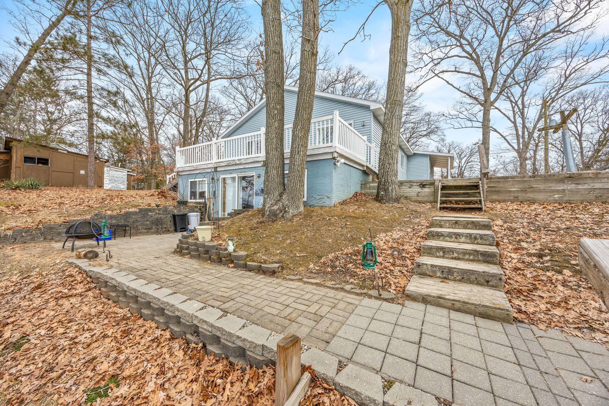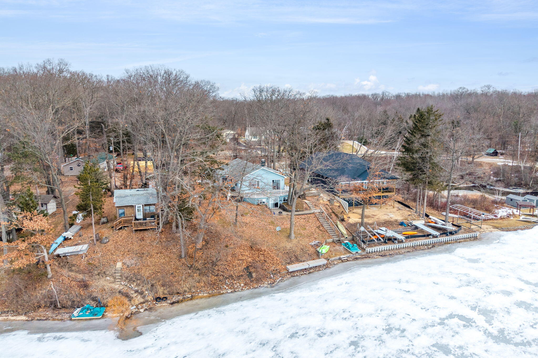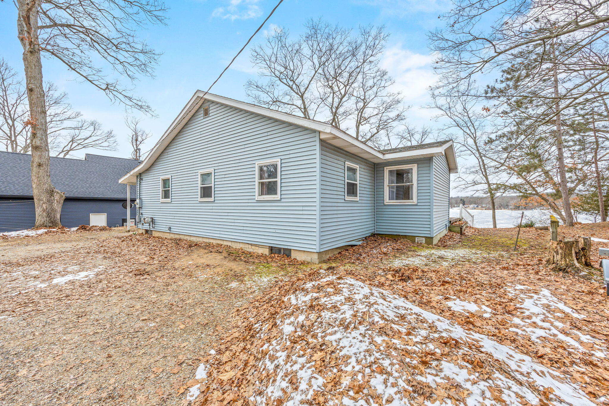 Highly sought-after home on Blue Lake, part of the incredible Tri Lakes waterway system! This older, thoughtfully updated home features warm knotty pine finishes and an inviting great room area designed to capture the stunning panoramic water views. Enjoy your morning coffee or evening sunsets from the spacious deck, all set within a peaceful wooded setting.