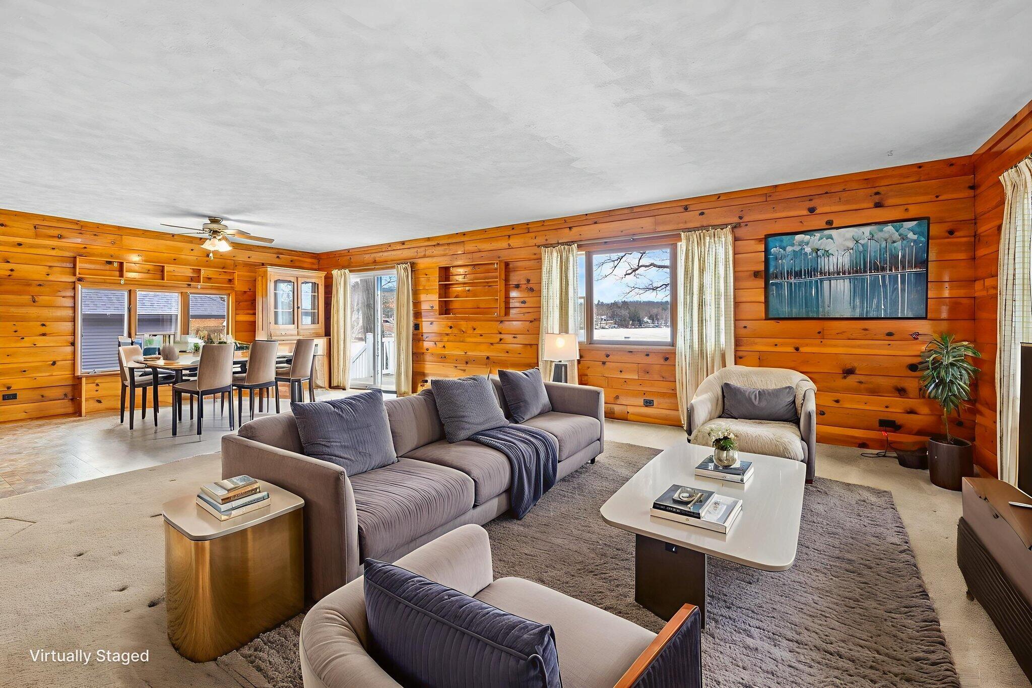 Highly sought-after home on Blue Lake, part of the incredible Tri Lakes waterway system! This older, thoughtfully updated home features warm knotty pine finishes and an inviting great room area designed to capture the stunning panoramic water views. Enjoy your morning coffee or evening sunsets from the spacious deck, all set within a peaceful wooded setting. The property includes an adjoining vacant lot across the street, offering additional space and exciting potential for a future garage or expanded storage. The lower level is a walk-out, partially finished, and currently includes a rented living area -- providing income opportunity or flexible living options. Opportunities are limited for southern-facing properties like this on Blue Lake. Dont miss your chance to own a slice of waterfront paradise -- call today