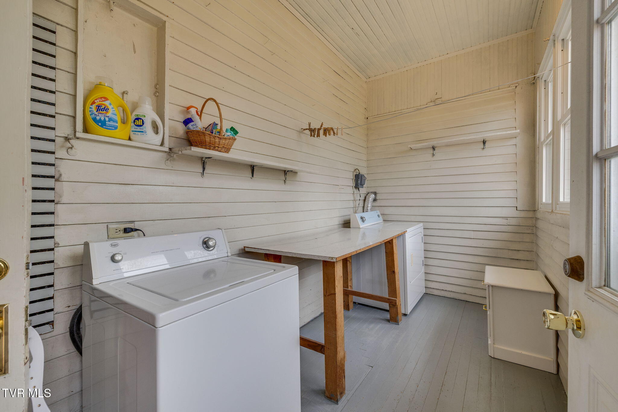 CHARMING TREE STREETS BUNGALOW A BLOCK FROM ETSU AND SHORT WALK TO WEST WALNUT STREET AND DOWNTOWN! This well-maintained 4 BR / 2 BA home has plenty of historic charm with tall baseboards, wide window and door trim, wainscoting, a claw foot tub, a built-in butlers pantry / china cabinet, hardwood floors throughout, and tall ceilings on the first floor. There are plenty of closets, some are walk-in, which is unusual for a home of this period. The first floor features a spacious living room with fireplace, large dining room adjacent to the kitchen with island and breakfast bar, which is beside a convenient laundry room / utility room. The main level also has a bedroom with en-suite bath that is currently used as a den / play room. Upstairs there are three good-sized bedrooms with adequate closets, a full bath, and pull-down stairs with attic storage. Just outside is a nice deck overlooking a fenced-in level backyard. An added bonus with this home is a one-car garage, needing some TLC, that is great for storage. All information has been taken from third party sources and is deemed reliable but not guaranteed; buyer and / or buyers agent should verify. This fantastic brick bungalow has so much to offer, schedule a showing today!