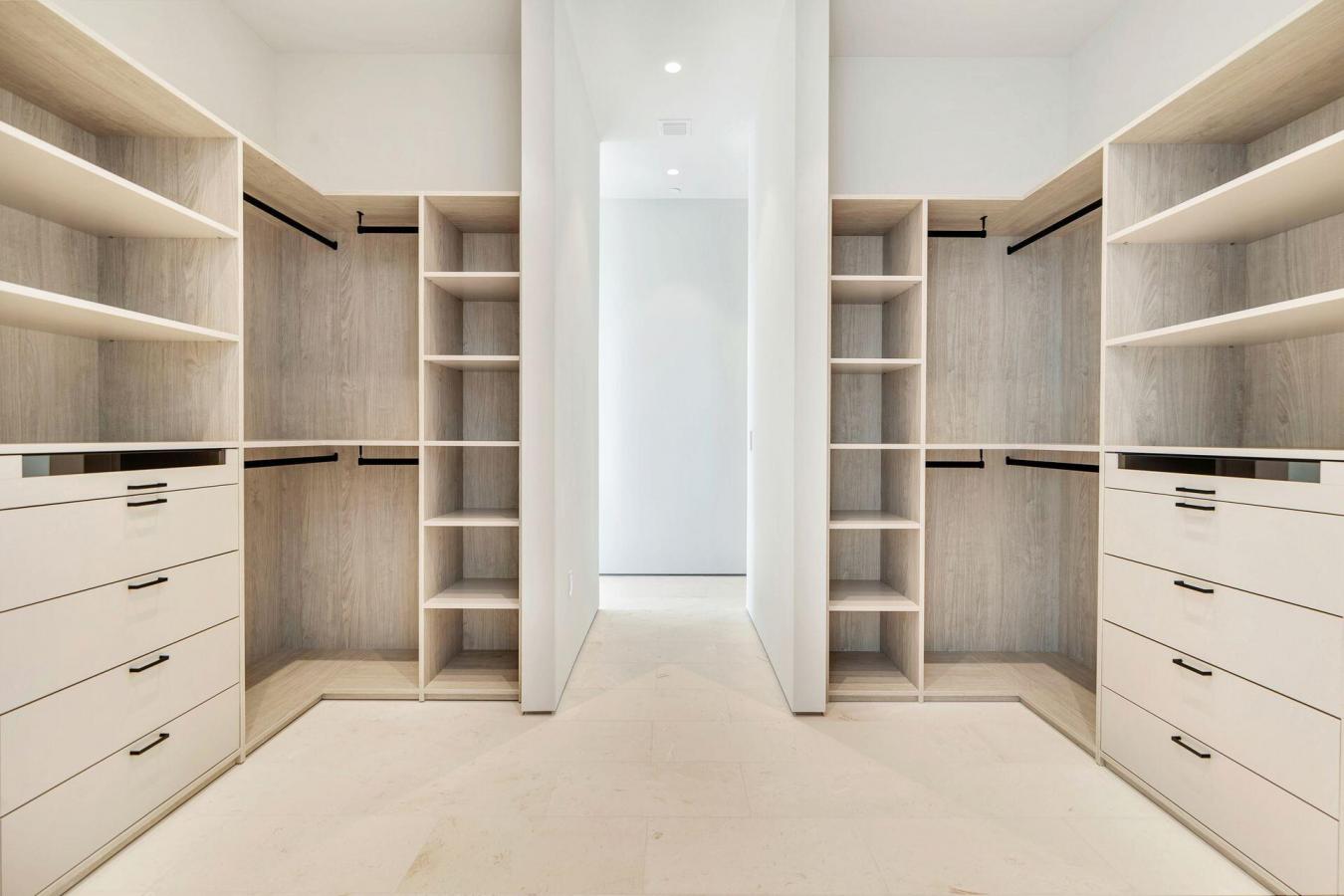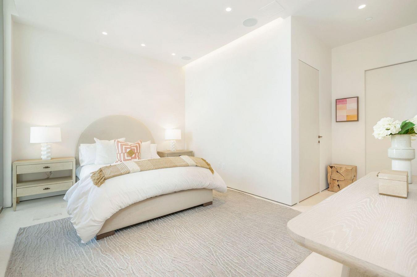 As likely anticipated, the second level master suite is suitable for royalty with separate his and hers bathrooms, closets, and offices. The sleeping quarters include gorgeous bay views along with a private columned balcony. Artist Jody Matokovich hand painted the Groin Vault on the ceiling of the bedroom with a style influenced by the frescos of the Renaissance. Each master bathroom offers heated floors and double showers with jets while one is centered around a stunning free-standing bathtub. In addition, the suite includes an exercise room with sauna and a vault plus safe room with ventilation.