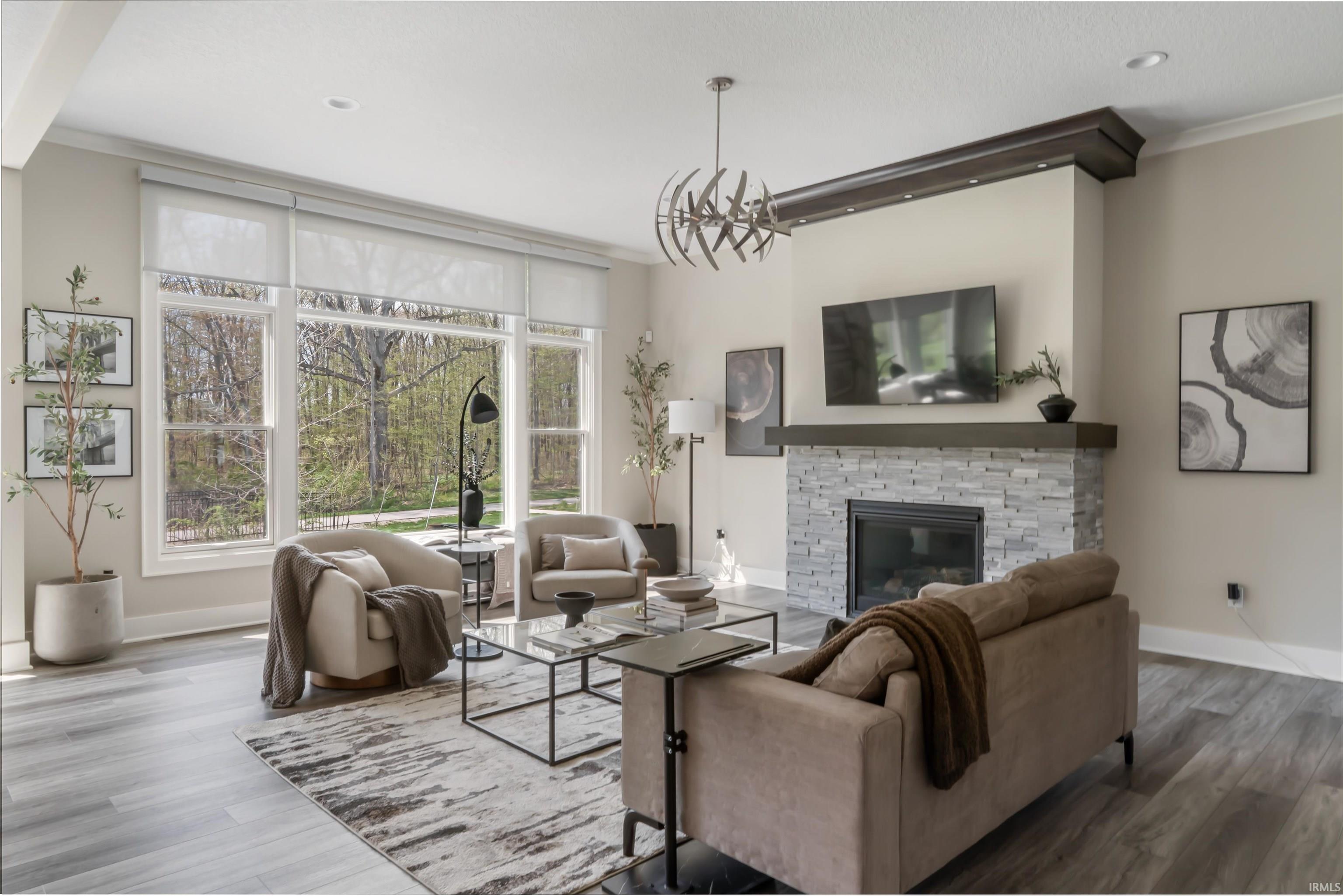 Open House Friday May 1st 5-7pm Modern designWooded backdrop. A home that lives as well as it looks. Positioned in one of NWAC most sought after communities, this custom Bob Buescher home blends modern Prairie architecture with refined finishes & an elevated everyday experience. This is a home that does not whisper luxury, it exudes it. The exterior sets the tone with high end Hardie board siding, real stack stone, extended soffits, & upgraded modern front & garage doors, creating a clean architectural presence with lasting quality. Set against a natural wooded backdrop, the homesite offers a sense of openness while remaining grounded in its surroundings, aligned with the walkable and quietly active lifestyle Whisper Rock is known for. Inside, the main living area is both dramatic & inviting, anchored by a wraparound stack stone fireplace, ten foot ceilings, oversized windows, and continuous luxury flooring throughout. The kitchen is designed for both daily living and entertaining with custom Zehr cabinetry, an oversized island with storage on multiple sides, hidden appliance garage, granite countertops, designer backsplash, & a walk in pantry. The main level primary suite offers a refined retreat with its own fireplace and a spa inspired bath featuring dual vanities, custom storage, & a spacious tiled shower with rain shower head. A sunlit flex space off the dining area provides versatility for a home office, lounge, or additional living area. Upstairs includes three generously sized bedrooms & a full bath, while the finished lower level offers a large recreation space, full bath, & room to expand further. Outdoor living is thoughtfully designed with distinct zones including a dedicated fire pit area, dining space, and a private sitting retreat, all surrounded by over twenty thousand dollars in professional landscaping that complements the natural setting. Additional features include no carpet throughout, upgraded windows, custom closets, built in security, dedicated laundry, & an oversized three car garage. Ideally located just 5 minutes from highway access, approximately 10 minutes from two of the regions largest medical hubs, and within minutes of major gyms, parks, boutique dining, & grocery options, this location delivers both convenience & lifestyle. A home that feels proper in every sense, where design, setting, & everyday livability come together seamlessly, with a level of finish that would cost significantly more to build today,