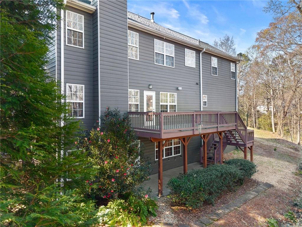 Discover the perfect blend of lake-life convenience, neighborhood charm, and timeless architectural details in this beautifully situated brick-front home on aquiet cul-de-sac in the River Falls community near Lake Lanier. A welcoming covered front porch with custom double entry doors sets the tone, inviting youinto a warm and thoughtfully designed interior.Crafted with both comfort and functionality in mind, the main level features elegant crown molding and an open-concept layout that flows effortlessly from thebright kitchen into the grand two-story family room. Here, a stunning stack-stone fireplace climbs all the way to the ceiling, creating a striking focal point forgatherings. A spacious dining room with tray ceilings offers the perfect setting for hosting family dinners or holidays.The large master suite continues the theme of comfort, showcasing tray ceilings and a generous master bathroom complete with double vanity sinks, aseparate shower, and a relaxing soaking tub.Outdoor enthusiasts will love the extra-deep double garage—large enough to securely store a 21-foot trailered boat in a temperature-controlled,weatherproof environment. Load and unload your gear with ease, then enjoy a quick 10-minute drive to the public boat ramp. After a day on the water, simplyback into the garage and leave everything in place, ready for your next adventure. There's still plenty of room for your vehicle and additional storage. Evenmore recreation awaits just a 15-minute bike ride away at Lake Lanier Beach Park and Fishing Pier, a beautiful Army Corps of Engineers park featuringdeep, clear water near Buford Dam, marked swimming areas, restrooms, and picnic spaces.The finished basement expands your living and entertaining possibilities with a stylish bar area, additional living space, and abundant storage options. Stepoutside to a private backyard retreat featuring an upper deck and landscaped lower patio area—perfect for peaceful mornings, grilling, or relaxing withfriends while enjoying wooded privacy.Located in a quiet, established 130-home neighborhood with a single entrance, River Falls offers exceptional privacy, security, and enduring communitycharm. Neighborhood highlights include a five-lane swimming pool (resurfaced in Fall 2025), two lighted tennis courts with pickleball striping, a welcomingcabana with fireplace and bathrooms, professional landscaping of all common areas, and a well-managed POA that protects property values and upholdshigh community standards. Its ideal location between GA-400 and I-985 ensures easy commuting and quick access to shopping, dining, and schools.Enjoy the best of lake living, outdoor recreation, generous indoor and outdoor spaces, and top-tier neighborhood amenities—all right at your doorstep.