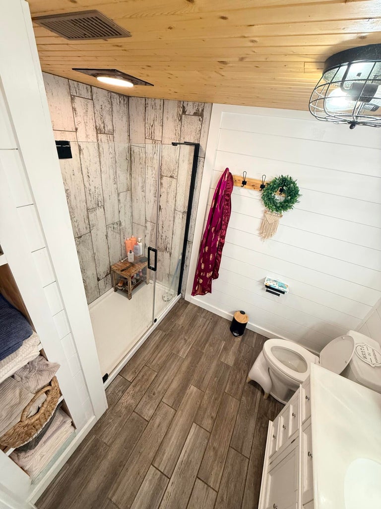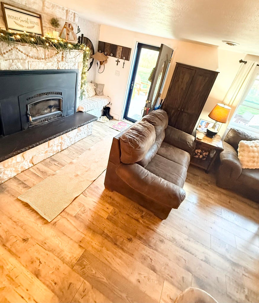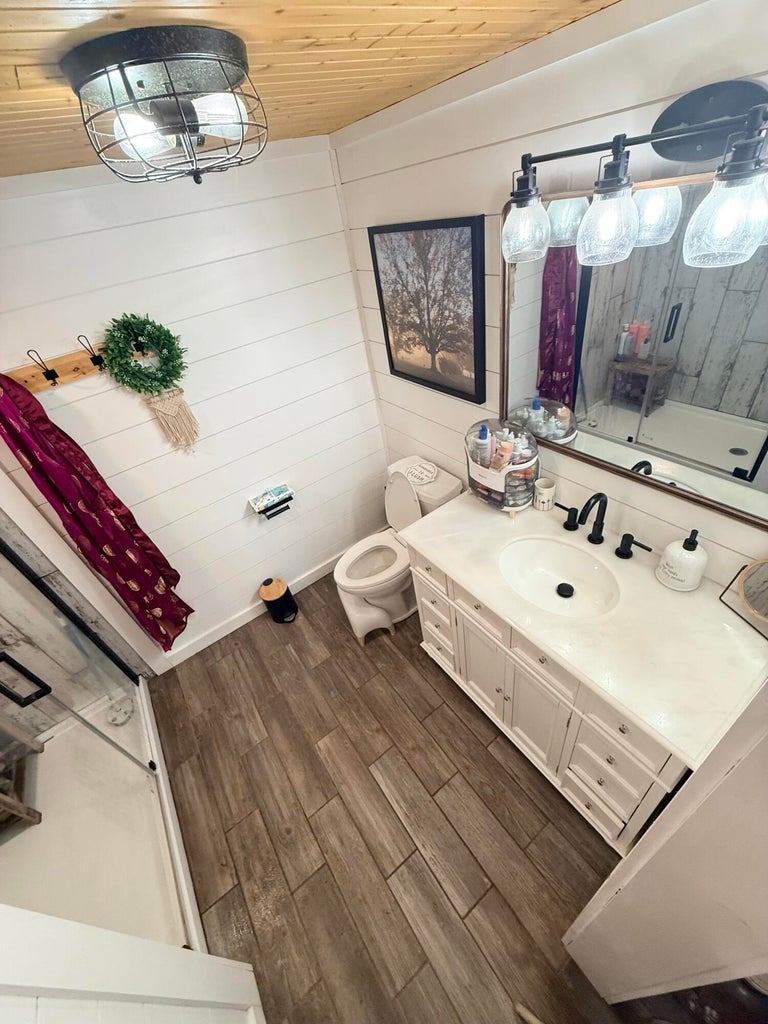 Welcome to this beautifully updated and totally remodeled (just like brand new) modern farmhouse tucked along the quiet countryside of Rutherfordton. From the moment you arrive, youll be captivated by the charm of the covered wraparound porch, the rich cedar-tone finishes, and the crisp contrast of dark board-and-batten siding with bright white trim.