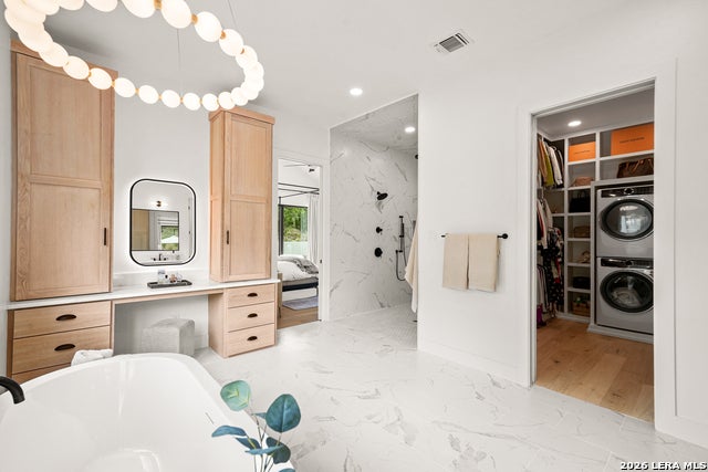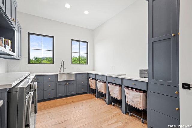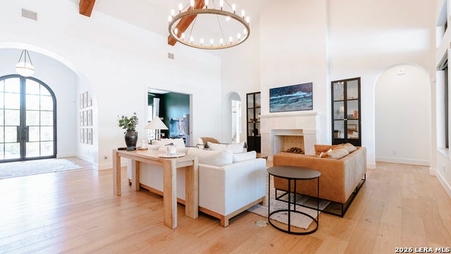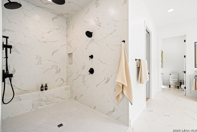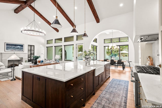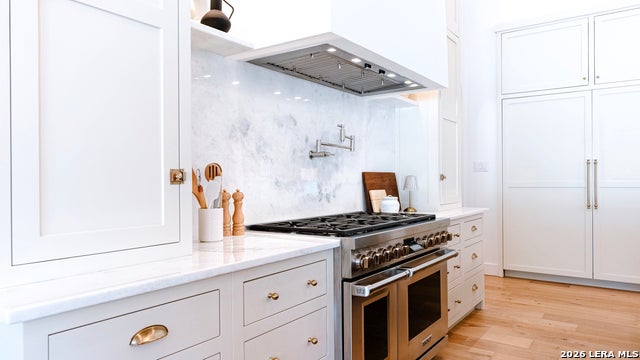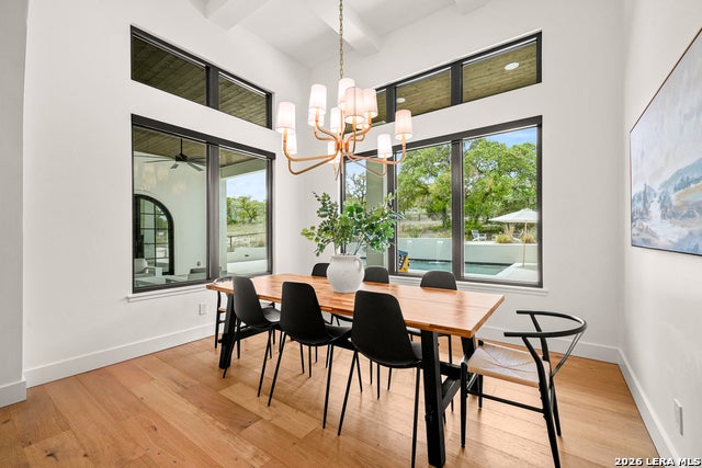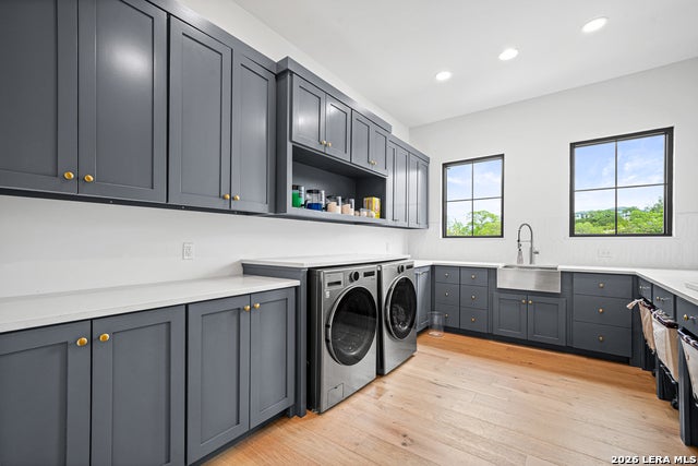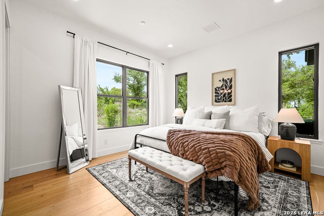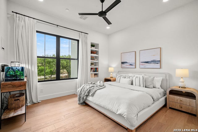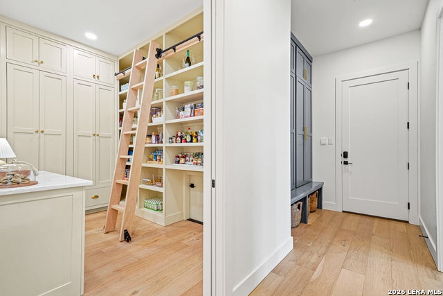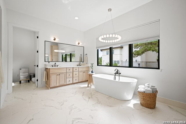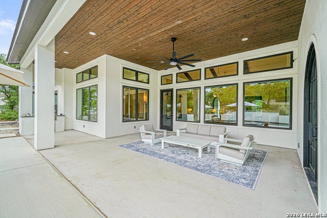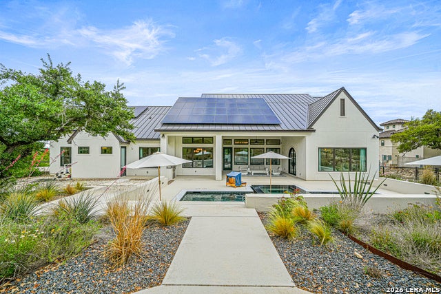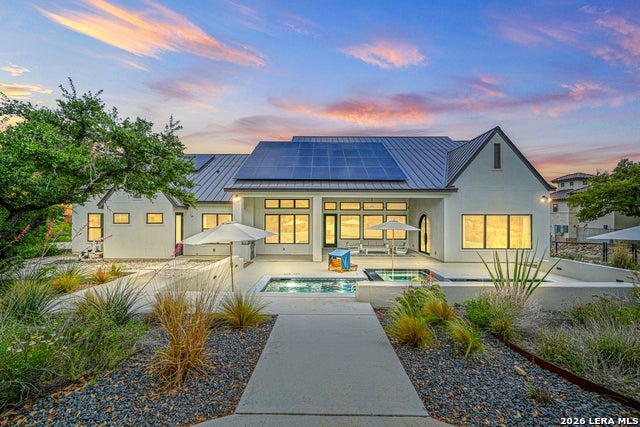Tucked into the prestigious gated (and soon to be guarded) Pecan Springs community in Boerne, this exceptional modern European estate blends refined luxury with thoughtful, everyday functionality. Set atop a gentle hill with no rear neighbors, the home captures the serenity of Hill Country living while remaining just minutes from the charm of downtown Boerne and the premier shopping and dining destinations at La Cantera and The Rim. Designed for both elevated entertaining and comfortable living, this five-bedroom, five-bathroom residence showcases an expansive open layout anchored by an oversized island that is perfect for hosting. The chefs kitchen is outfitted with a built-in Sub-Zero 36 refrigerator and 36 freezer, a Wolf 48 double oven and range, plus an additional oven in the show-stopping butlers pantry which wouldnt be complete without a convenient Costco door from the garage for effortless stocking. The butlers pantry is truly a dream space, complemented by an oversized laundry room and an additional washer and dryer tucked within the luxurious primary suite closet. The serene primary retreat features a spa-like bath with a freestanding soaking tub, oversized walk-in shower, and private patio access for peaceful mornings or evenings. Flexible living spaces include a bonus room off the main living area, ideal as a home office or playroom, and a custom bunk room with four full-size built-in beds, perfect for guests or family gatherings. Step outside to your private resort-style oasis, where the outdoor living area seamlessly connects to a pool and spa, along with a full bathroom accessible directly from the exterior, perfect for entertaining. Energy-efficient solar panels with battery backup provide peace of mind during outages while helping reduce utility costs. Additional highlights include an oversized three-car garage with epoxy floors, abundant storage, and a tankless water heater. Residents of Pecan Springs enjoy scenic walking trails, with the neighborhood proudly selected to host the 2027 San Antonio Builders Parade of Homes. This is Hill Country luxury redefined, where elegance, innovation, and comfort meet in one extraordinary home.