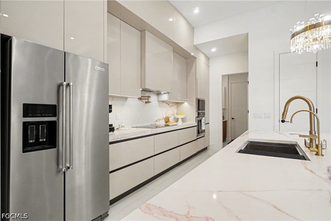 Indulge in a level of refinement rarely seen, where modern elegance meets effortless waterfront living. This extraordinary 5-bedroom, 5-bathroom residence spans over 3,000 square feet of impeccably curated designcrafted for those who expect nothing less than exceptional.Every detail has been intentionally elevated. Each bedroom is a private sanctuary, complete with its own designer bathroom and custom closet built-in cabinetry illuminated by soft LED lighting, creating an ambiance of understated sophistication throughout.The primary suite is a true statement of indulgence, offering dual walk-in closets, separate spa-inspired vanities, an expansive walk-in shower with dual rainfall heads, and a deep soaking tub designed for complete escape.Expansive living spaces are grounded by striking oversized tile flooring, seamlessly guiding you through an open-concept layout designed to impress. The large 90 degree sliders invite natural light to pour in while blurring the line between indoor luxury and outdoor serenity.Step beyond to your private resort-style retreat. A shimmering pool with a dramatic sunken spa sets the stage for relaxation, while the fully equipped outdoor kitchenfeaturing a built-in grill and beverage fridgecreates the ultimate setting for unforgettable evenings under the Florida sky.For the boating enthusiast, the property delivers an unparalleled waterfront experience with a premium Trex dock & Wrapped Pilings, dual boat lifts (10K & 6K), and an inviting thatched tiki hutperfectly positioned for sunset views and effortless days on the water.A sleek metal roof crowns the home, complementing its modern architectural presence, while a dedicated pool bath adds both convenience and functionality.This is more than a homeit is a lifestyle defined by luxury, privacy, and the art of living beautifully.