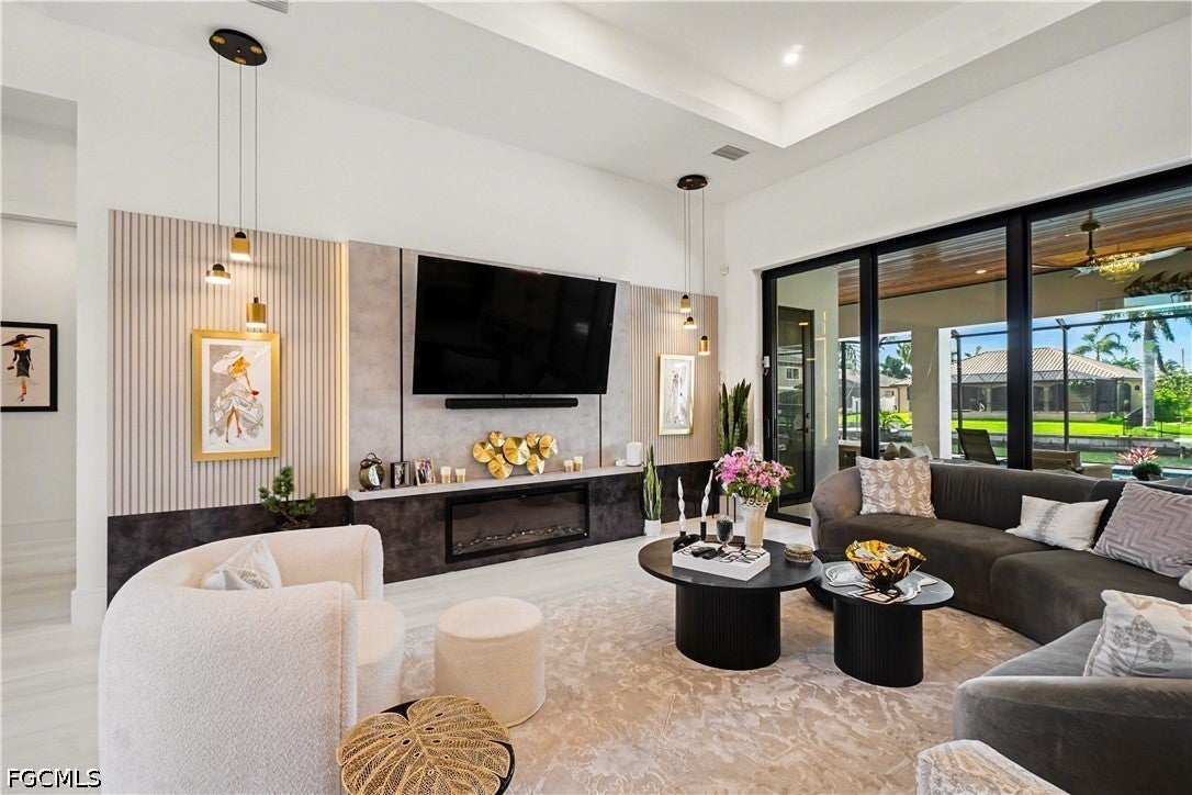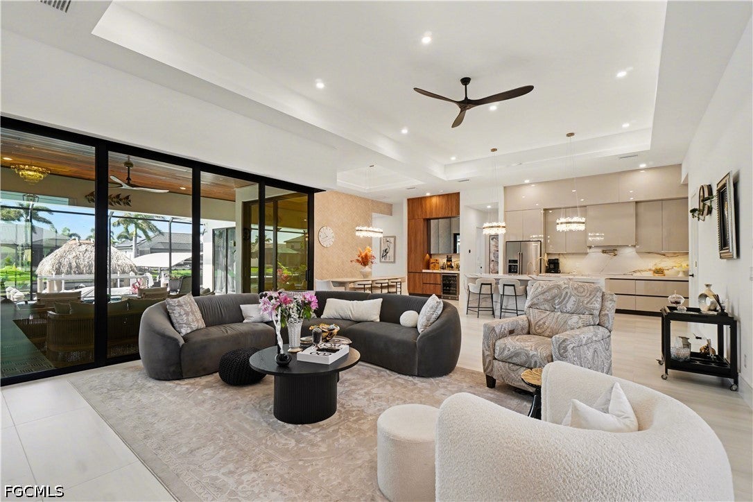Experience the pinnacle of waterfront luxury living in this newly constructed Grand Cayman 2 located on the Bernardo Canal in Cape Coral, Florida. Boasting an unparalleled location on the water, this stunning residence offers exquisite design and high-end finishes throughout. Step inside and be greeted by an open concept living space, highlighted by soaring ceilings and elegant contemporary details. The heart of this home is the expansive living area, where 90-degree pocket sliding doors open to seamlessly blend indoor and outdoor living. Imagine hosting gatherings with friends and family as you enjoy breathtaking views of the water. For those who love outdoor living, the lanai area is a true highlight of the home. Pocketing 90-degree sliding doors open to reveal a vast outdoor space, designed for relaxation and entertaining. The sparkling pool with a built-in spa invites you to bask in the Florida sunshine or enjoy a refreshing dip. The pool area is surrounded by lush landscaping and offers tranquil canal views, creating the perfect outdoor oasis for lounging, dining al fresco, or simply unwinding. With Gulf access from the canal, boating enthusiasts will love the convenience of heading out on the water at a moments notice.