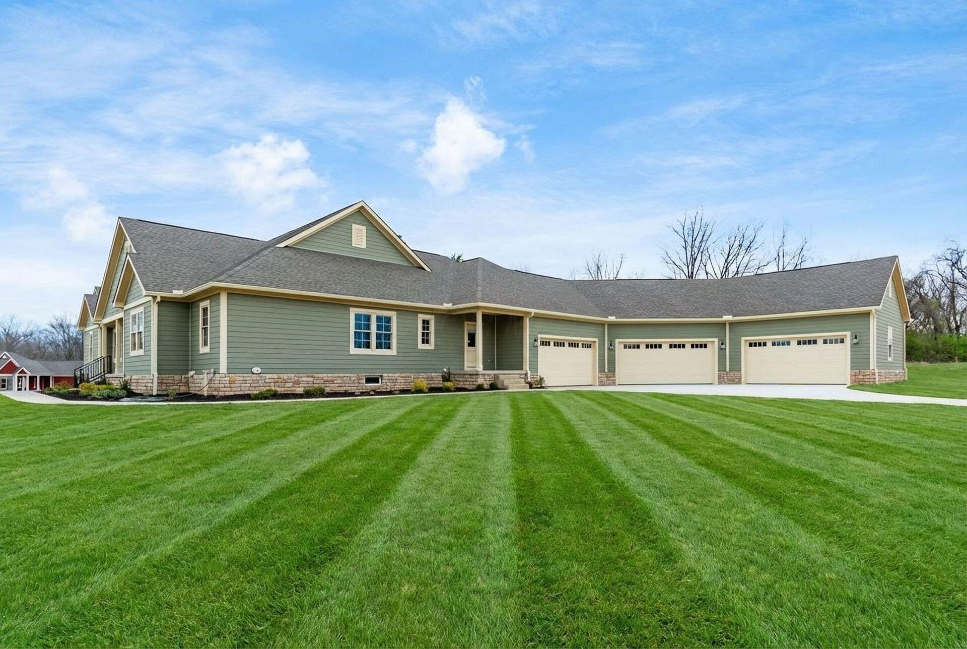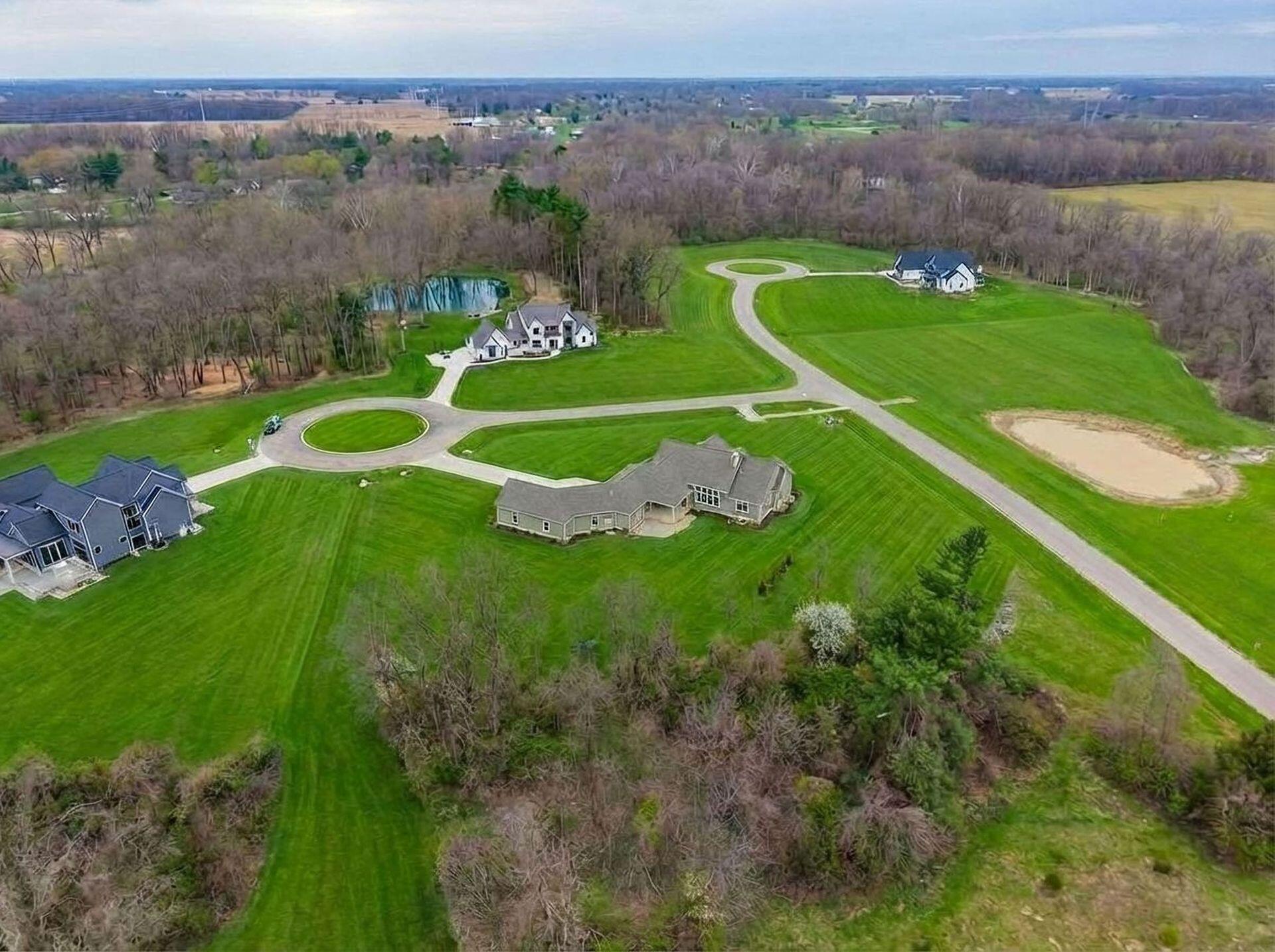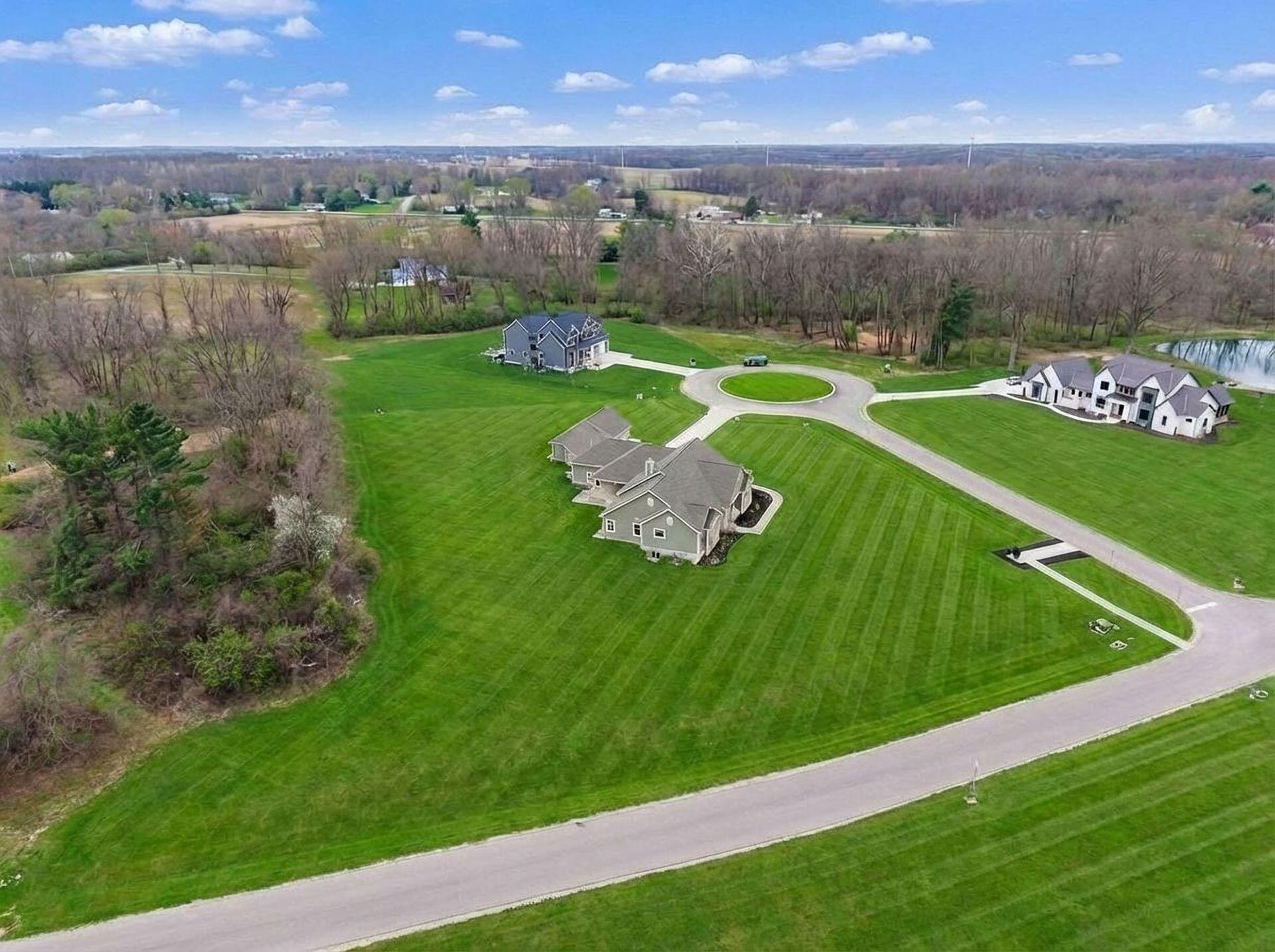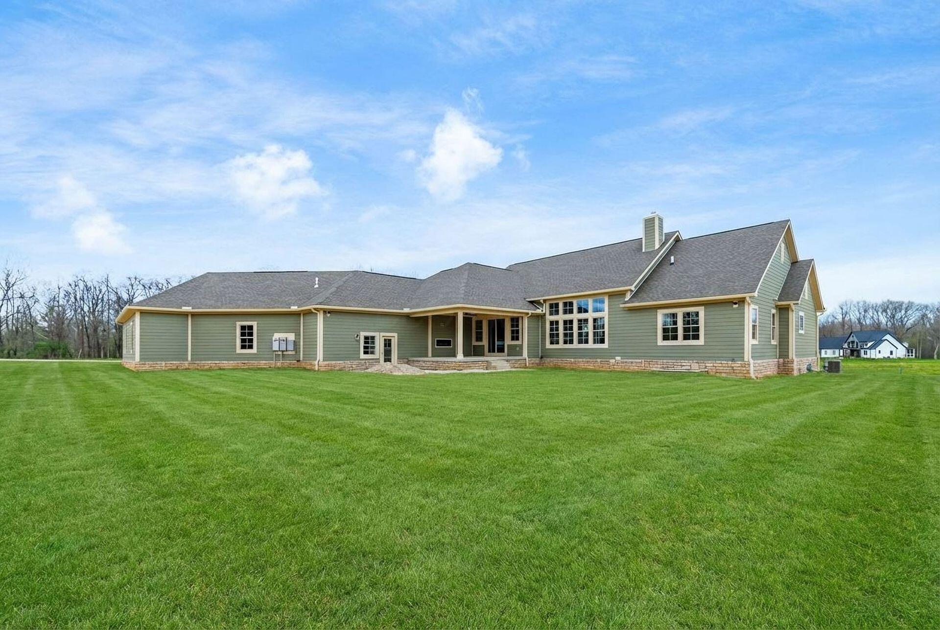Sprawling custom ranch situated on 3 acres, tucked away on a quiet cul-de-sac with unmatched quality throughout. Offering nearly 5,800 square feet of luxurious living space with four bedrooms and five-and-a-half baths. An expansive garage accommodates up to seven vehicles and includes a finished living area with a full bath and direct backyard access--ideal for a future pool house or man cave--along with a heated section perfect for a golf simulator. Garage includes stairwell directly to the basement. The spacious kitchen features custom Amish cabinetry and a large island connecting to the messy kitchen, morning room, and great room. The great room includes a 12-foot beamed ceiling, wall of windows, fireplace, and built-in shelving. Additional highlights on the 1st floor include a formal dining room, den with custom built-ins, laundry and mudroom. Custom woodwork throughout, including all closets. The finished lower level offers a bedroom with full bath, two expansive living spaces with custom built-ins and a kitchen, a den, and a potential exercise room enclosed by glass wall and doors. 2 egress windows in the basement. Enjoy outdoor living on the covered back porch with an electric fireplace. A truly one-of-a-kind property with exceptional workmanship throughout, where no detail has been overlooked.
