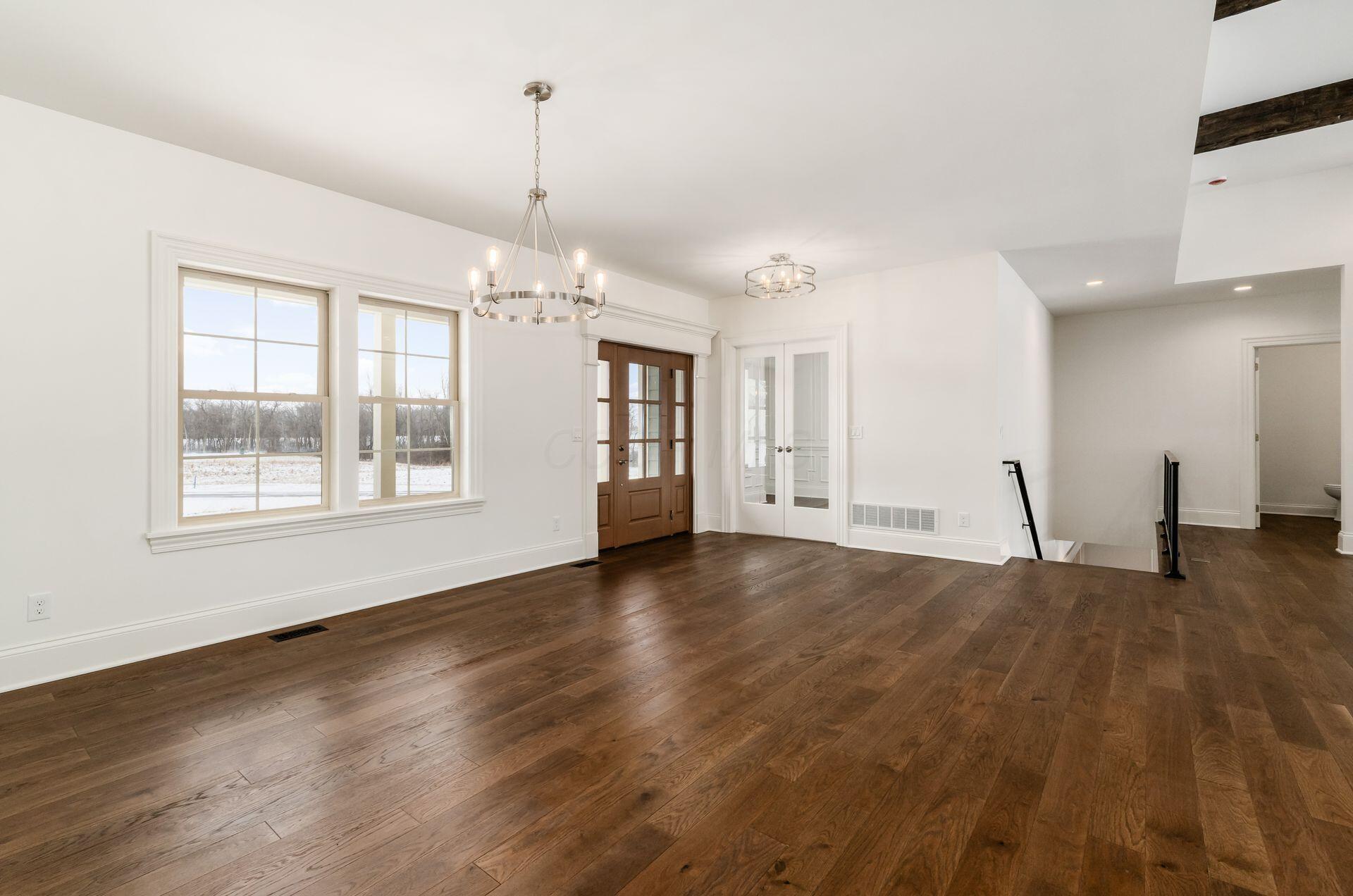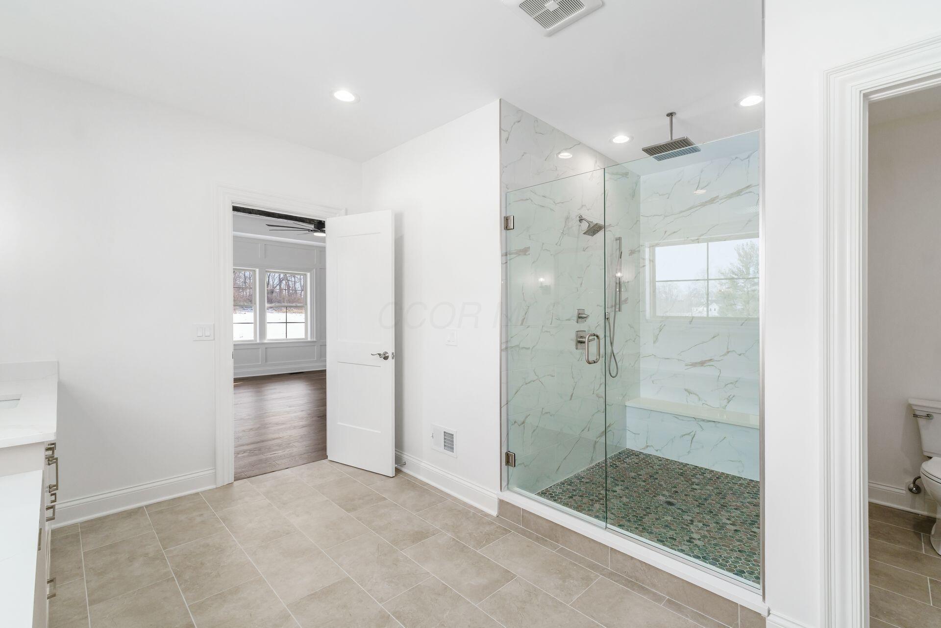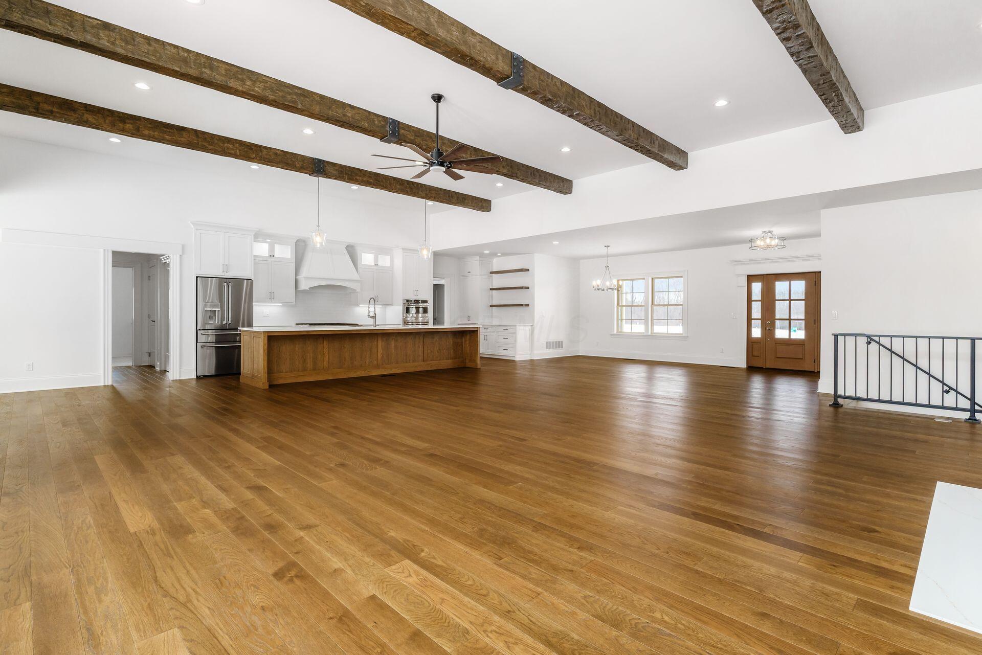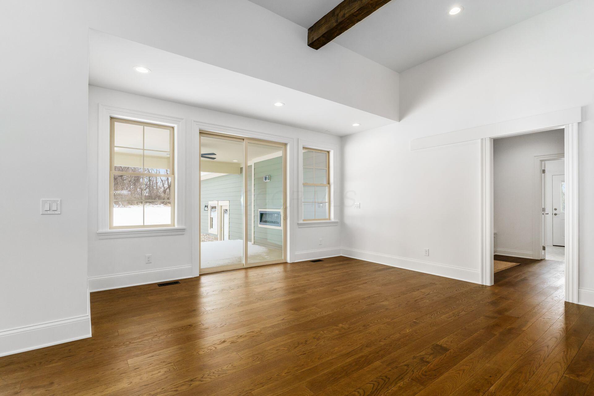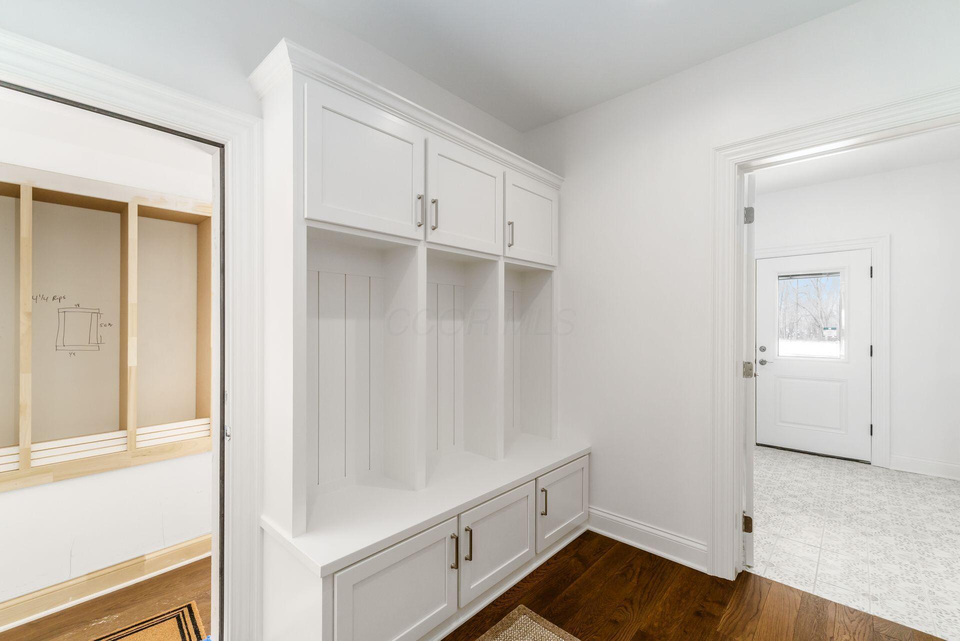 Sprawling custom ranch situated on 3 acres, tucked away on a quiet cul-de-sac with unmatched quality throughout. Offering nearly 5,800 square feet of luxurious living space with four bedrooms and five-and-a-half baths. An expansive garage accommodates up to seven vehicles and includes a finished living area with a full bath and direct backyard access--ideal for a future pool house or man cave--along with a heated section perfect for a golf simulator. Garage includes stairwell directly to the basement. The spacious kitchen features custom Amish cabinetry and a large island connecting to the messy kitchen, morning room, and great room. The great room includes a 12-foot beamed ceiling, wall of windows, fireplace, and built-in shelving. Additional highlights on the 1st floor include a formal dining room, den with custom built-ins, laundry and mudroom. Custom woodwork throughout, including all closets. The finished lower level offers a bedroom with full bath, two expansive living spaces with custom built-ins and a kitchen, a den, and a potential exercise room enclosed by glass wall and doors. 2 egress windows in the basement. Enjoy outdoor living on the covered back porch with an electric fireplace. A truly one-of-a-kind property with exceptional workmanship throughout, where no detail has been overlooked.