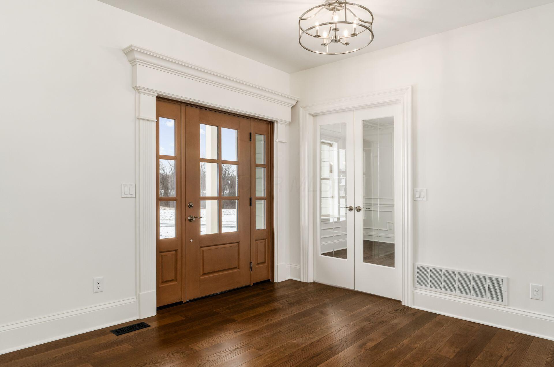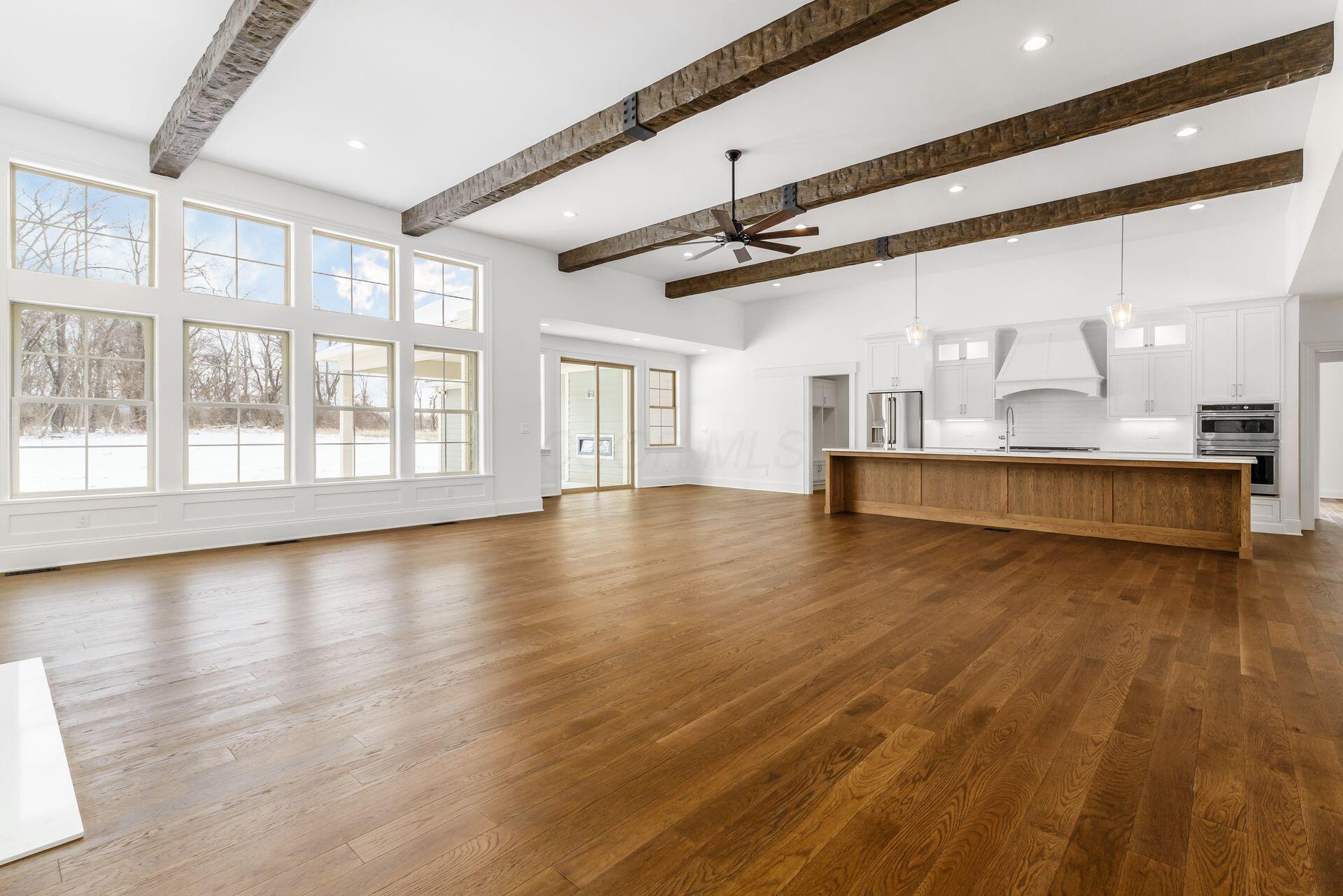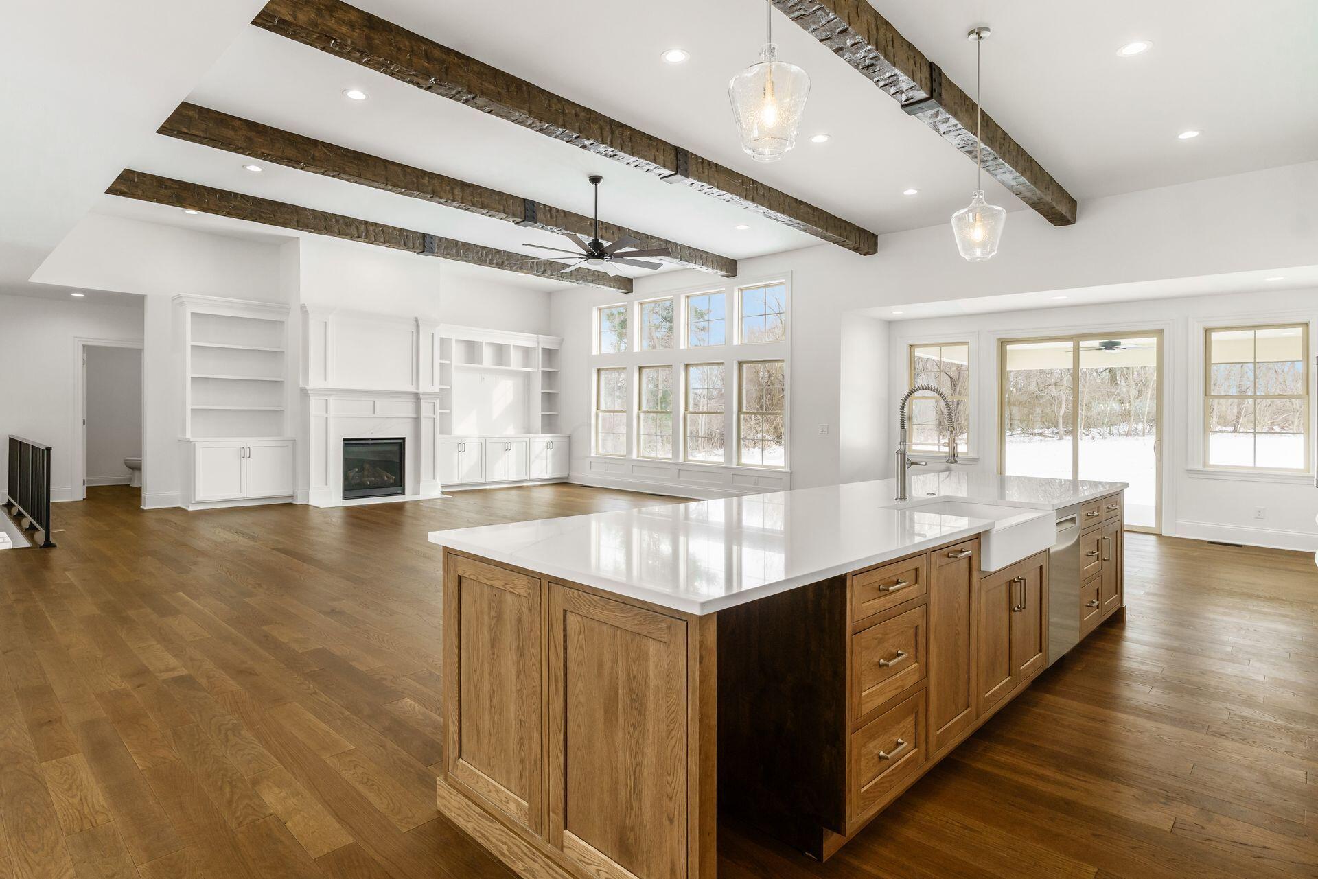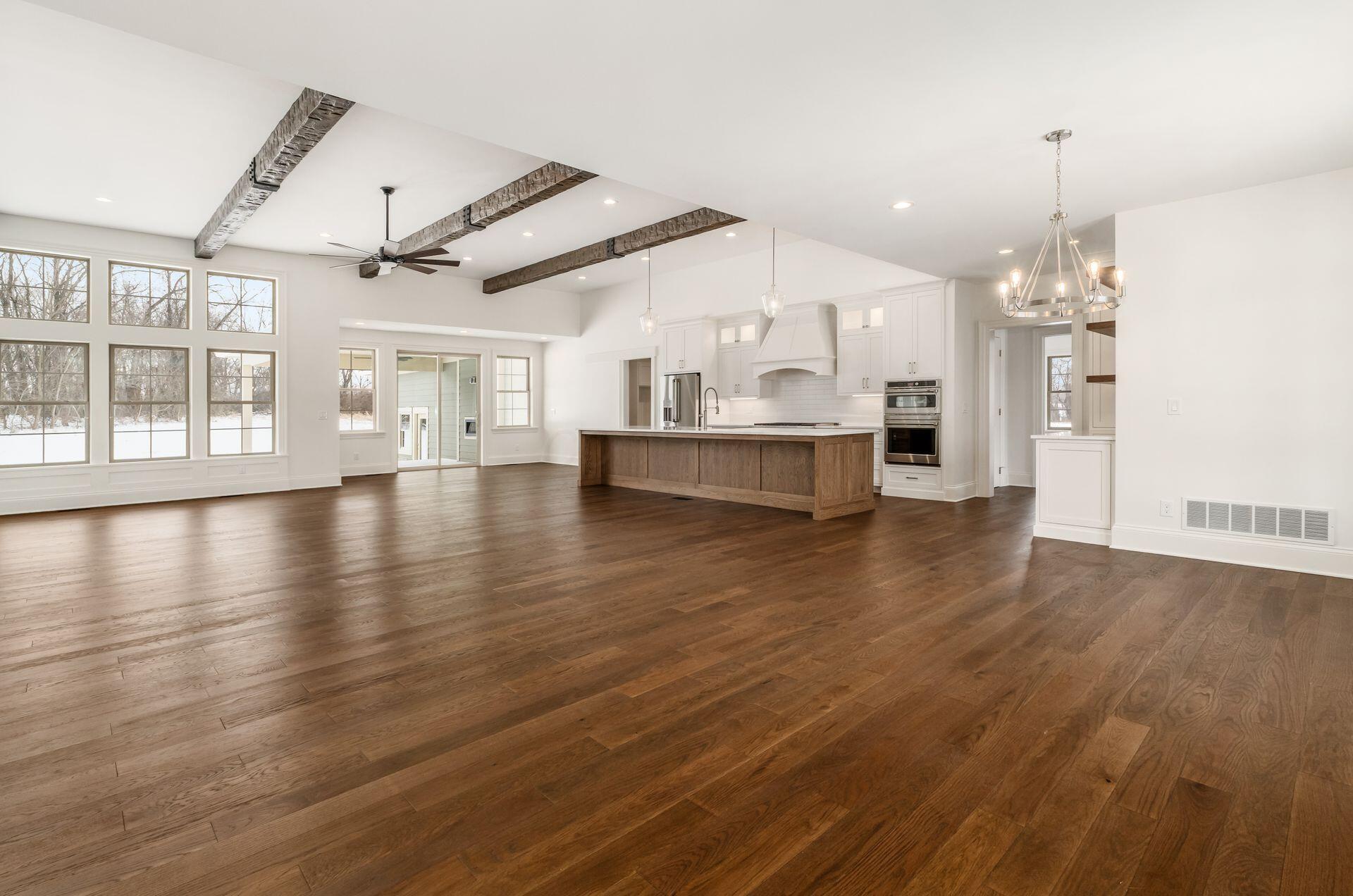 Sprawling custom ranch situated on 3 acres, tucked away on a quiet cul-de-sac with unmatched quality throughout. Offering nearly 5,800 square feet of luxurious living space with four bedrooms and five-and-a-half baths. An expansive garage accommodates up to seven vehicles and includes a finished living area with a full bath and direct backyard access--ideal for a future pool house or man cave--along with a heated section perfect for a golf simulator. Garage includes stairwell directly to the basement. The spacious kitchen features custom Amish cabinetry and a large island connecting to the messy kitchen, morning room, and great room. The great room includes a 12-foot beamed ceiling, wall of windows, fireplace, and built-in shelving. Additional highlights on the 1st floor include a formal dining room, den with custom built-ins, laundry and mudroom. Custom woodwork throughout, including all closets. The finished lower level offers a bedroom with full bath, two expansive living spaces with custom built-ins and a kitchen, a den, and a potential exercise room enclosed by glass wall and doors. 2 egress windows in the basement. Enjoy outdoor living on the covered back porch with an electric fireplace. A truly one-of-a-kind property with exceptional workmanship throughout, where no detail has been overlooked.