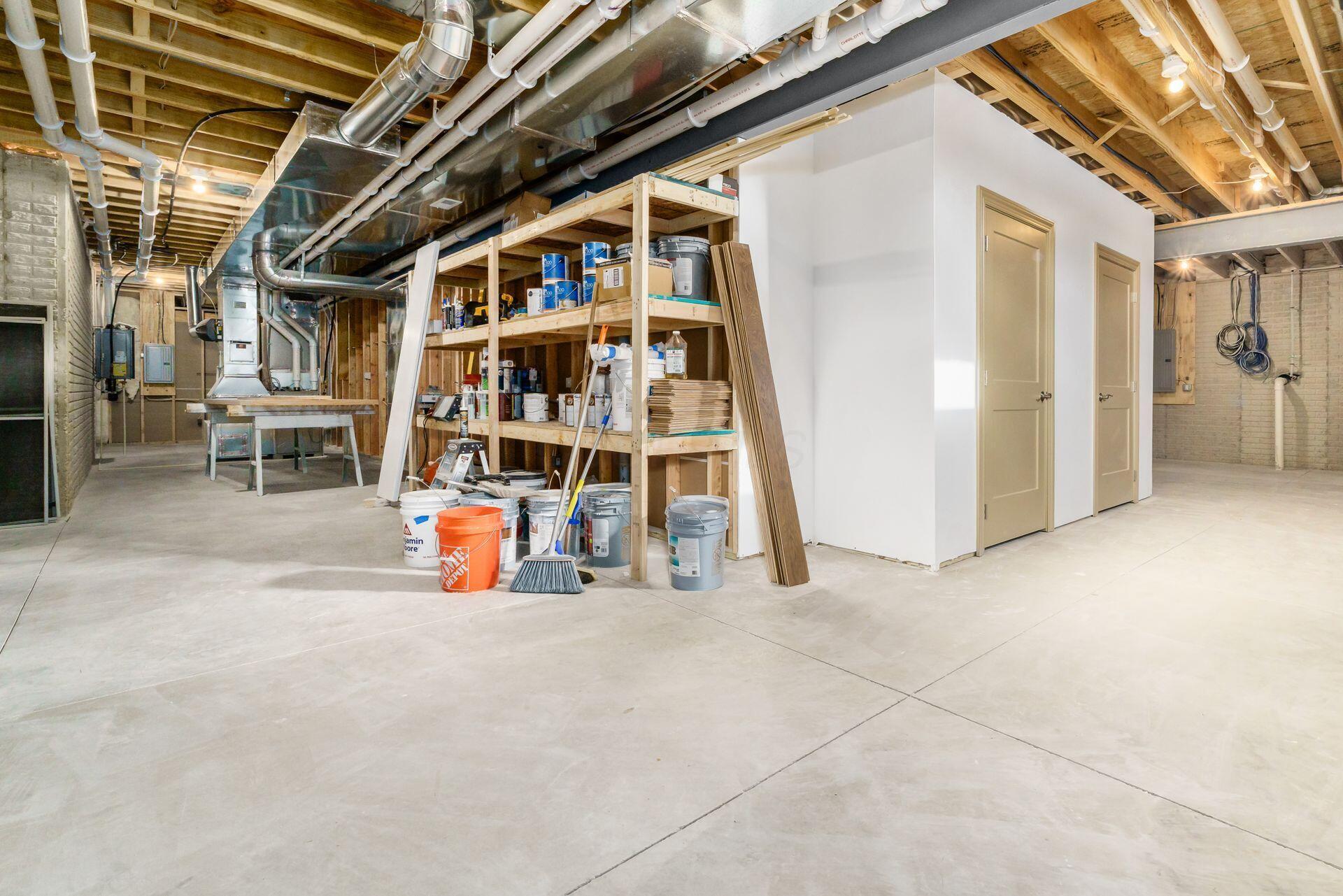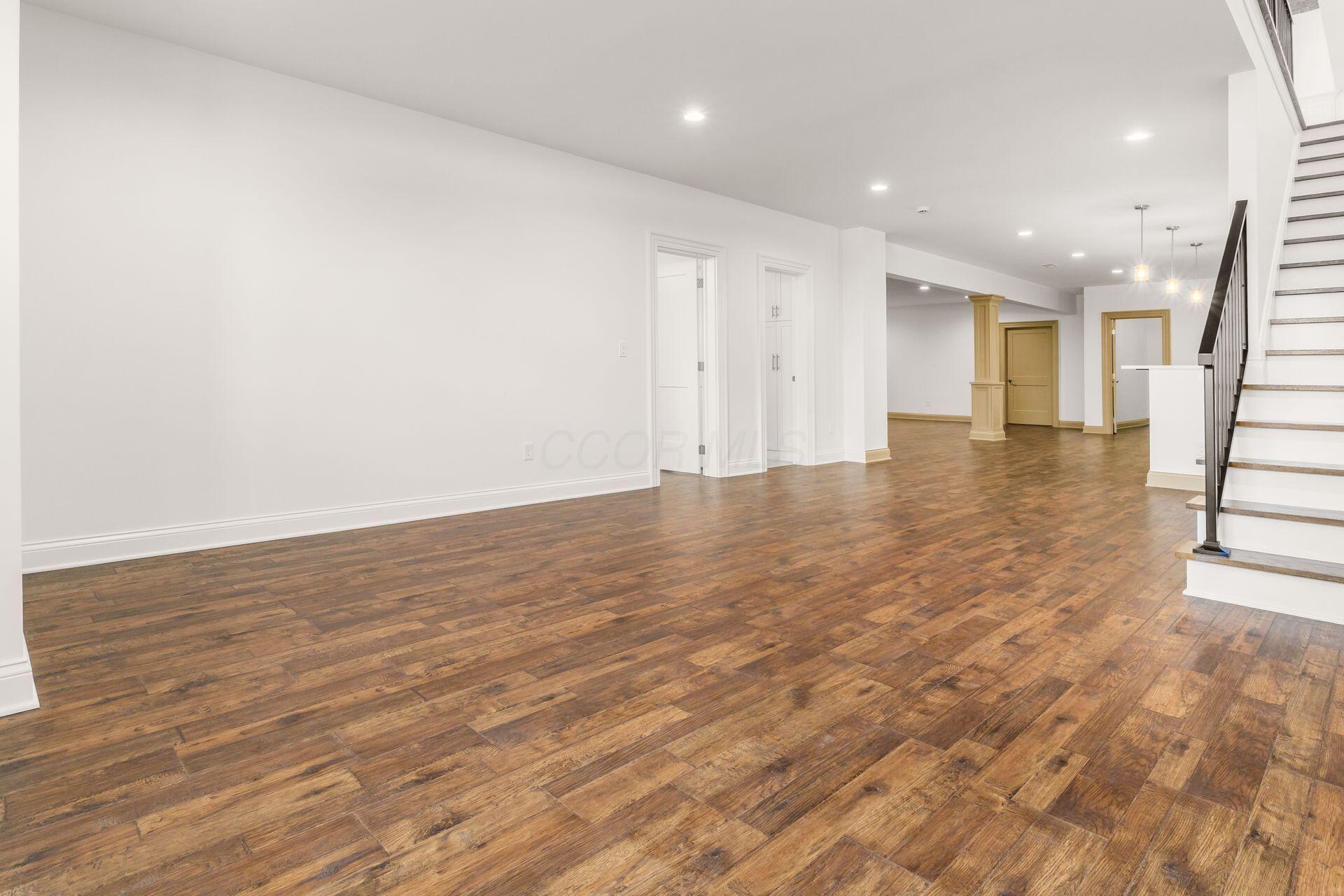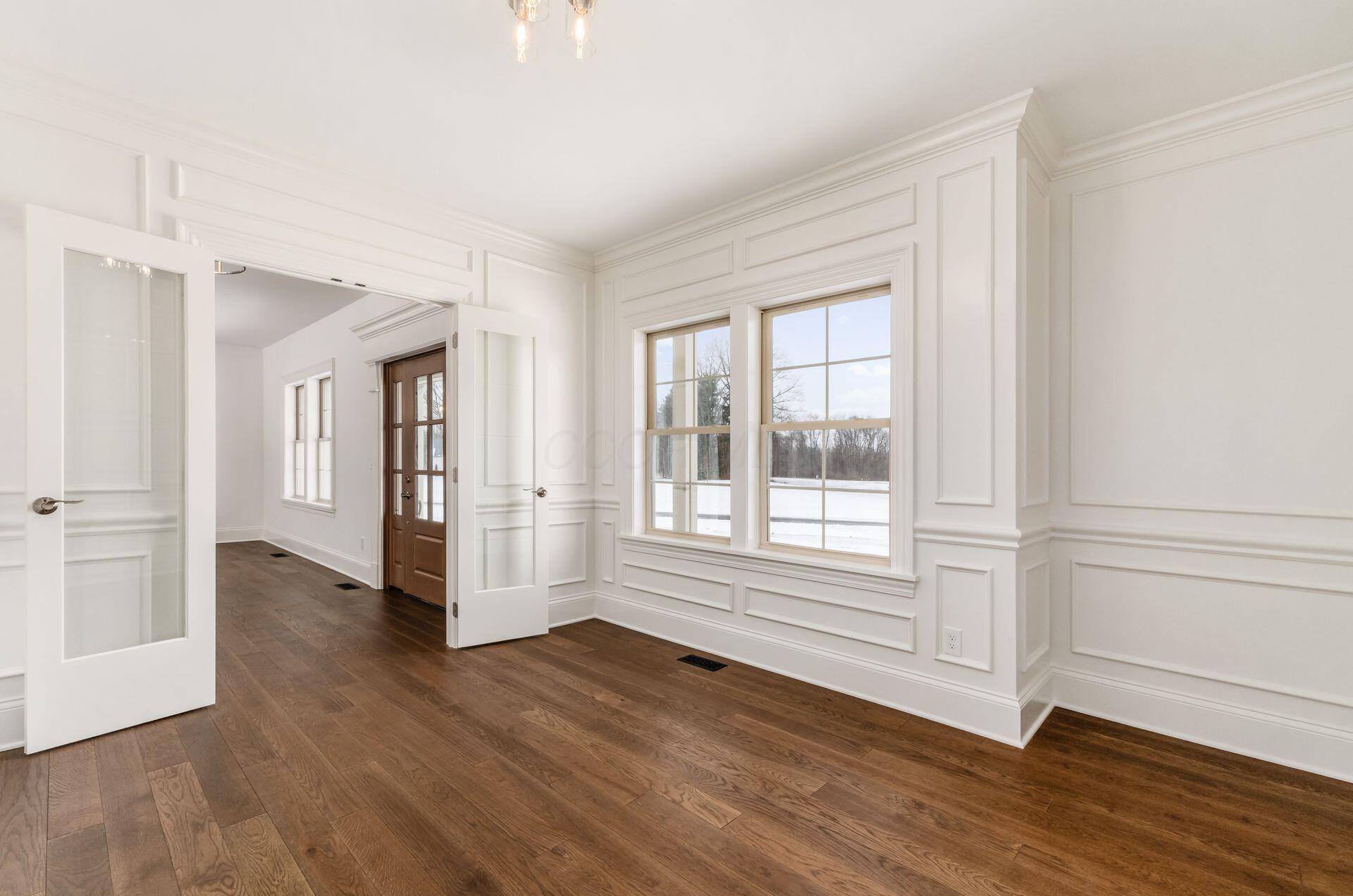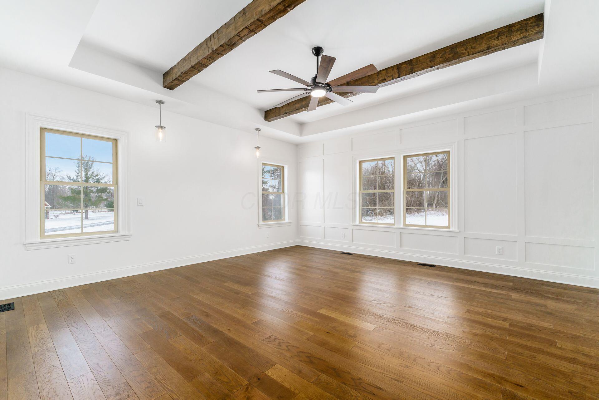 Sprawling custom ranch situated on 3 acres, tucked away on a quiet cul-de-sac with unmatched quality throughout. Offering nearly 5,800 square feet of luxurious living space with four bedrooms and five-and-a-half baths. An expansive garage accommodates up to seven vehicles and includes a finished living area with a full bath and direct backyard access--ideal for a future pool house or man cave--along with a heated section perfect for a golf simulator. Garage includes stairwell directly to the basement. The spacious kitchen features custom Amish cabinetry and a large island connecting to the messy kitchen, morning room, and great room. The great room includes a 12-foot beamed ceiling, wall of windows, fireplace, and built-in shelving. Additional highlights on the 1st floor include a formal dining room, den with custom built-ins, laundry and mudroom. Custom woodwork throughout, including all closets. The finished lower level offers a bedroom with full bath, two expansive living spaces with custom built-ins and a kitchen, a den, and a potential exercise room enclosed by glass wall and doors. 2 egress windows in the basement. Enjoy outdoor living on the covered back porch with an electric fireplace. A truly one-of-a-kind property with exceptional workmanship throughout, where no detail has been overlooked.
