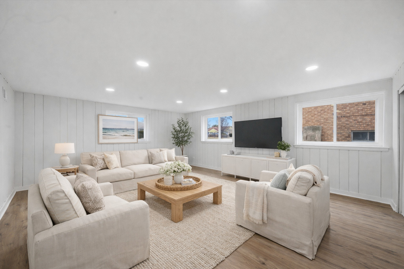 Beautifully renovated 4-bedroom, 3.5-bath ranch home offering exceptional space, flexibility, and modern farmhouse charm. This thoughtfully updated home features shiplap accents throughout, real hardwood floors, and fresh interior paint, all filled with abundant natural light.