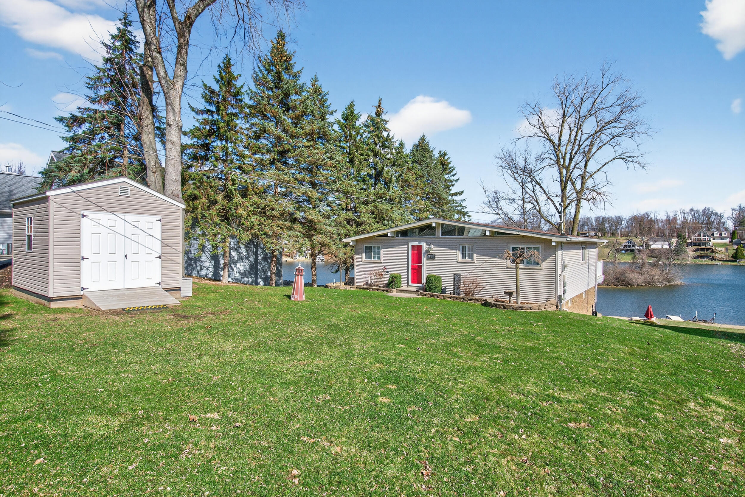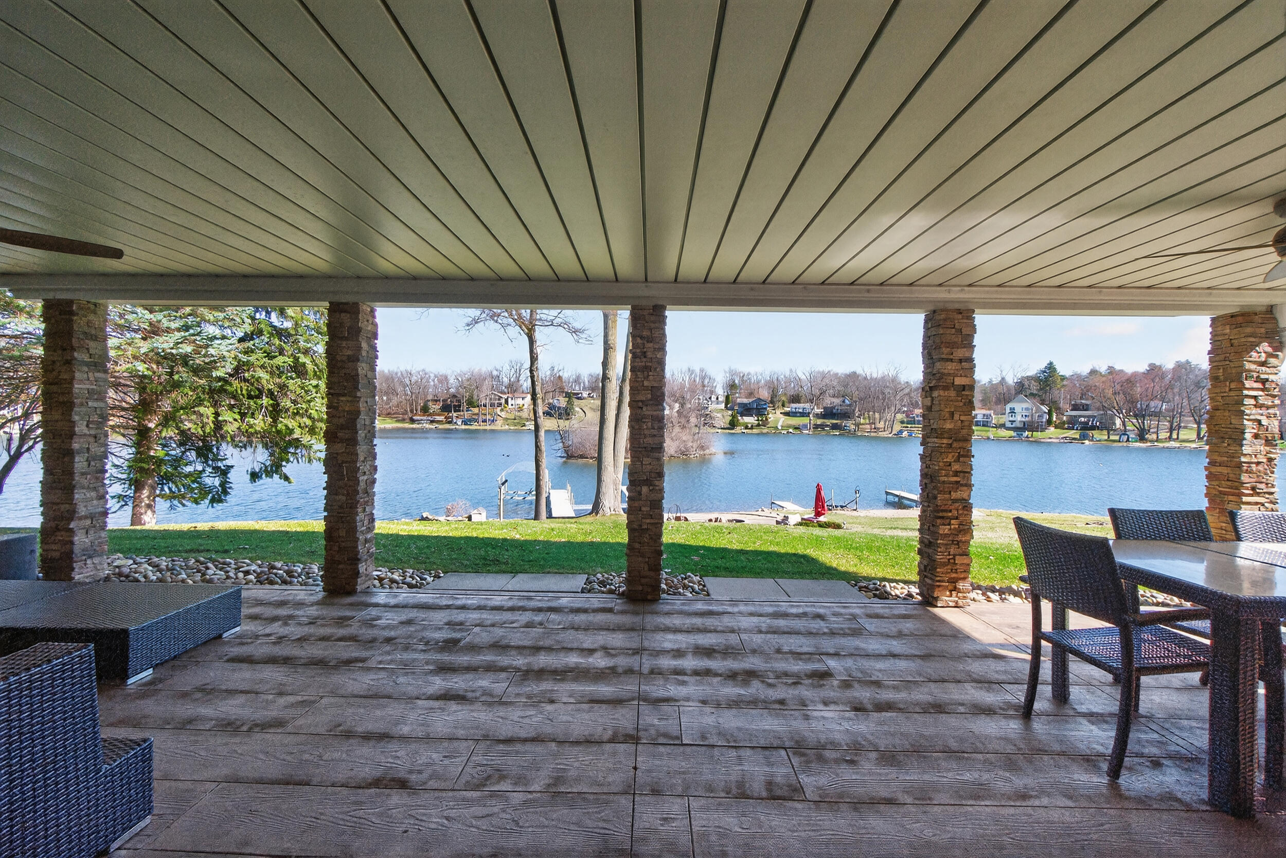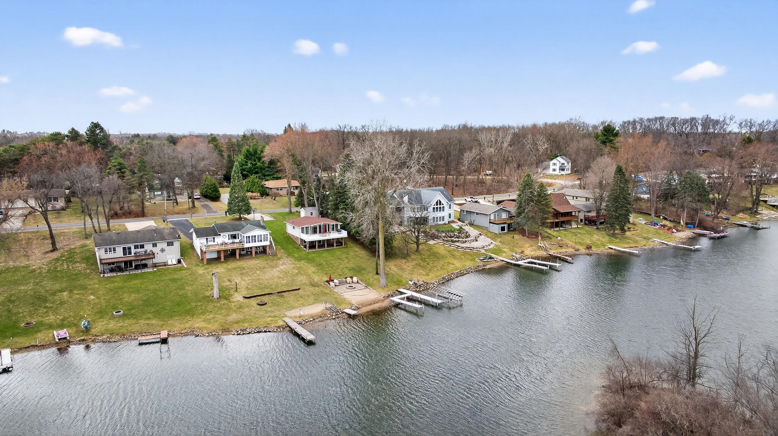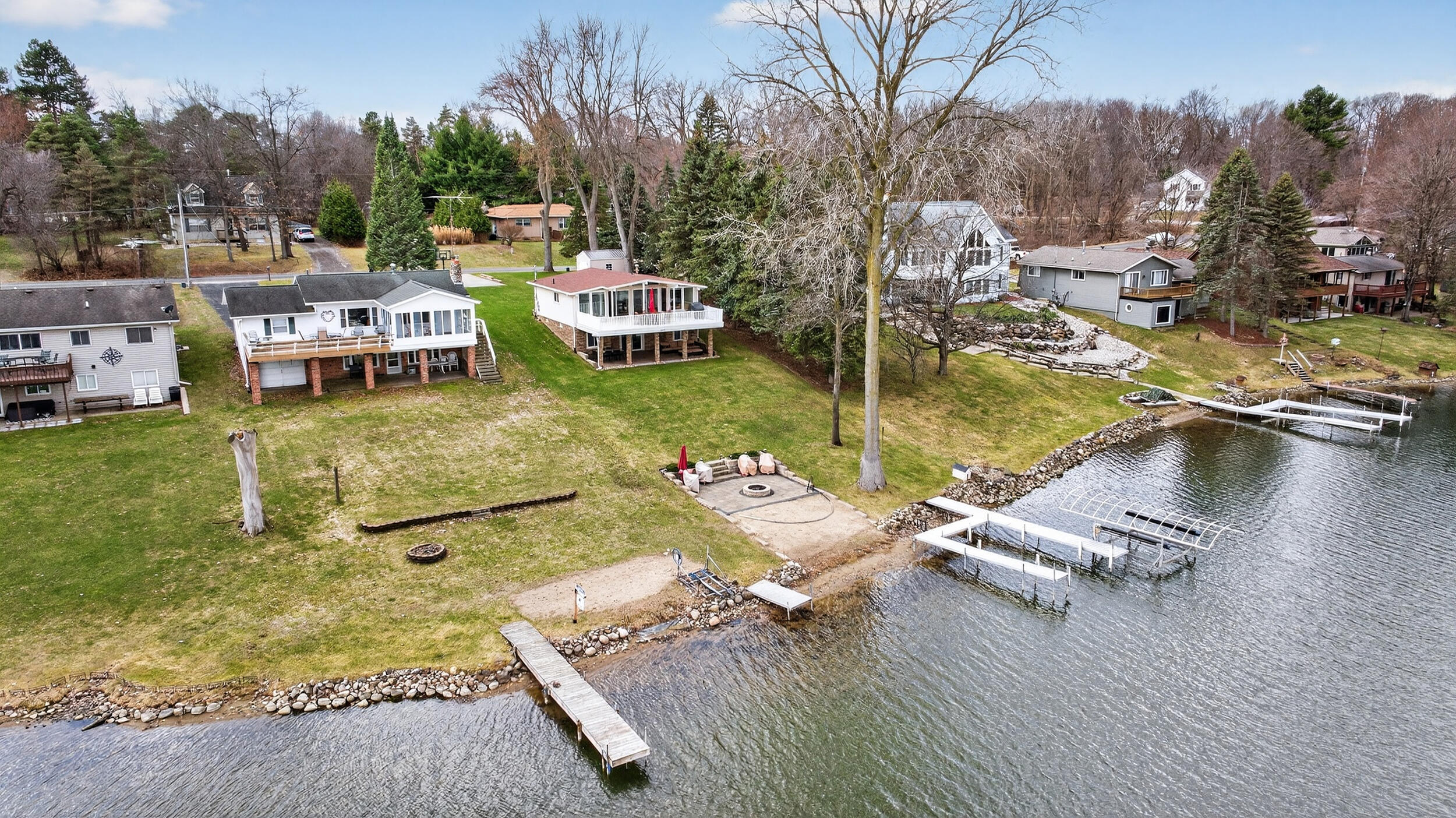 Experience the pinnacle of low-maintenance luxury, and the ultimate turn key at Lake LeAnn. This thoughtfully designed retreat was built specifically for those who want to spend less time on chores and more time on the water. From the sandy beach frontage to the multiple covered entertainment areas, every inch of this property invites you to relax.As you step into the main living area, the world opens up through wall-to-wall windows spanning both levels. The vaulted ceilings flood the home with incredible natural light, framing an unbeatable panoramic view of Waldron Bay. Whether you're sipping morning coffee or hosting a sunset dinner, the lake is always your backdrop, now complemented by newer blinds throughout for effortless light control and privacy.From the lakeside, this home truly makes a statement. The grand patios and expansive walls of glass, perfectly paired with the rugged rock siding, create a striking architectural presence that makes this home stand out from the rest. Lake LeAnn is a premier private, all-sports lake, offering the perfect balance of adrenaline and serenity. You can enjoy high-speed boating or retreat to the secluded no-wake bays to kayak and fish in total peace, even during busy holiday weekends where other lakes are packed. Stocked nearly every year with fish, this is a known destination for advanced anglers. For families, the multiple pull-up beach parks allow kids to hop off the pontoon and play on the shore before boating over to the next park.The outdoor living spaces are truly exceptional. The massive weather-proof upper deck comes equipped with a built-in overhang for essential summer shade and features a natural gas line already run for your grill--no more swapping tanks during a BBQ. Below, the lower level features an amazing lanai space with ceiling fans and newer stamped concrete. Walking down toward the water, you will find a new lakeside patio with a fire pit and a beach swimming area for the kids. The sale also includes a newly installed shed for all your lake gear and a nice-sized cleared extra lot, providing ample parking for summer guests and a dedicated place for boat storage in the winter.Inside, the lower level serves as a complete secondary living suite perfect for entertaining. It features a full living area and a wet bar to keep the refreshments flowing without ever having to head back upstairs.This home is being sold as a complete turn-key opportunity, including the U-shaped dock, the paddle board, all indoor and outdoor furniture, an underground dog fence, and a professional sprinkler system. Significant recent updates provide total peace of mind, including an updated electrical panel, a new roof in 2021, and a natural rock seawall and dock installed in 2019.