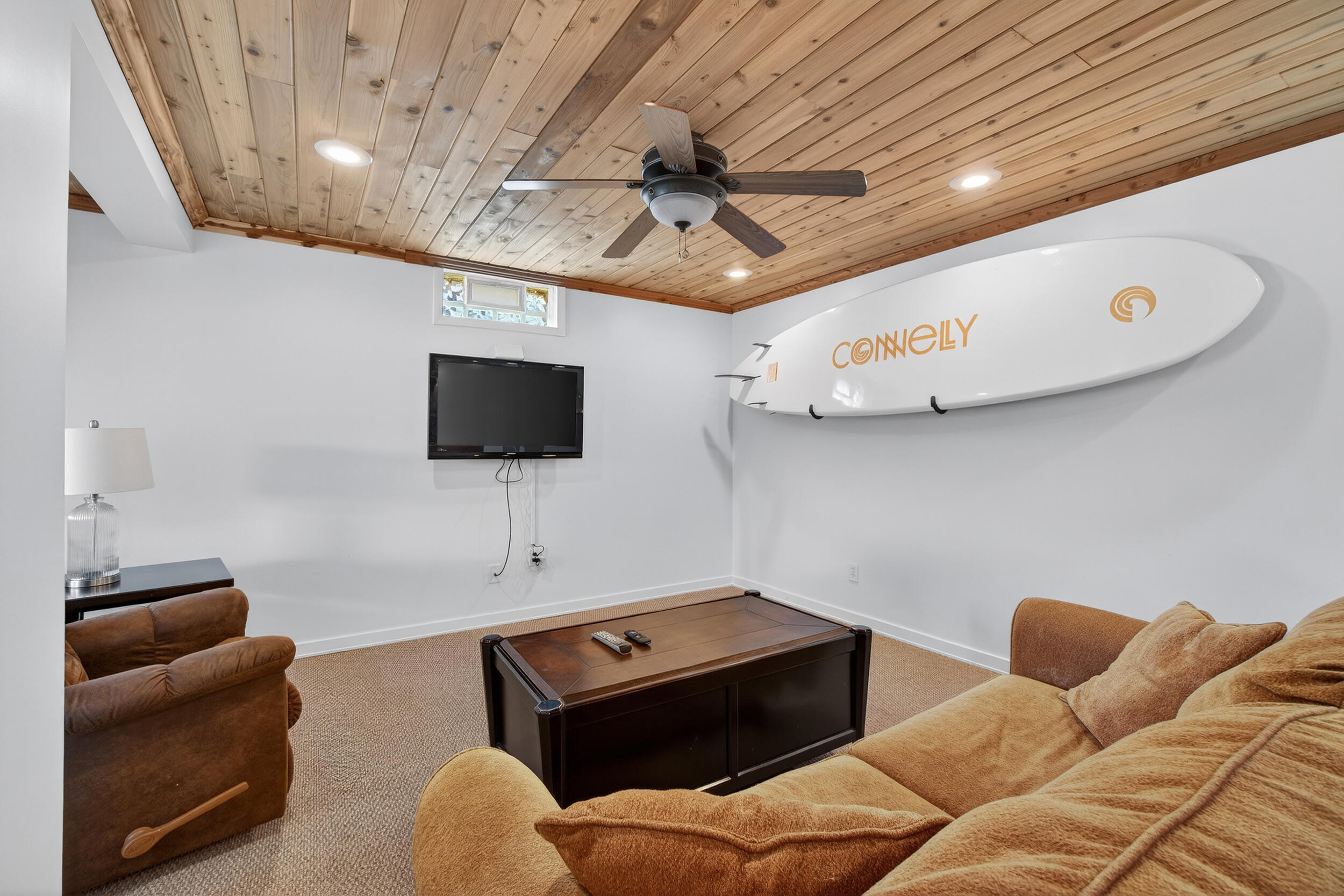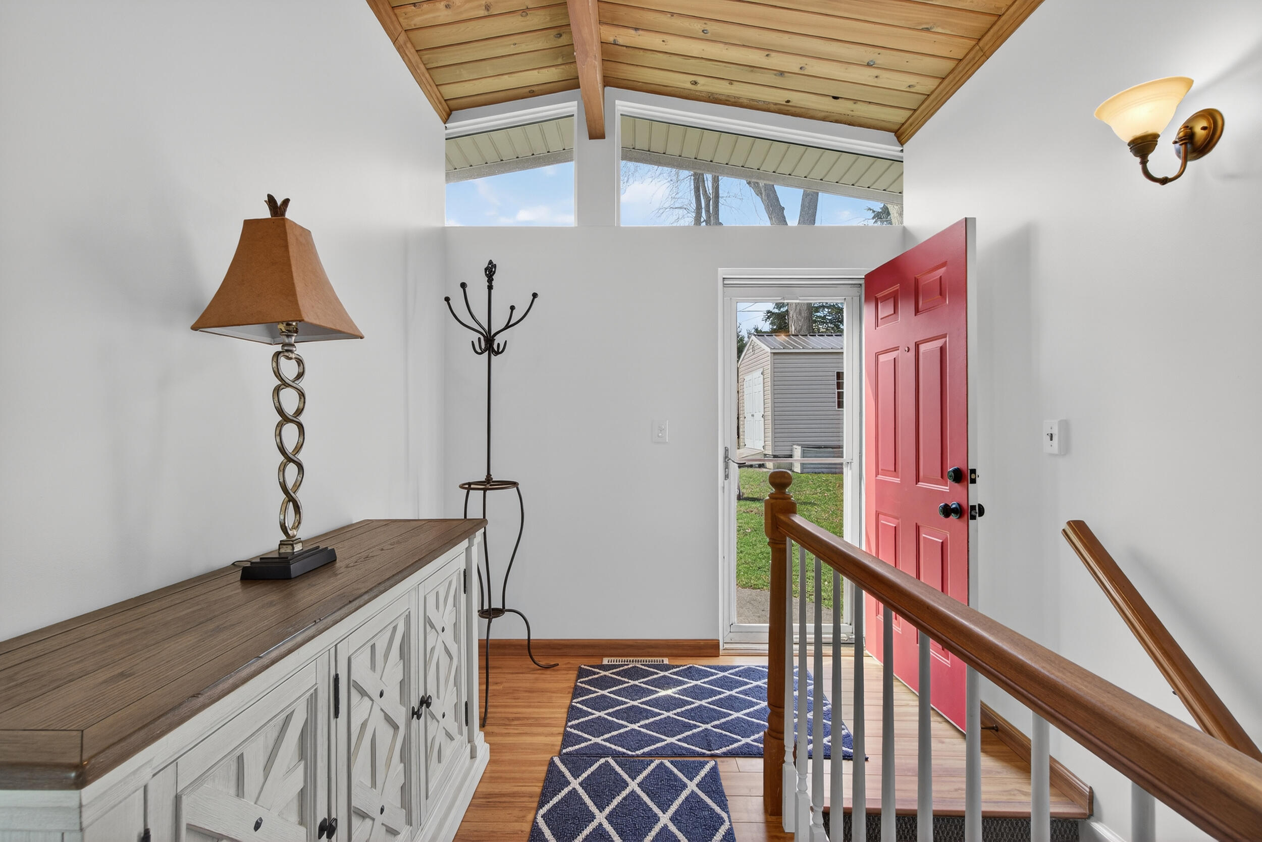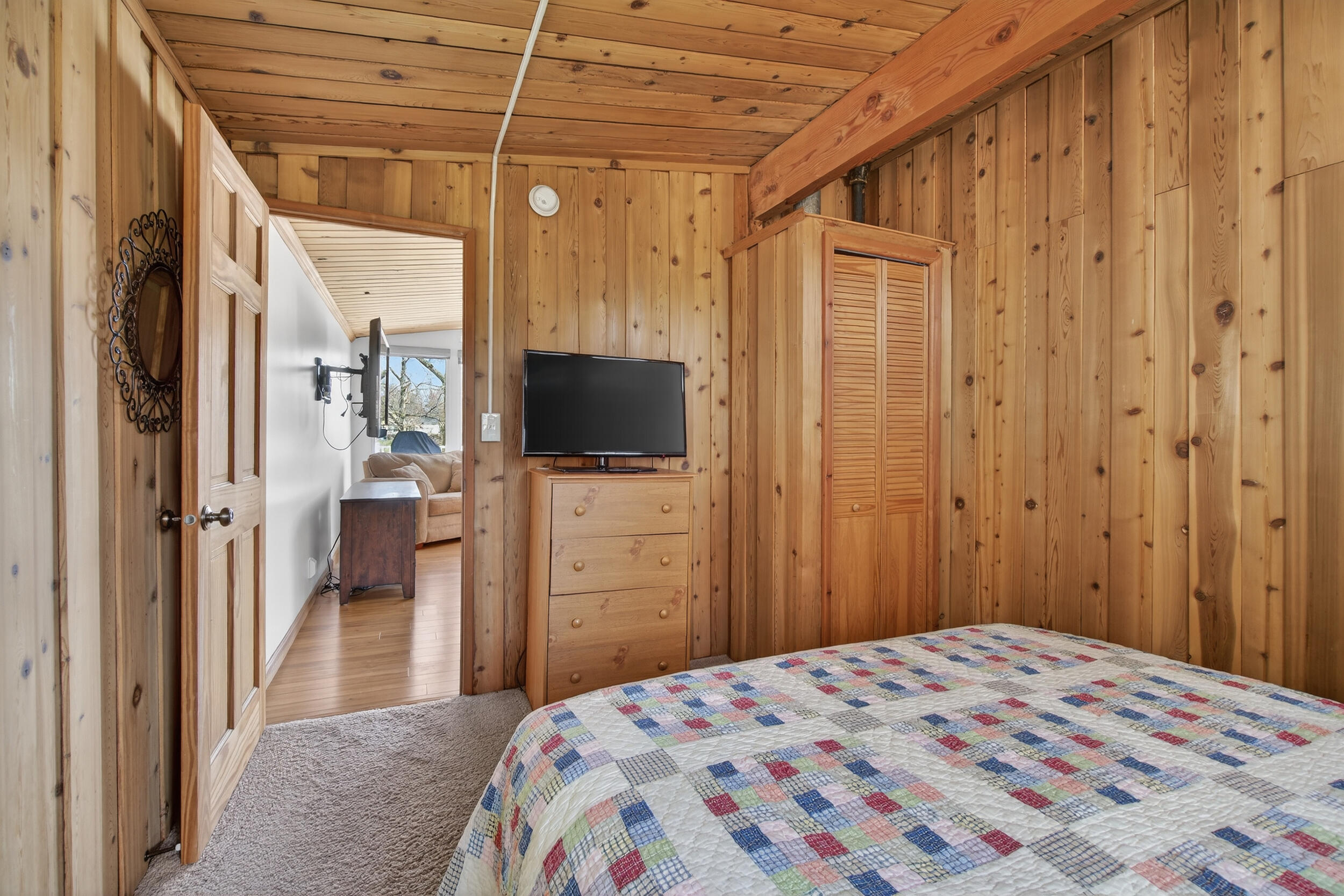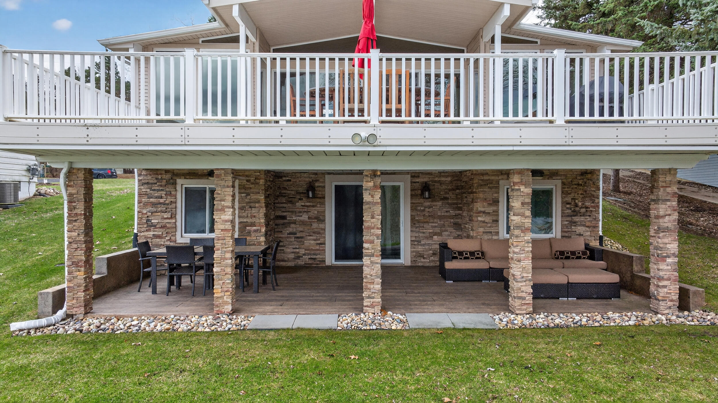 Experience the pinnacle of low-maintenance luxury, and the ultimate turn key at Lake LeAnn. This thoughtfully designed retreat was built specifically for those who want to spend less time on chores and more time on the water. From the sandy beach frontage to the multiple covered entertainment areas, every inch of this property invites you to relax.As you step into the main living area, the world opens up through wall-to-wall windows spanning both levels. The vaulted ceilings flood the home with incredible natural light, framing an unbeatable panoramic view of Waldron Bay. Whether you're sipping morning coffee or hosting a sunset dinner, the lake is always your backdrop, now complemented by newer blinds throughout for effortless light control and privacy.From the lakeside, this home truly makes a statement. The grand patios and expansive walls of glass, perfectly paired with the rugged rock siding, create a striking architectural presence that makes this home stand out from the rest. Lake LeAnn is a premier private, all-sports lake, offering the perfect balance of adrenaline and serenity. You can enjoy high-speed boating or retreat to the secluded no-wake bays to kayak and fish in total peace, even during busy holiday weekends where other lakes are packed. Stocked nearly every year with fish, this is a known destination for advanced anglers. For families, the multiple pull-up beach parks allow kids to hop off the pontoon and play on the shore before boating over to the next park.The outdoor living spaces are truly exceptional. The massive weather-proof upper deck comes equipped with a built-in overhang for essential summer shade and features a natural gas line already run for your grill--no more swapping tanks during a BBQ. Below, the lower level features an amazing lanai space with ceiling fans and newer stamped concrete. Walking down toward the water, you will find a new lakeside patio with a fire pit and a beach swimming area for the kids. The sale also includes a newly installed shed for all your lake gear and a nice-sized cleared extra lot, providing ample parking for summer guests and a dedicated place for boat storage in the winter.Inside, the lower level serves as a complete secondary living suite perfect for entertaining. It features a full living area and a wet bar to keep the refreshments flowing without ever having to head back upstairs.This home is being sold as a complete turn-key opportunity, including the U-shaped dock, the paddle board, all indoor and outdoor furniture, an underground dog fence, and a professional sprinkler system. Significant recent updates provide total peace of mind, including an updated electrical panel, a new roof in 2021, and a natural rock seawall and dock installed in 2019.