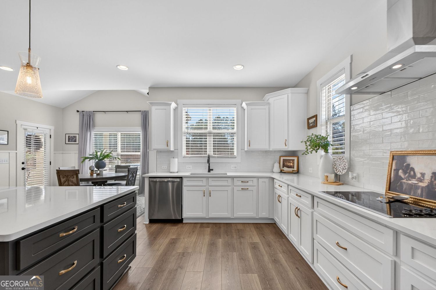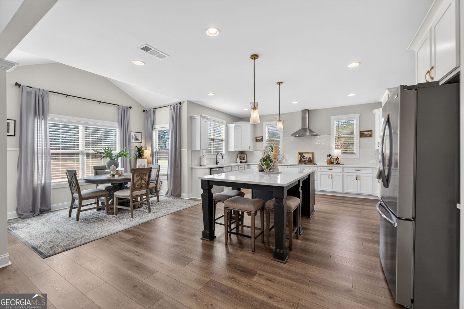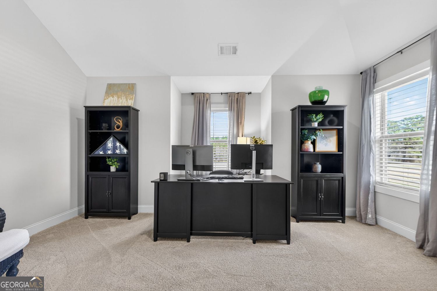 Welcome Home! This beautiful home welcomes you with a charming rocking chair front porchthe perfect place to relax and unwind. Inside, the foyer leads to a spacious home office or formal living room, an oversized dining room, and an open-concept living area featuring a great room with fireplace and custom built-in entertainment center.