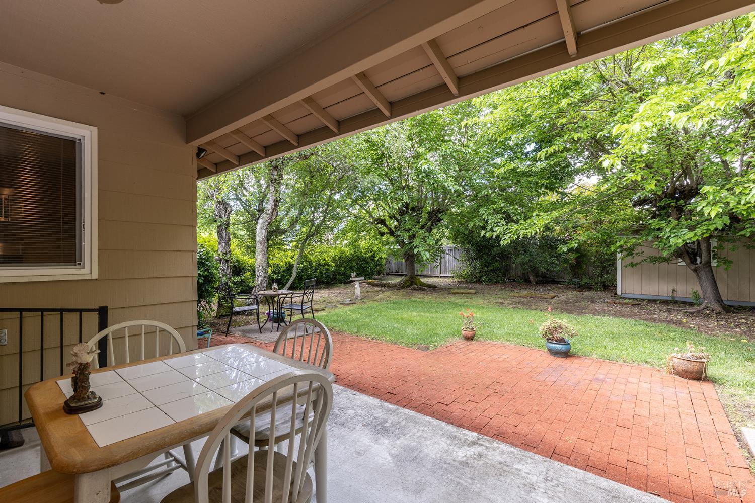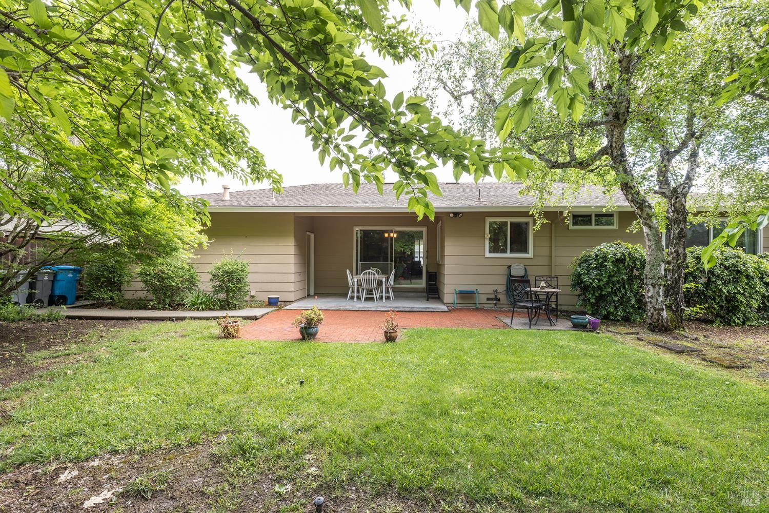 Light and airy updated 2bd 2ba single family residence conveniently located in the desirable Oakmont community. The beautifully tiled kitchen has upgraded cabinetry and countertops, newer appliances, and a double door pantry. A large picture window graces the living room. The home features tiled entry, crown molding, fireplace and a spacious dining room. Both bathrooms have been nicely updated with tiled floors, new vanities and designer tiled showers and bath. Other features include dual pane windows, AC and 2 car garage. Sliding glass door opens to the large inviting private backyard with covered patio, lawn, numerous trees/foliage, plus a walk in craft cottage/storage building. Come enjoy this beautiful picturesque 55 adult recreational community with swimming, tennis, pickle ball, gymnasiums, golf, hiking and more!