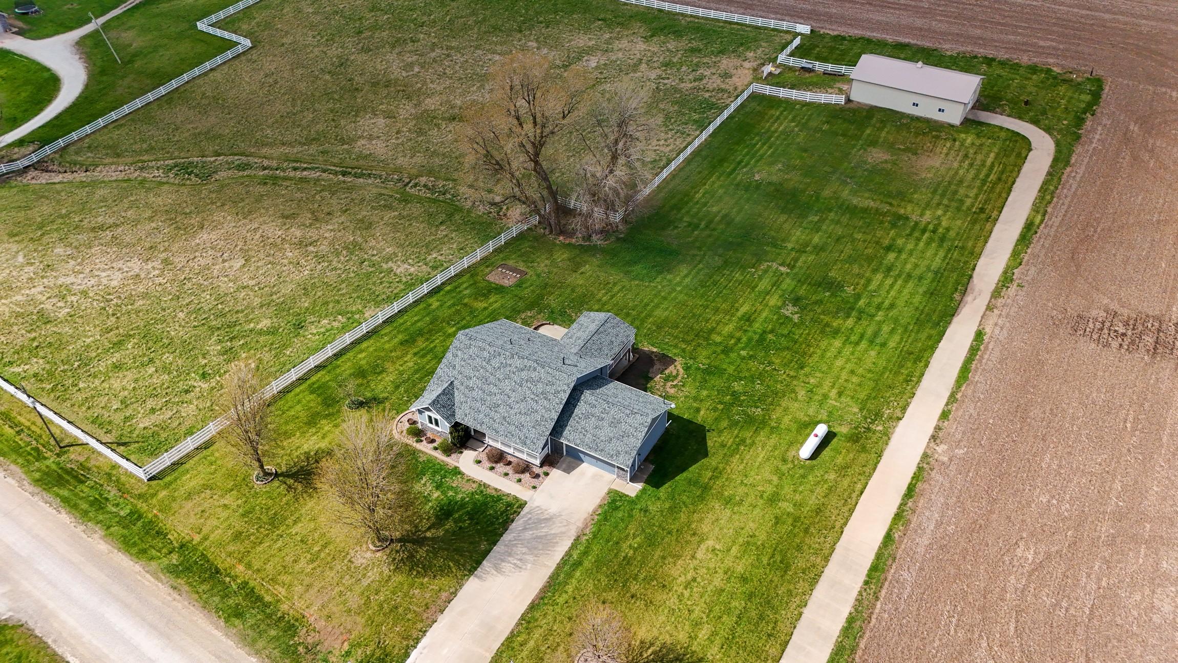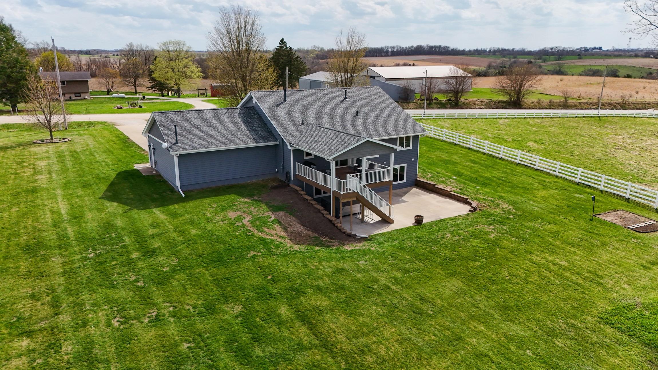 Set on five private acres just outside the metro, this updated ranch delivers the space, freedom, and lifestyle thats increasingly hard to find - without sacrificing convenience to Des Moines. A true outdoor oasis to enjoy the peacefulness of the country - Evenings begin on the 18x18 covered composite deck with sun shade, where sweeping sunset views stretch across your fenced pasture, and end around the expansive patio or in the included hot tub. A 56x32 outbuilding with concrete drive, slab floor, electric and water - plus four horse stalls - opens the door to hobbies, animals, or serious workspace. Inside, the main level offers easy, everyday living with three bedrooms, two full baths, and laundry all on one floor. Updates include LVP flooring and stainless steel appliances, blending modern comfort with a functional layout. The walkout lower level, completely finished in 2021, extends the home with a spacious family room, wet bar with refrigerator, two additional bedrooms, a ? bath, ? bath, plus dedicated rec space and a home gym. Major improvements provide peace of mind: new stone and siding (2020), windows (2020), roof and gutters (2021), water softener and whole-home filtration, and radon mitigation already in place. With room to roam, entertain, and unwind, yet close to the Des Moines metro, this is acreage living, elevated.