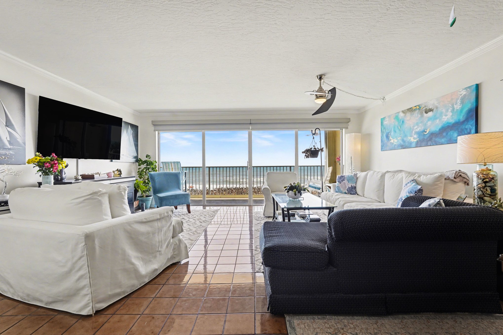 Open your front door and be greeted by a direct view of the Atlantic Ocean. This gorgeous 2-bdrm, 2-bath oceanfront condo is located on the 2nd floor & offers breathtaking views from the spacious private balcony, the perfect place to enjoy sunrises and ocean breezes.