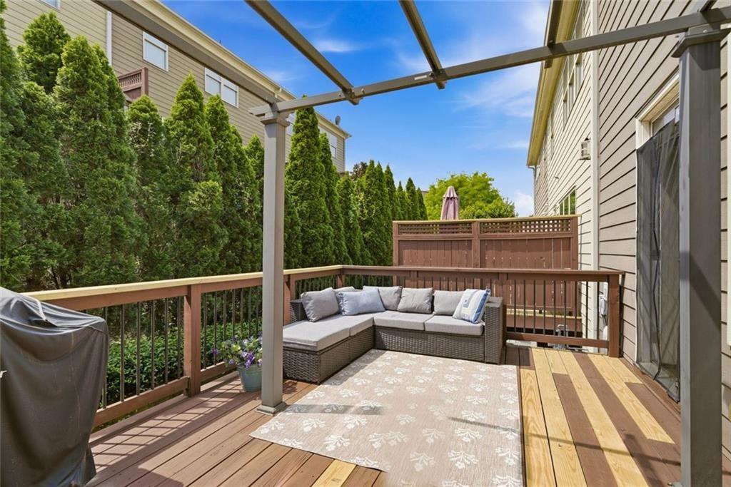 This beautifully maintained townhome in Sandy Springs offers an exceptional blend of style, space, and location. Spanning three levels, the thoughtfully designed floor plan showcases quality finishes and abundant natural light throughout.The lower level features a private entrance with large foyer, brand-new LVP flooring, and a spacious bedroom with a full bath—ideal for a home office, guest suite, or playroom.On the main level, you'll find an open-concept living space perfect for entertaining. The expansive kitchen boasts generous storage, ample counter space, double ovens, and a gas range. It flows seamlessly into the oversized family room, complete with a cozy fireplace and access to a private deck—perfect for relaxing or hosting guests. Large half bath and Hardwoods. Plantation shutters throughout add elegance and charm. Upstairs, the large primary suite offers a spa-like bathroom with a separate garden tub and shower with an impressive custom closet featuring built-ins, including dedicated jewelry drawer. A generously sized secondary bedroom includes two closets and its own full bath, providing comfort and privacy.Located within the gated community of Lafayette Square, this home is one of the newer builds in the neighborhood and enjoys a prime interior location. Residents also have the option to join the neighboring swim and tennis community for added lifestyle amenities.