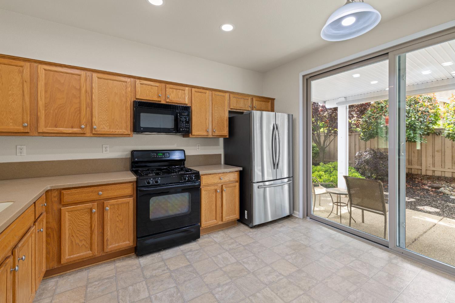 Nestled in the serene and very quiet setting of 1308 Tiger Lily Ln in Sun City Lincoln Hills, this 2 bedroom, 2 bath, plus den/office Madera model home is move-in ready for your immediate enjoyment. Unique for this model, the den in this gorgeous home is fully enclosed and could be used as a 3rd bedroom with the addition of an armoire/dresser and a door in the already framed entry. Freshly painted walls and ceilings, along with beautiful luxury vinyl plank flooring in the living and dining area add to the clean inviting feeling as you enter from the thoughtfully landscaped front yard. The kitchen features Stainless appliances and Corian countertops. The thoughtful design with a peninsula offers both practical workspace and a gathering point for social interaction. A private retreat awaits within the large primary bedroom, offering direct access to the en-suite bathroom with double sinks and Corian countertop. An expansive walk-in shower provides a refreshing experience, creating a serene environment for personal care. The main bath features a shower over bathtub for guests, or a relaxing candle lit bath after a long day of work or play. Beyond the interior spaces, a delightful covered patio extends opportunities for outdoor enjoyment. The secure fenced backyard ensures a private outdoor secluded space. Practicality is thoughtfully addressed with a dedicated laundry room, simplifying daily tasks and maintaining an organized home. Storage needs are elegantly met by a spacious walk-in closet, providing ample room for personal belongings. This property truly offers a harmonious blend of refined features and comfortable living.