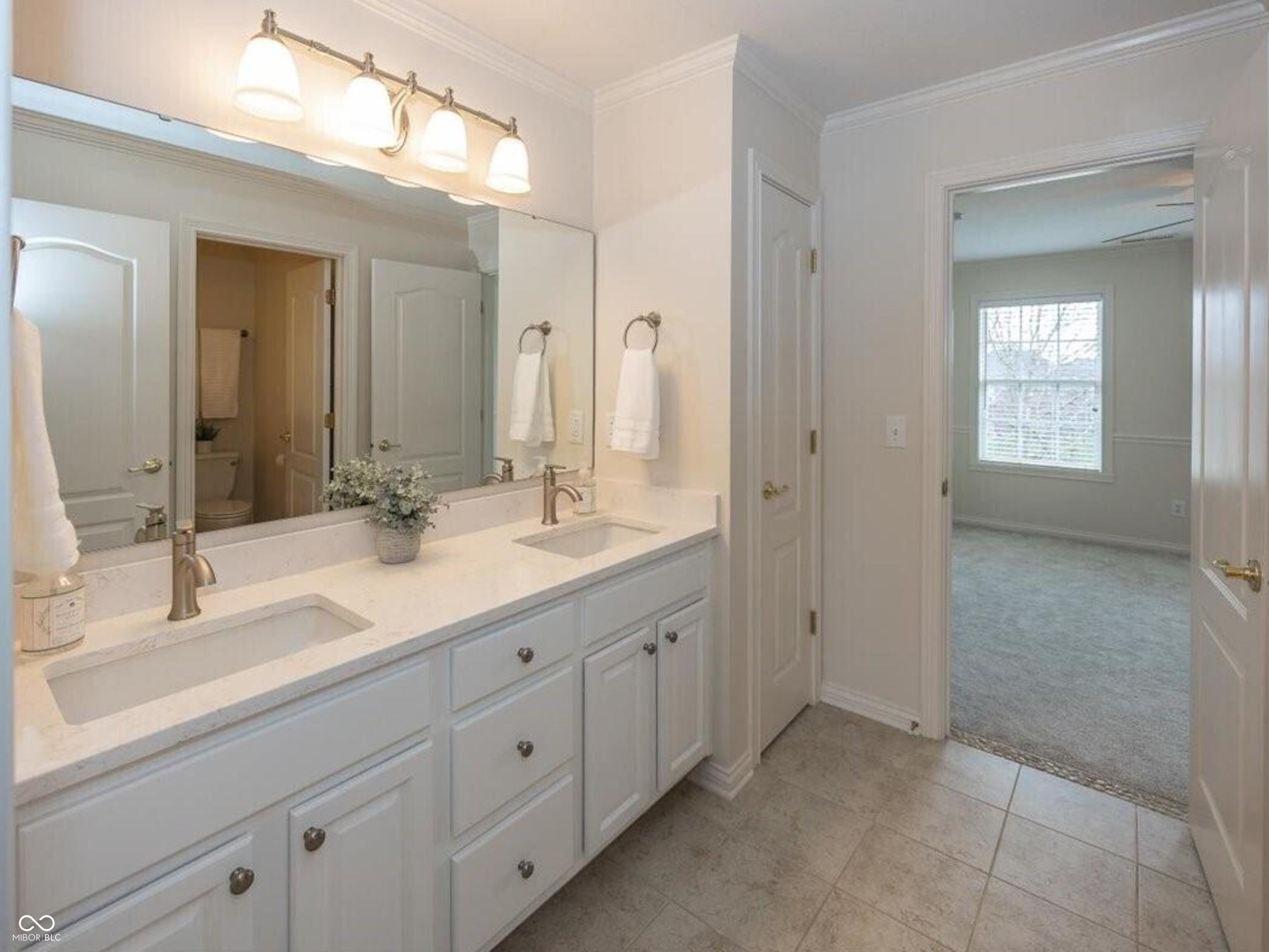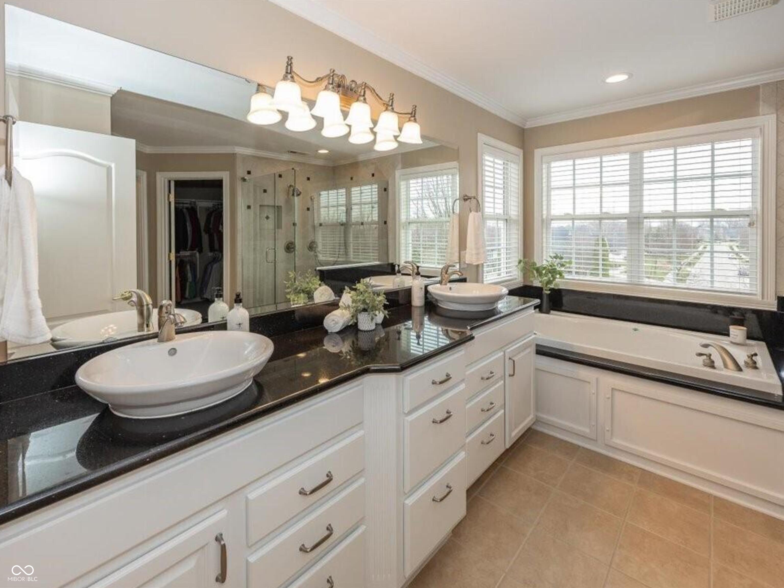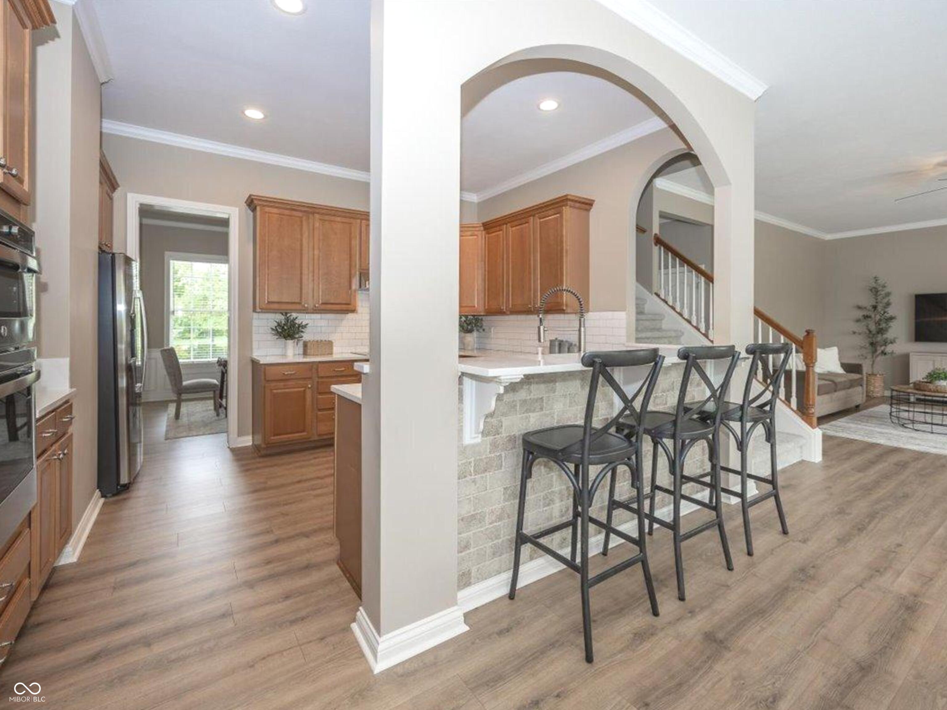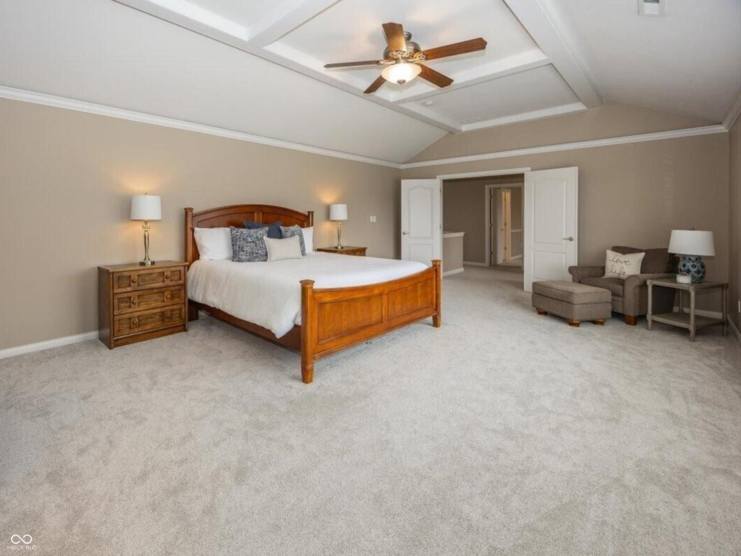 Trade the cramped fishbowl of modern subdivisions for true privacy in this impeccably maintained custom home with nearly a half acre lot. Beautifully updated & Spotless! it offers 5 bedrooms, 4.5 baths. Great Location-Less than a mile from downtown Westfield! Ride your bike to the new Sun King Brewery or a Fri. Night Concert at Grand Junction Plaza. Classic Charm and Luxury with 10 Ft. ceilings & decorative trim detail throughout the main level (New luxury vinyl plank, new carpet upstairs, new quartz countertops in kitchen and baths all 2026 improvements) The inviting den/office features custom built in bookshelves and offers a quiet work space. The spacious dining rm is perfect for hosting holiday celebrations. The great room serves as the the sophisticated centerpiece of the home with a gas fireplace and dramatic wall of windows that floods the room with natural light. Designed for how we live today the great room transitions into the gourmet kitchen featuring new quartz counter tops, appliances, and tile backsplash. Main level guest suite with full bath. The Upstairs is thoughtfully designed for privacy and comfort. You will find two bedrooms joined by a convenient jack and jill bath, alongside a third bedroom featuring its own private bath. The expansive primary retreat is a designed for unwinding after a busy day. This sophisticated suite offers a lg. walk in closet, and luxurious bath with soaking tub and walk in shower. The lower level is designed with fun for all! Host move night in the theater room, mix up your favorite drink at the bar or gather around the table for game night. With nearly a half acre lot, this property provides plenty of room to play with an expansive deck & patio for hosting backyard barbecues too. Just Minutes to all that Westfield has to offer: Midland Trace Trail for walking and biking, Grand Junction Plaza for Dining and Concerts. Community Pool and Clubhouse too.
