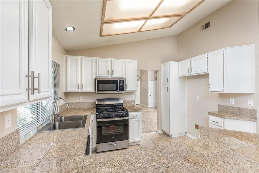 Beautiful 3 Bedroom, 2 Bathroom, Single-Story Corner-Lot Home in a Desirable Murrieta CommunityThis inviting single-story home sits on a spacious corner lot and features a two-car garage, a welcoming front patio with seating, and abundant natural light throughout. The entry opens to a comfortable family room with vaulted ceilings, creating an airy, open feel.The open kitchen offers excellent functionality with new stainless-steel appliances, including a new oven/stove and microwave, plus a new stainless-steel sink. Just off the kitchen, the living room features a cozy fireplace and can easily serve as a TV room, sitting room, or formal dining space—flexible for any lifestyle.The primary bedroom is generously sized with ample closet space and a sliding glass door providing direct access to the backyard. The family room also includes a sliding door leading to the outdoor space, making indoor-outdoor living effortless. Two additional bedrooms and a full hall bathroom with a tub/shower combo complete the layout.A convenient inside laundry room adds to the home's practicality and everyday comfort.The backyard is a standout feature—a wraparound yard backing to a peaceful greenbelt, offering privacy, mature trees along the side yard, and plenty of room to relax or entertain.Located in a well-kept community near Murrieta Vista Park, this home offers comfort, convenience, and a welcoming environment for everyday living.