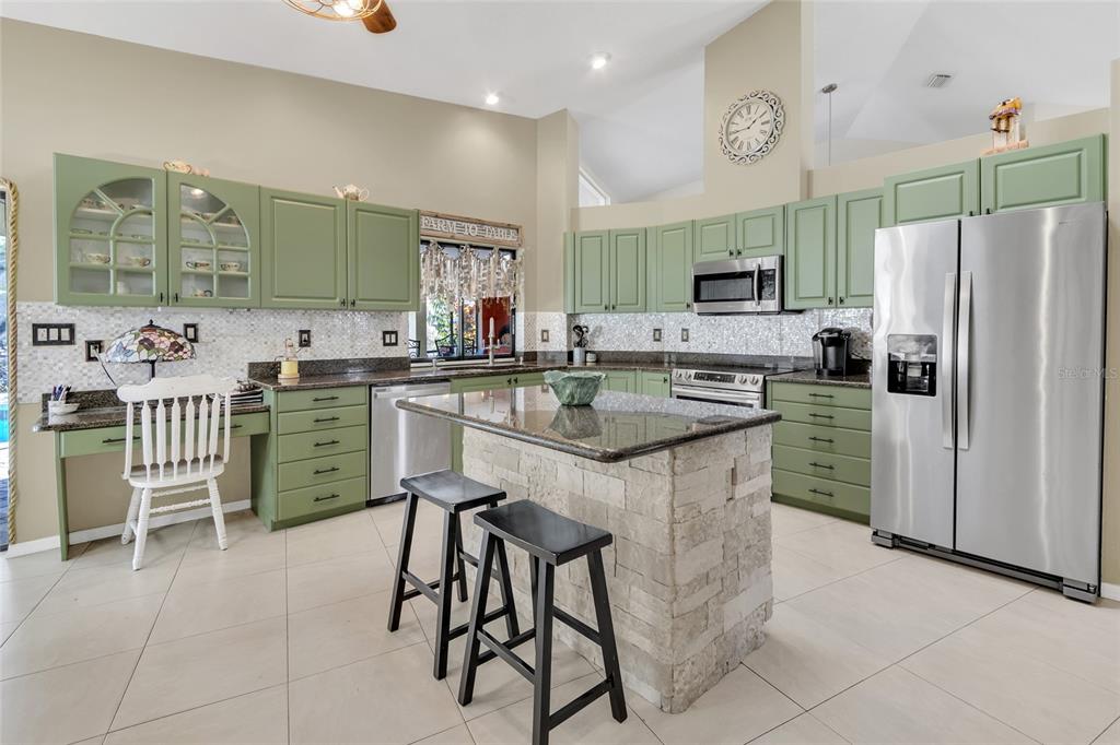Private pool home with spa on a quiet cul-de-sac in a gated community. This spacious 3-bedroom, 2.5-bath residence offers 2,945 square feet designed for comfortable living and entertaining, featuring an inground pool and spa along with multiple indoor and outdoor gathering spaces.Inside, the flexible floor plan includes a separate living room, formal dining room, and a large family room, creating plenty of space for relaxing or hosting guests. The well-appointed kitchen features stainless steel appliances, granite countertops, abundant cabinetry, and a functional island with additional storage, along with a bright eat-in kitchen area for casual dining. The family room is centered around a gas fireplace with built-in cabinetry for your TV and media needs, creating a warm and inviting focal point. Vaulted ceilings and skylights in the kitchen, primary bedroom, and entryway bring in natural light, while the indoor laundry room adds everyday convenience.Multiple sliding glass doors open to your private outdoor retreat, where the pool and spa are surrounded by a beautiful paver deck with ample space for lounging, entertaining, and enjoying Florida's outdoor lifestyle.Situated on a peaceful cul-de-sac within a gated neighborhood with a low HOA, this home offers privacy while still providing convenient access to shopping, dining, and everyday essentials. Additional highlights include a 2008 roof and a one-year home warranty from American Home Shield offered by the seller. The property has a remediated sinkhole, with documentation available.With generous living space, multiple entertaining areas, and a private backyard oasis, this home presents a great opportunity for buyers seeking comfort, privacy, and value in a secure community.