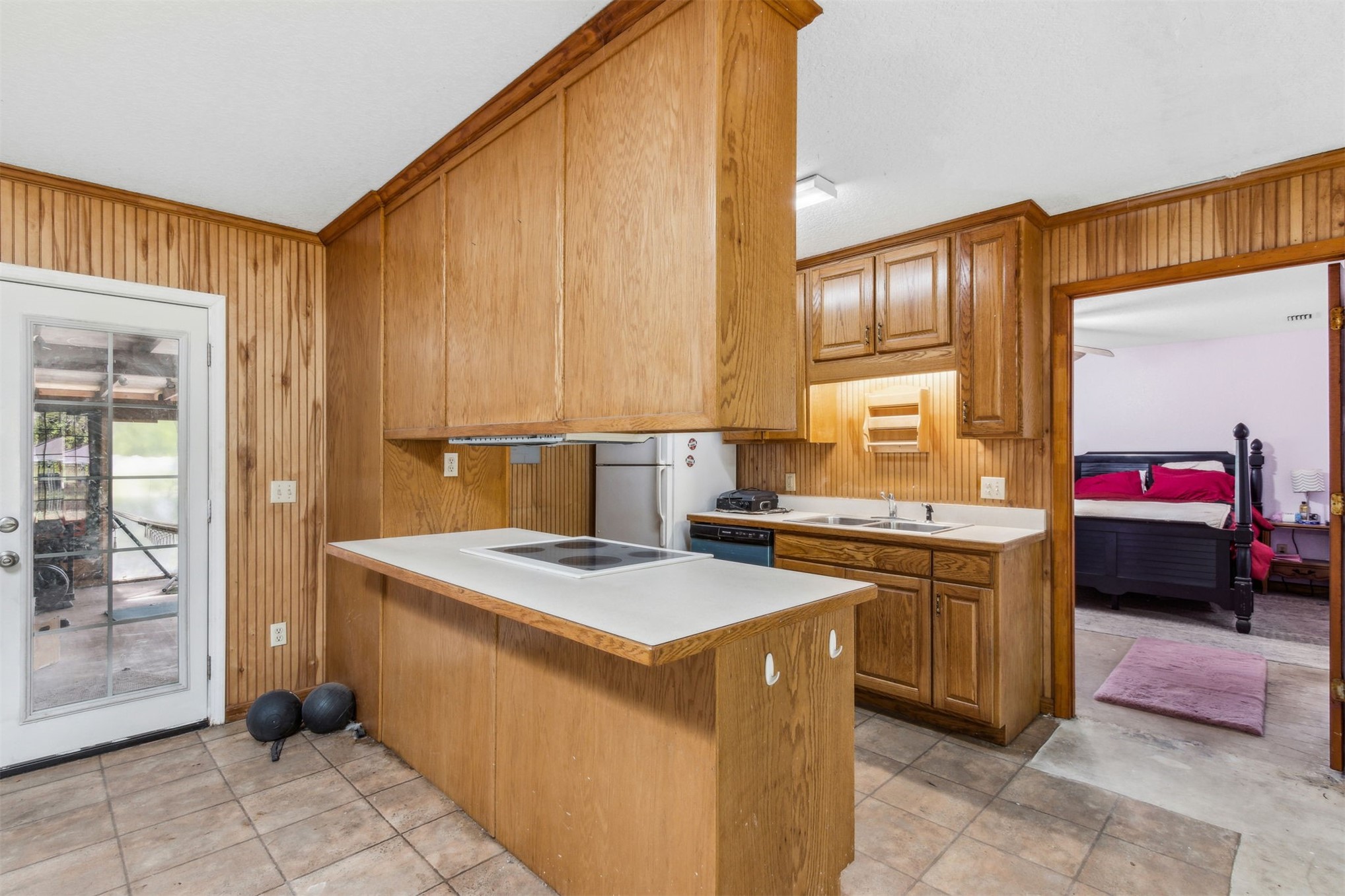 Here's your opportunity to live in the much sought after Cardinal Oaks neighborhood. This beautiful home sits on .65 acres. As you enter the home you immediately notice the open floor plan and ample natural lighting. The kitchen has a large stone island with cooktop perfect for the chef in you. Built in oven with stone tiles throughout the kitchen, tile floors, wood ceiling, soft close drawers, stainless steel appliances, wet bar have all the makings of a custom kitchen. The living room has a fireplace perfect for those cold winter nights. The primary bedroom is located on the opposite side of the other 3 bedrooms and has hardwood floors and a bathroom with separate vanity sinks, a walk-in shower and large walk-in closet. French doors lead you onto the large raised desk out back which overlooks a sprawling green space. A large, majestic oak is incorporated into the deck and providers perfect shade on those warm summer days. The perfect place for cookouts and enjoying the Florida weather. The Florida sun room with hardwood floors is perfect for relaxing or as a home office. Come see this gem and make it your own retreat.