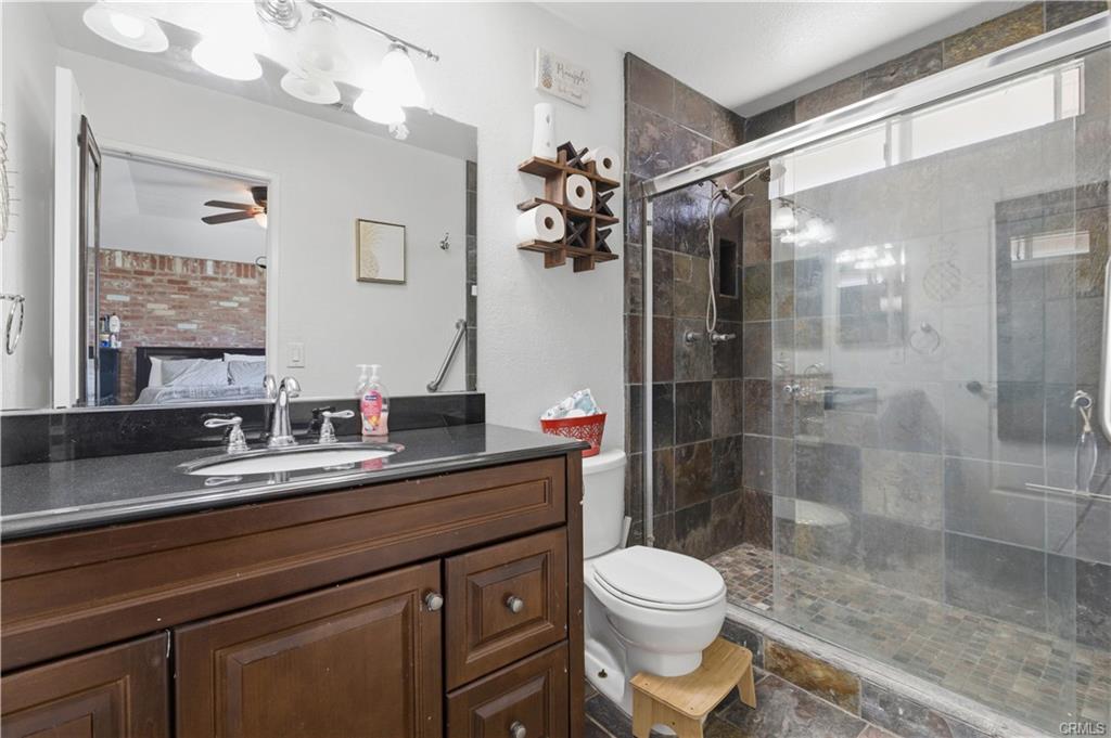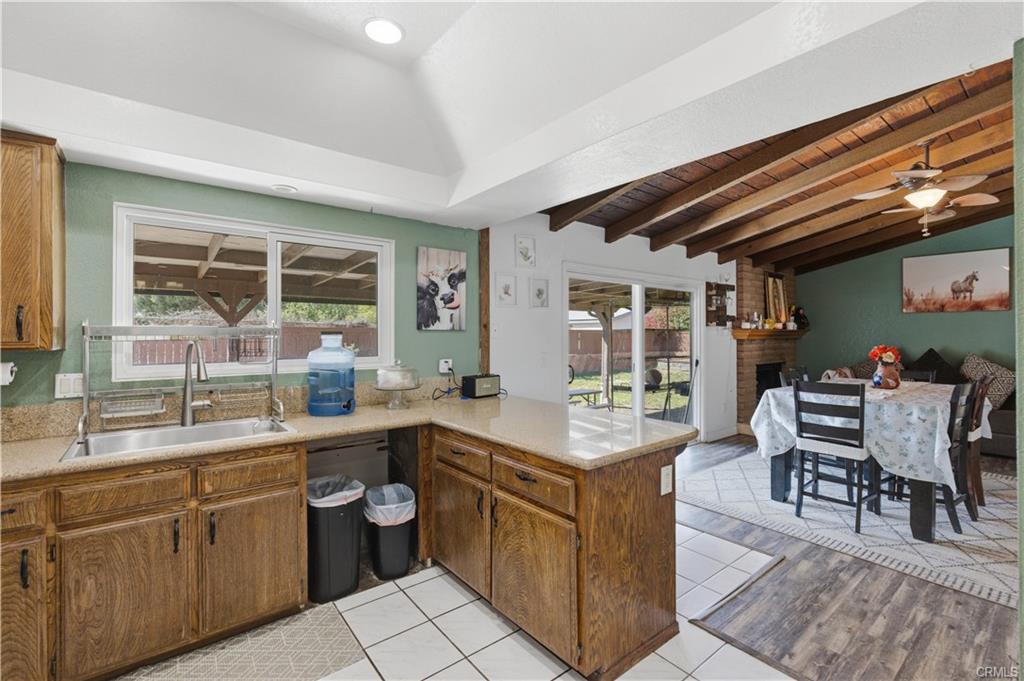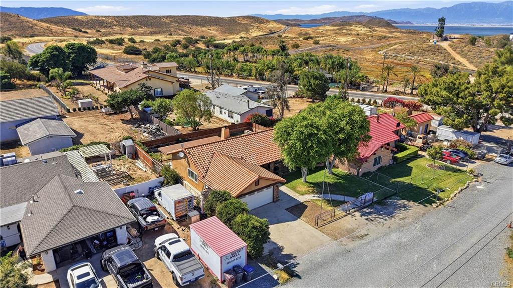 Welcome to this beautifully maintained single-story home offering 3 bedrooms, 2 bathrooms, 1,754 sqft of living space, and desirable RV parking. From the moment you step inside, you're greeted by an inviting open floor plan centered around a stunning stone fireplace that anchors the main living space and creates a warm, welcoming atmosphere. The kitchen features upgraded countertops, white cabinetry, and durable tile flooring, opening seamlessly to the dining and living areas—perfect for both everyday living and entertaining. Wood and tile flooring flow throughout the home, and the bathrooms have been tastefully updated with modern counters. Two of the bedrooms are connected by a convenient Jack & Jill bathroom, offering both functionality and privacy. The spacious primary suite includes a sliding door with direct access to the backyard, creating a peaceful retreat. A fully enclosed patio adds additional usable space, ideal for a game room, home gym, or relaxed indoor-outdoor living. The home also includes a whole-house water purification system for added comfort and convenience. Both the front and back yards are designed for low-maintenance living, while still offering plenty of room for outdoor seating, barbecues, and play areas. Situated on an elevated lot, the property offers the potential for future decking that could capture scenic lake views. With RV parking, a functional layout, and thoughtful upgrades throughout, this home is a fantastic opportunity for comfortable, easy living. Canyon Lake offers offers a low 1.1% tax base with no Mello Roos bonds, 384 acre waterski/fishing lake, 16 parks most with beaches and playsets, basketball courts, baseball fields, tennis & pickle ball courts, equestrian center, 18 hole golf course, pools, dog park,has golf cart friendly streets, slalom course, ski jump, restaurants, community events and so much more!!! Live life on vacation in Canyon Lake!