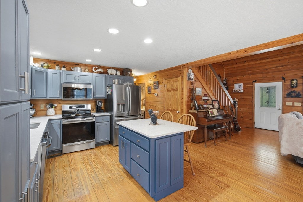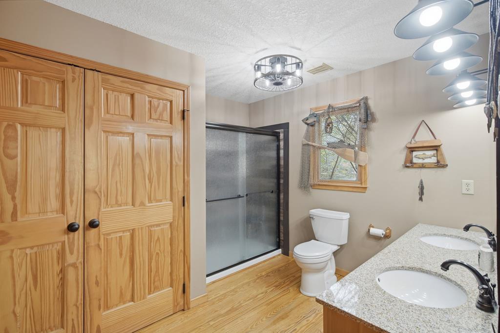 RIVERFRONT CABIN IN COOSAWATTEE RIVER RESORT.. Located inside the gated Coosawattee River Resort, this spacious 3BR/3BA riverfront cabin offers over 3,000 sq ft of living space with a blend of rustic charm and modern updates. Interior features include warm wood walls complemented by sheetrock, an open living concept, and updated kitchen and bathrooms designed for comfort and functionality.