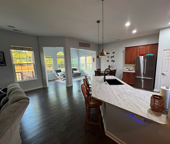 Welcome Home to Summerside Dr! NEW ROOF March 2026 and NEW HVAC August 2025! Are you looking for an open floor plan? This home is the one for you. The spacious kitchen has plenty of cabinet space, pantry, stainless steel appliances and dining area. The brand-new granite countertops installed March 2025 added extra seating when needed. This home has a massive living space, high ceilings, and plenty of natural light. The main level includes split bedrooms with primary ensuite, laundry room, main bath and two secondary bedrooms and sunroom. Upstairs you’ll find a large bedroom connected to a full bath, and HUGE bonus room with three spacious storage closets. Whole home freshly painted in neutral tones 2025. The back porch provides privacy for peaceful mornings watching the sunrise and dinners in the evening shade. Community center, swimming pool and area boat storage within walking distance. Home is located less than 2 miles from Publix, Walmart, Food Lion, and the brand-new Harris Teeter and local YCMA